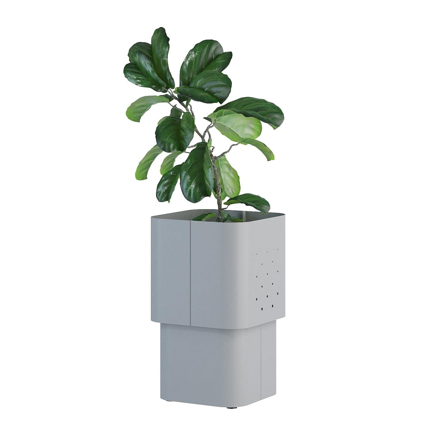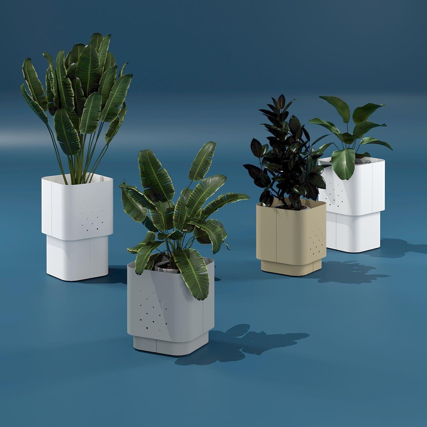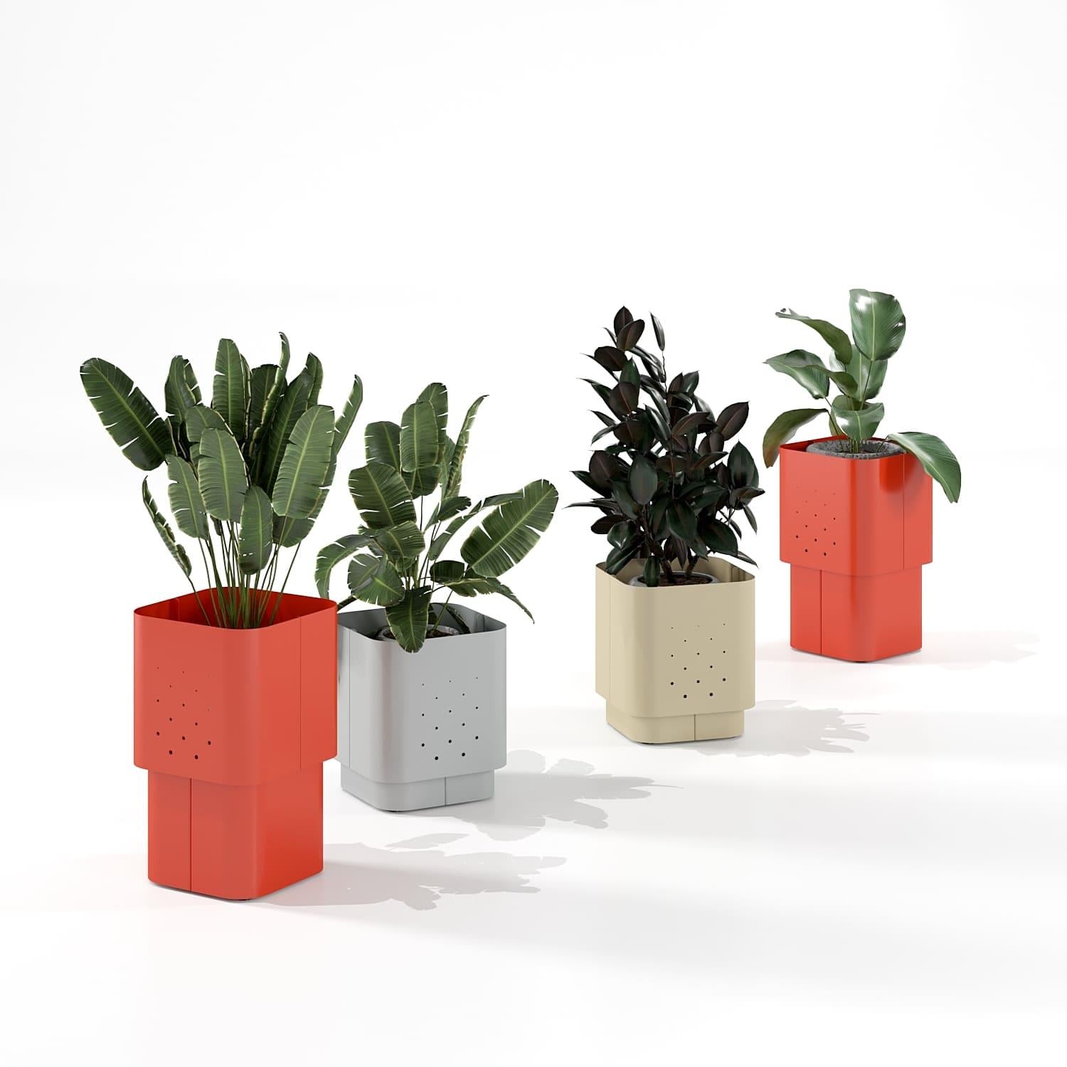Кашпо Aiuola (айола з італ. клумба) — це виразне рішення для озеленення громадських просторів. Поєднання округлих форм і нюансної палітри кольорів дозволили створити декоративне кашпо з яскравою індивідуальністю. Одинарне кашпо має монументальний зовнішній вигляд із плавними вигинами корпусу. Для його реалізації використовується спеціальний радіус дуги листозгинального преса. У результаті виходять чотири u-подібні сталеві листи, з повітряною перфорацією на стінках, з'єднані елегантними стиками. Дно корпусу вирізається лазером, має додаткову жорсткість для надійної установки і переміщення.