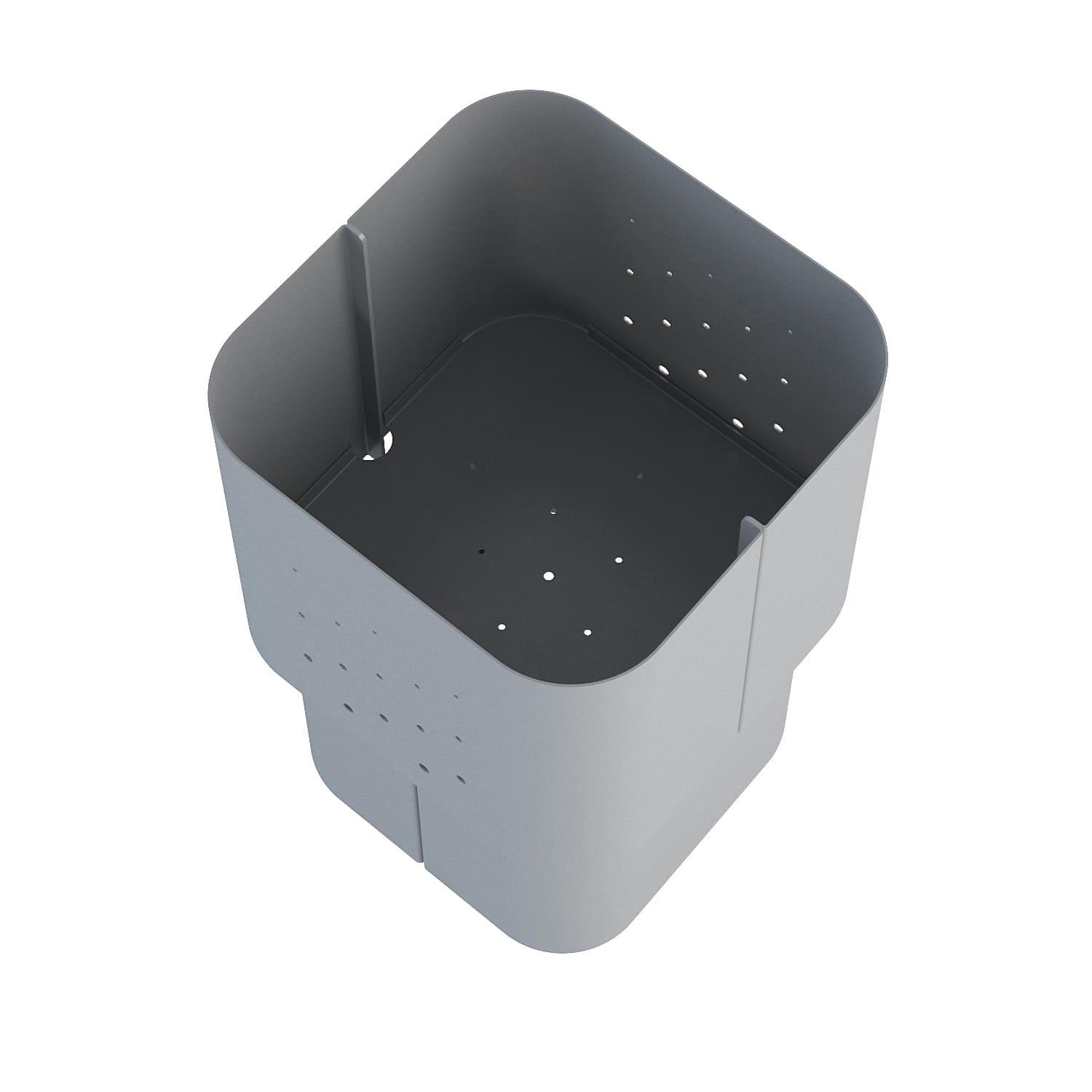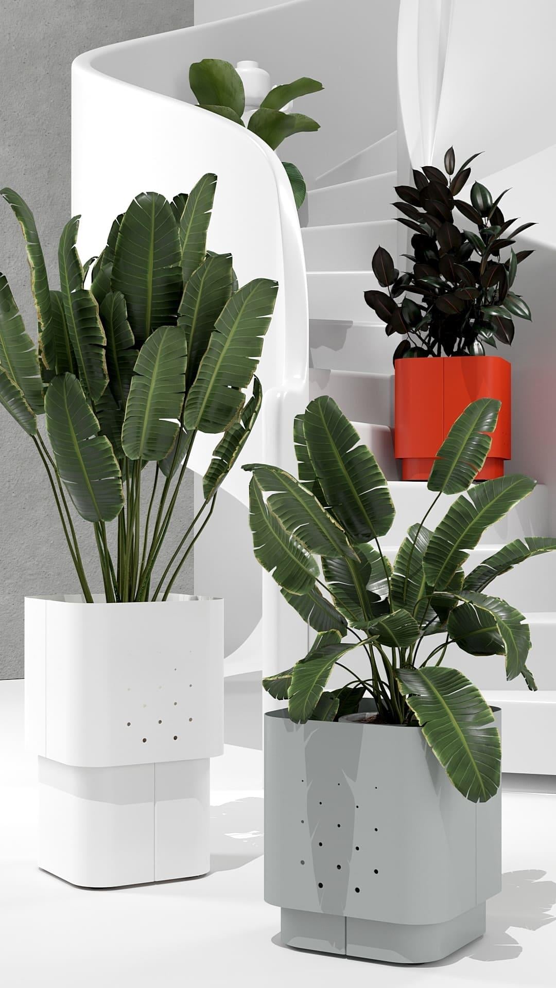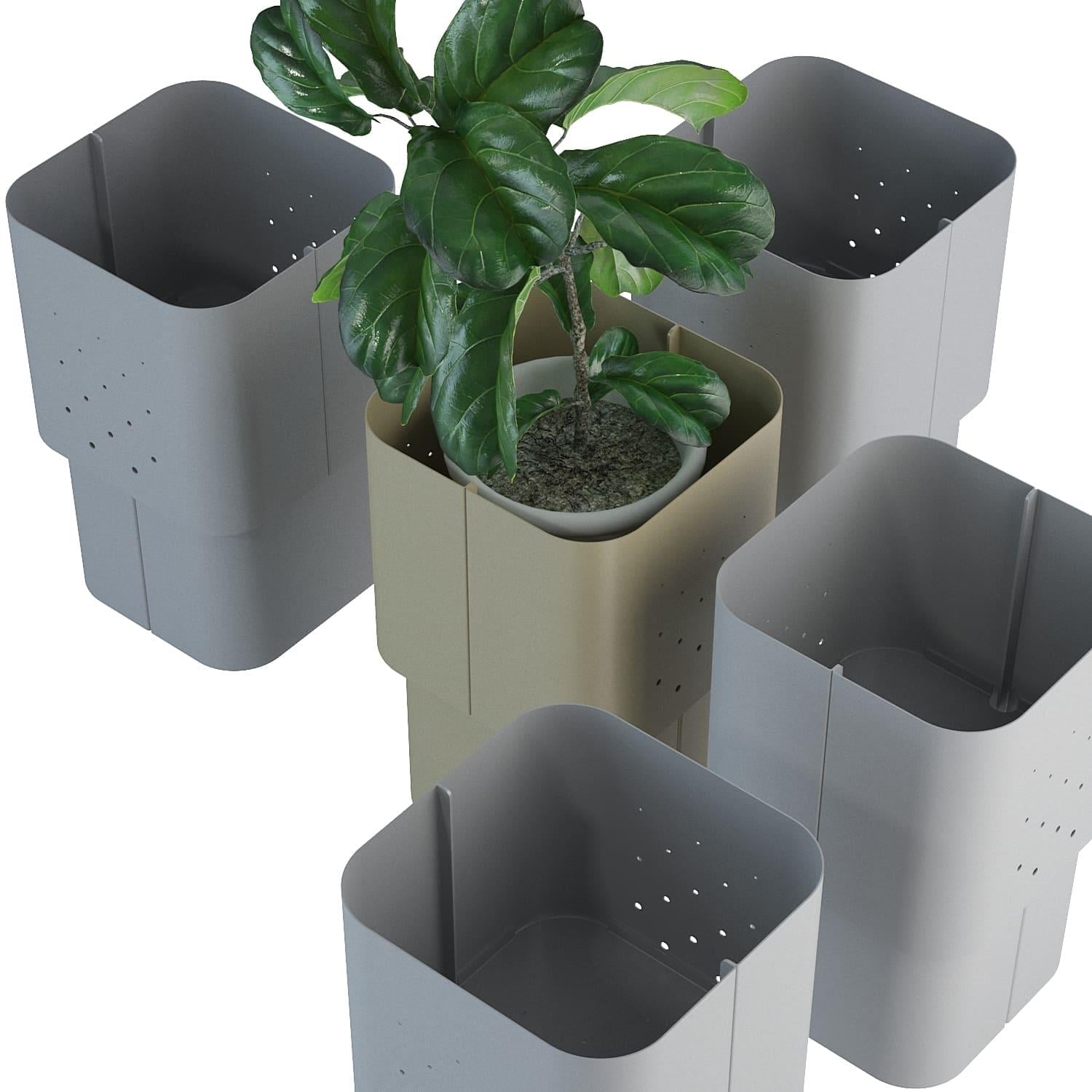 Кашпо Aiuola (айола з італ. клумба) — це виразне рішення для озеленення громадських просторів. Поєднання округлих форм і нюансної палітри кольорів дозволили створити декоративне кашпо з яскравою індивідуальністю. Одинарне кашпо має монументальний зовнішній вигляд із плавними вигинами корпусу. Для його реалізації використовується спеціальний радіус дуги листозгинального преса. У результаті виходять чотири u-подібні сталеві листи, з повітряною перфорацією на стінках, з'єднані елегантними стиками. Дно корпусу вирізається лазером, має додаткову жорсткість для надійної установки і переміщення.