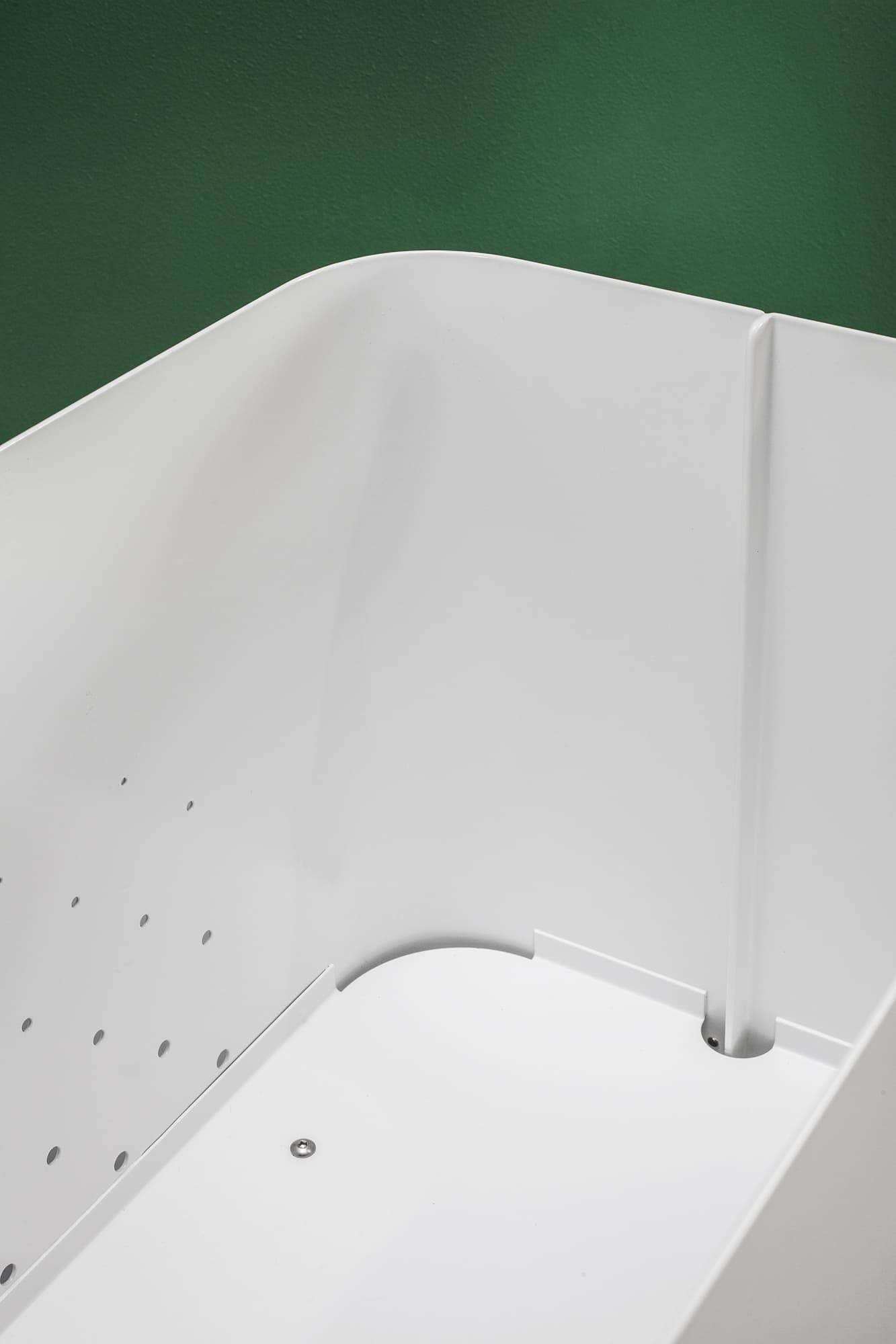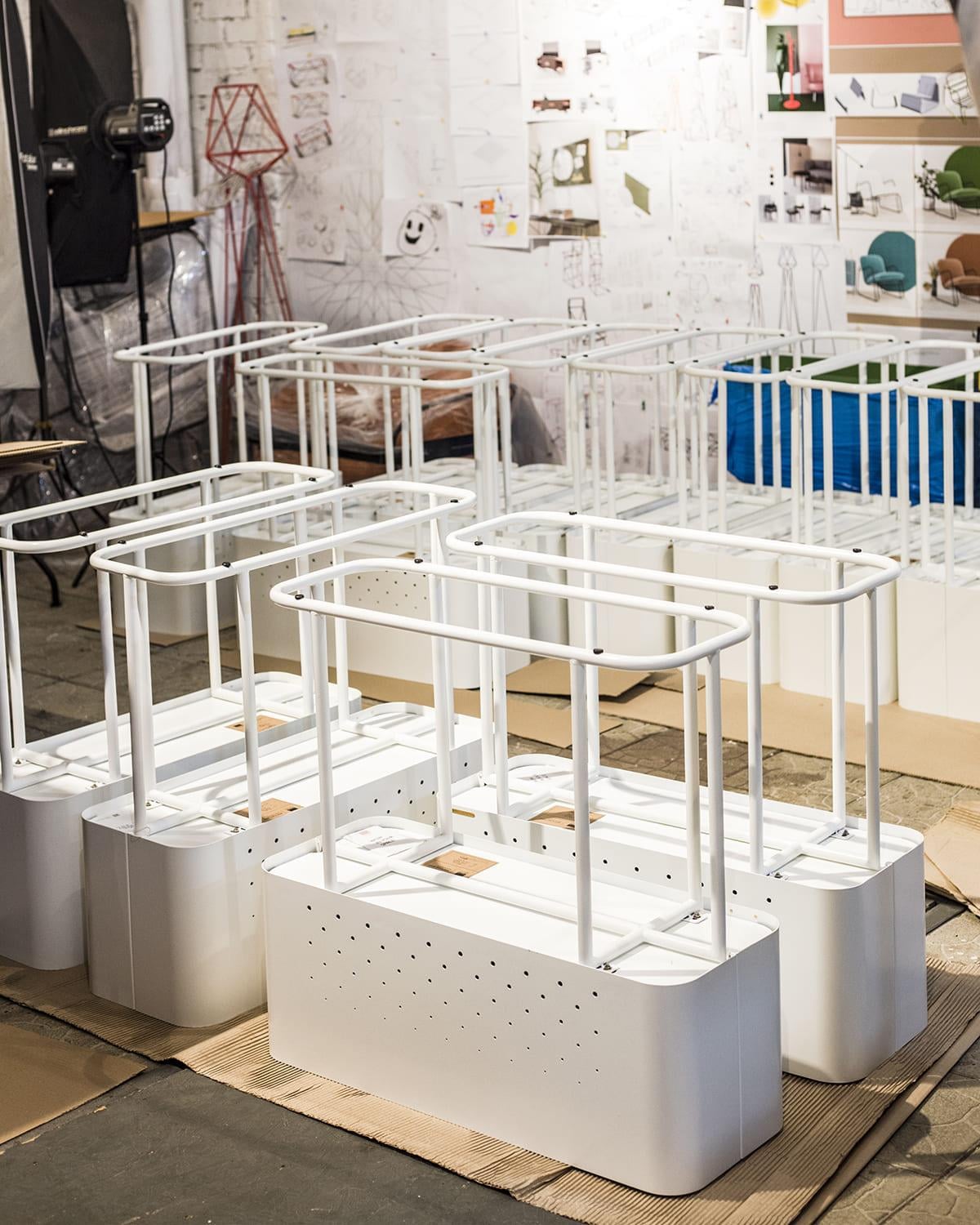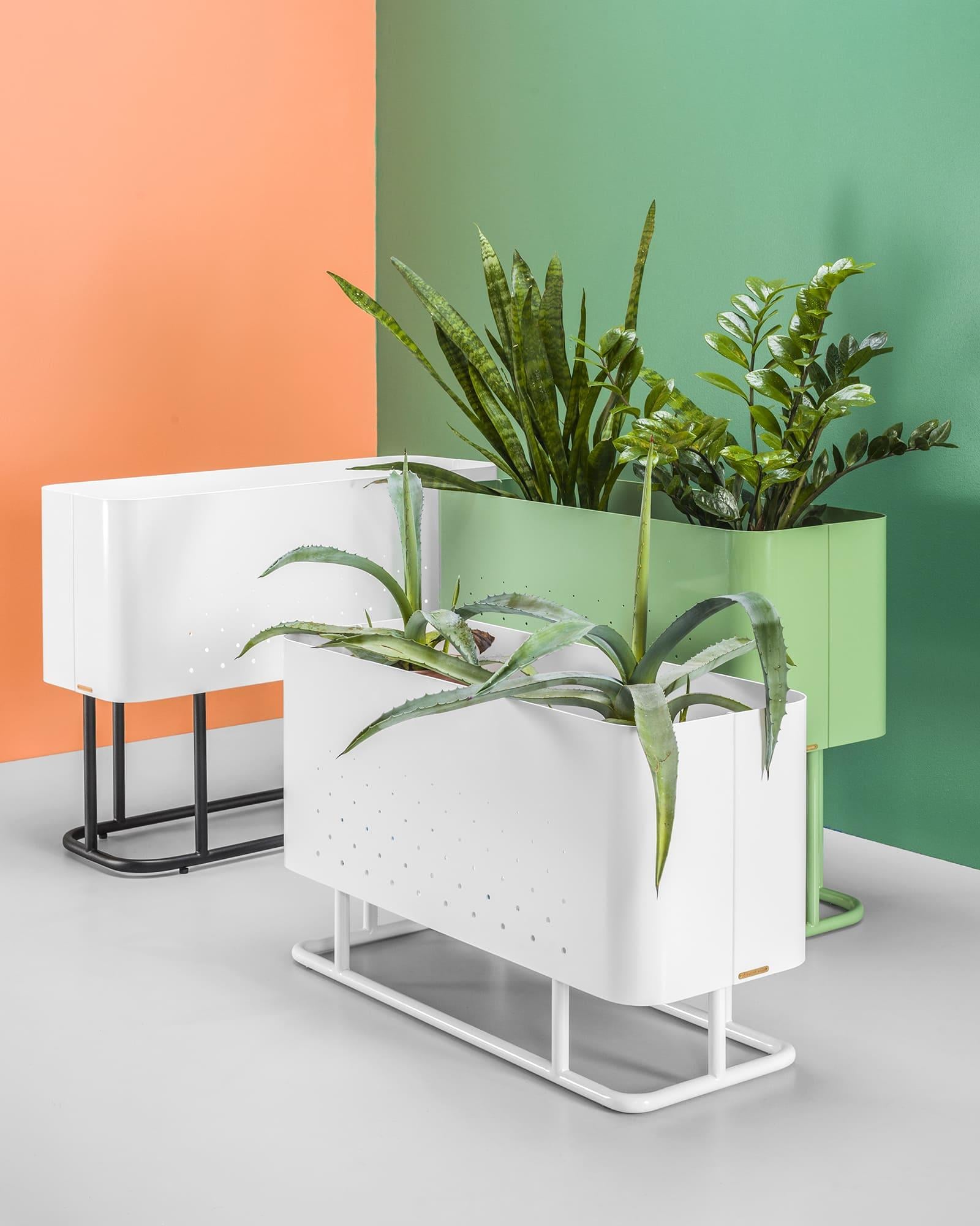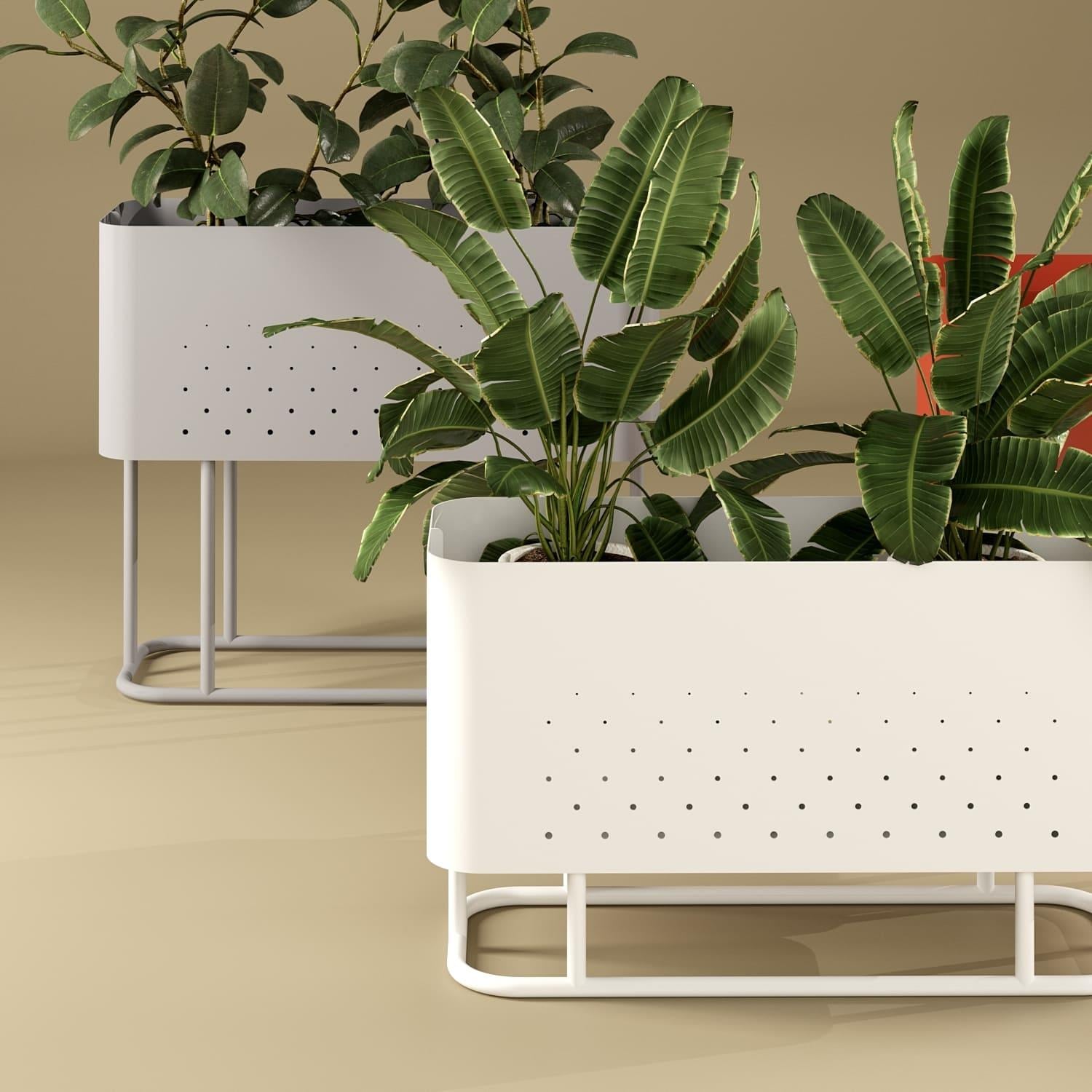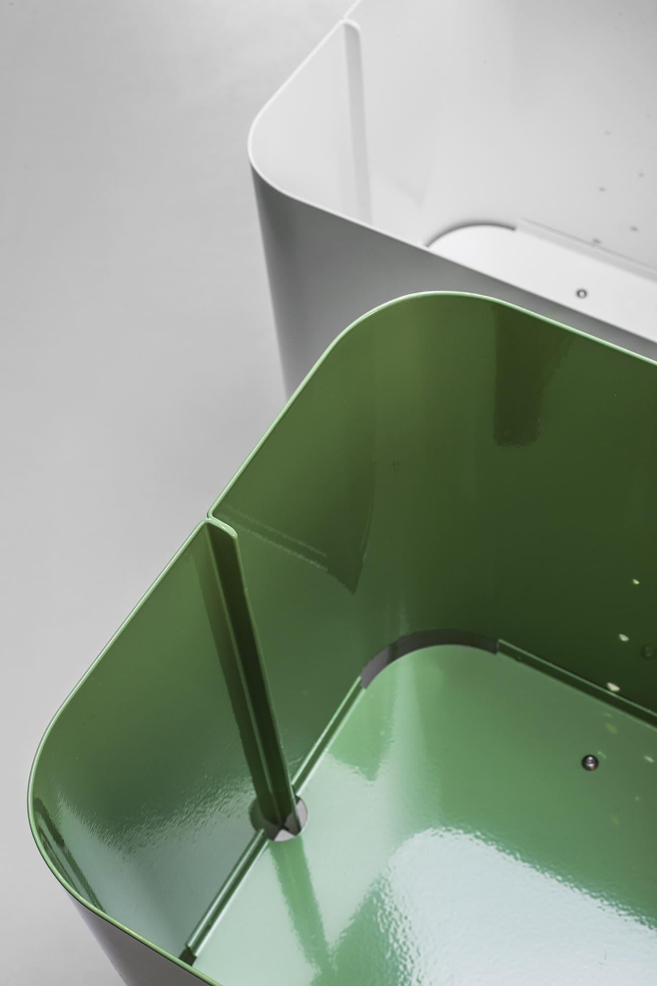 Кашпо Aiuola (айола з італ. клумба) - це виразне рішення для озеленення громадських просторів. Поєднання округлих форм і нюансної палітри кольорів дали змогу створити декоративне кашпо з яскравою індивідуальністю. Характерною рисою Aiuola є плавні вигини корпусу. Для його реалізації використовується максимальний радіус дуги листозгинального преса. У результаті виходять два u-подібні сталеві листи, з повітряною перфорацією на стінках, з'єднані елегантними стиками. Дно корпусу вирізається лазером, має додаткову жорсткість, що дозволяє уникнути просідання. Міцна основа з труби спроектована суцільнозварною для надійного встановлення та переміщення.