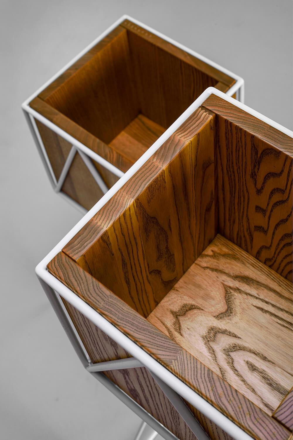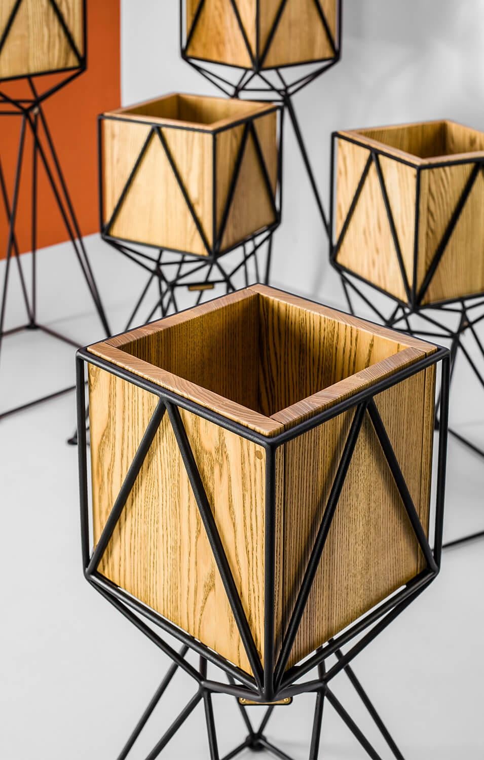 Кашпо Herba — це рішення для комфортного розміщення рослин у будинку. Наші зварювальники створюють технічно вивірені ефектні конструкції; а столярних справ майстри парирують це виконаною вручну дерев'яною діжкою, без видимих кріплень. Цей тандем рівнозначної роботи народжує бездоганний зовнішній вигляд виробу.