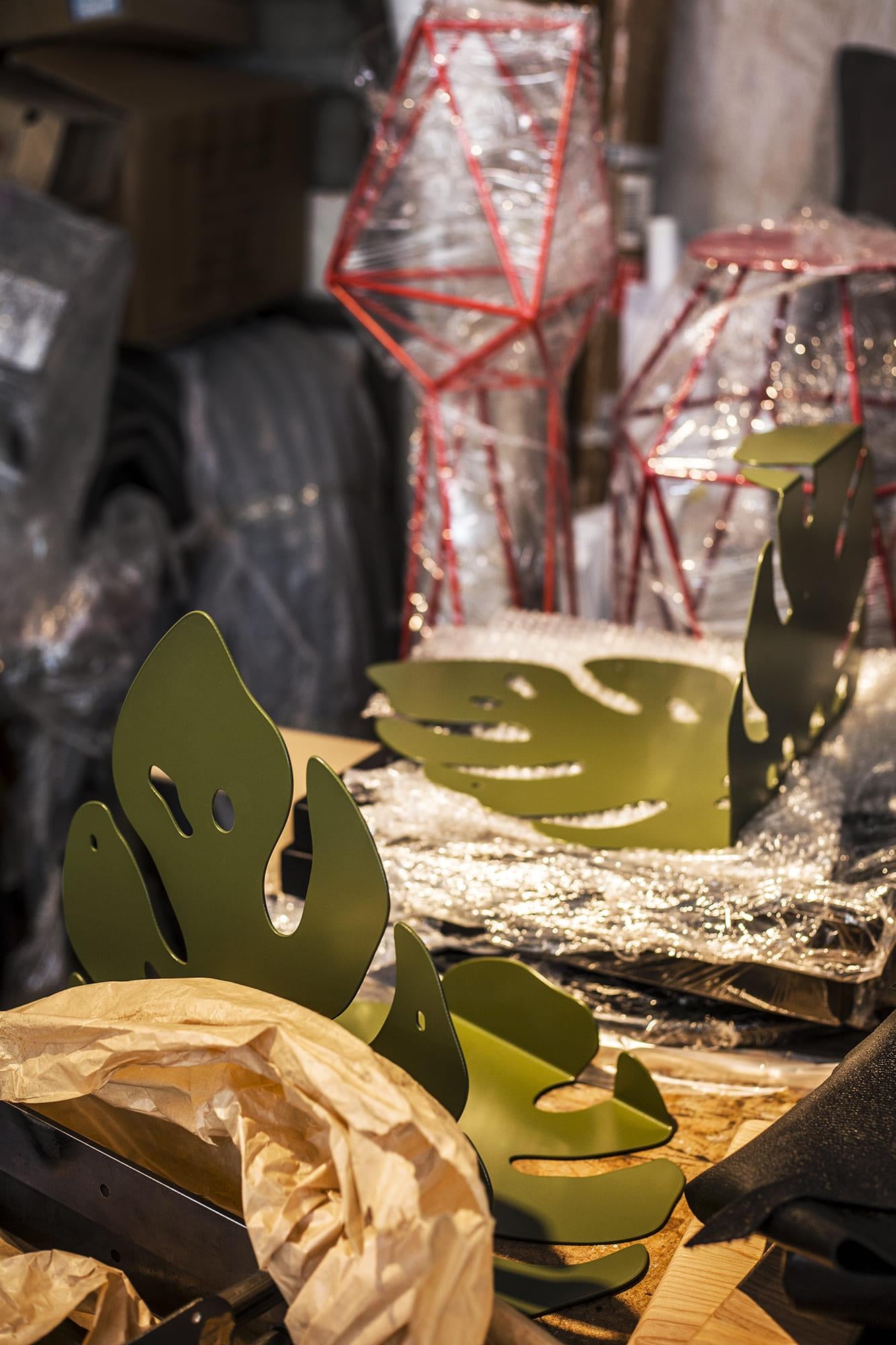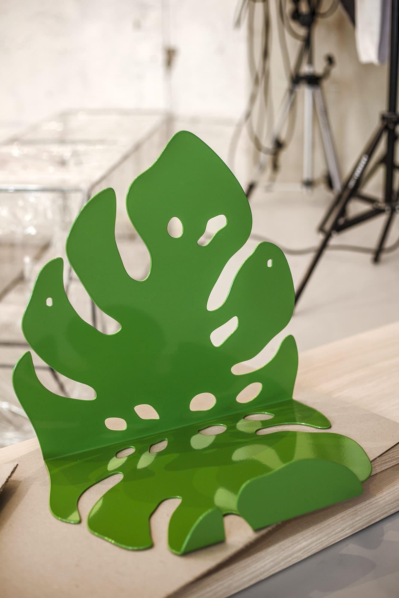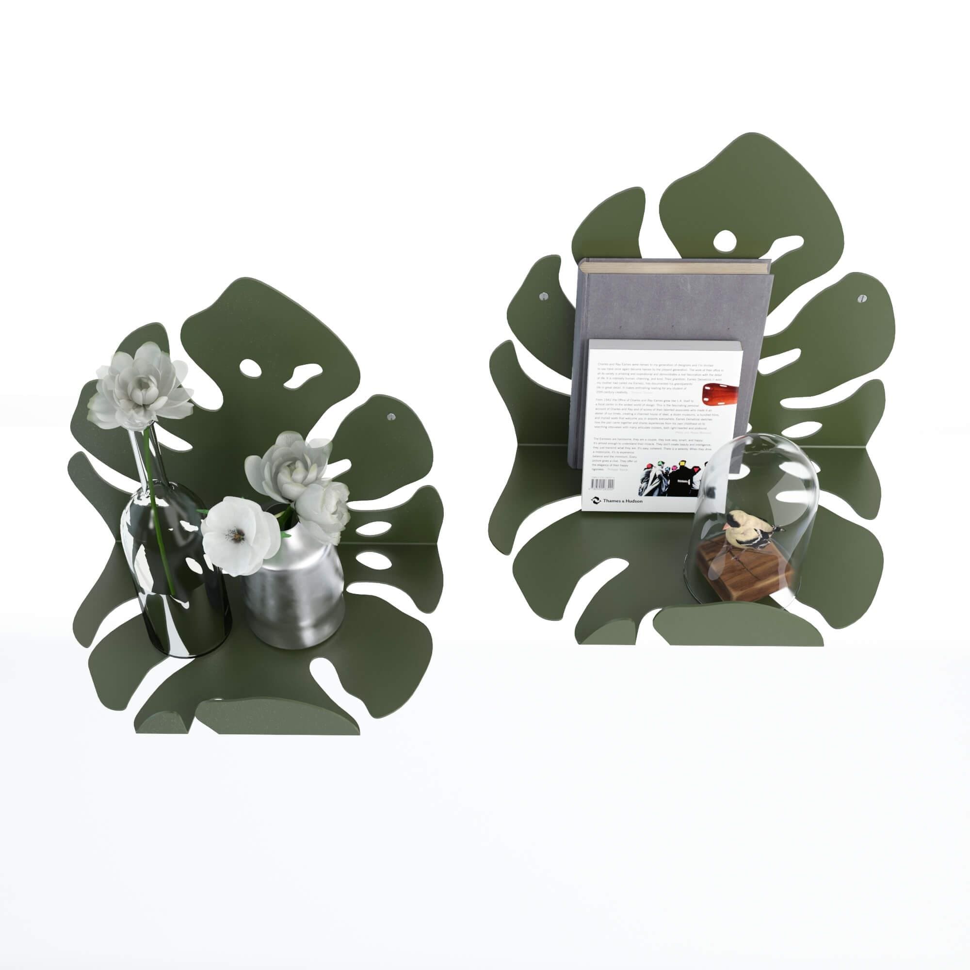 Комплект настінних полиць Dewy (англ. зволожений) виконані у вигляді зігнутого листа екзотичної рослини Monstera deliciosa. Вони не імітують тропічну обстановку в інтер'єрі, а є чудовим нагадуванням про безтурботне життя в оточенні ласкавого моря, освіжаючого бризу, екзотичної флори і фауни. У холодну пору року, коли за вікном стоїть похмура погода, цей декор зігріває серця господарів та їхніх гостей своїми приємними спогадами про теплі країни.