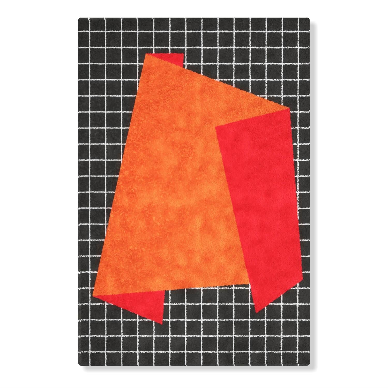 Килим має абстрактну площинну композицію у вигляді довільно зігнутого паперового аркуша, поміщеного на геометричну сітку. Вільне від естетичних норм зображення обігрує образи, пов'язані з постійним пошуком нових знань. Сміливі форми та яскраві кольори створюють відчуття прозріння і розважливої ясності всього, що відбувається навколо. Такий дизайн був натхненний стилем мемфіс, що існував у 80-х роках. "Ми переосмислили кольори та графіку, притаманну тому періоду й отримали сучасне рішення".