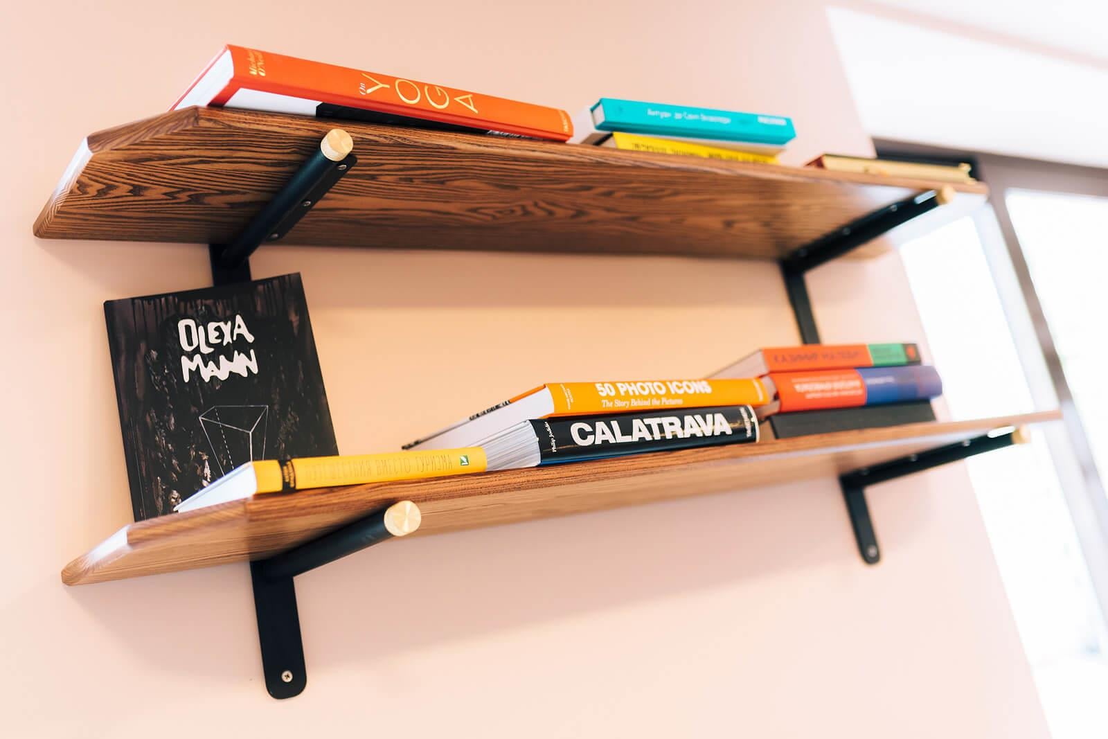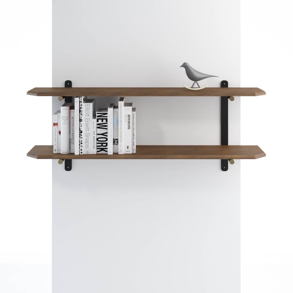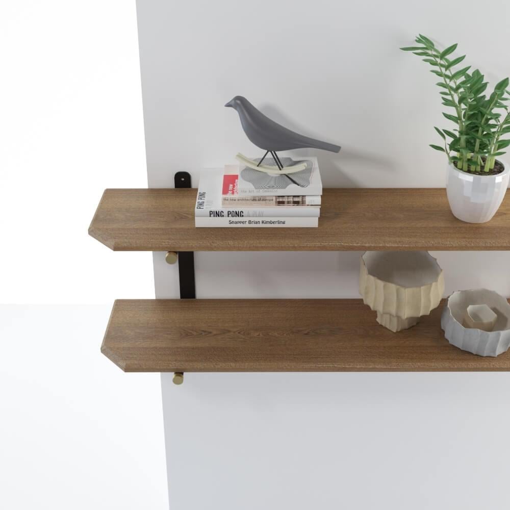 Яскравою особливістю поличок є акцентні латунні закінчення. У поєднанні з темною дерев'яною поверхнею, вони створюють відчуття блискучих ґудзиків на японській шкільній формі для хлопчиків - гакуран. Як ще одне відсилання до освіти і до того, що часи суворої шкільної дисципліни для вас уже минули. Tsunde будуть доречні в різних домашніх зонах: коридорі, передпокої, вітальні, спальні або кухні. Потужні кронштейни зі сталевого листа і труби, створюють міцну систему, що кріпиться до стіни. Це дає змогу скласти підвісні книжкові шафи в громадських просторах і освітніх центрах.