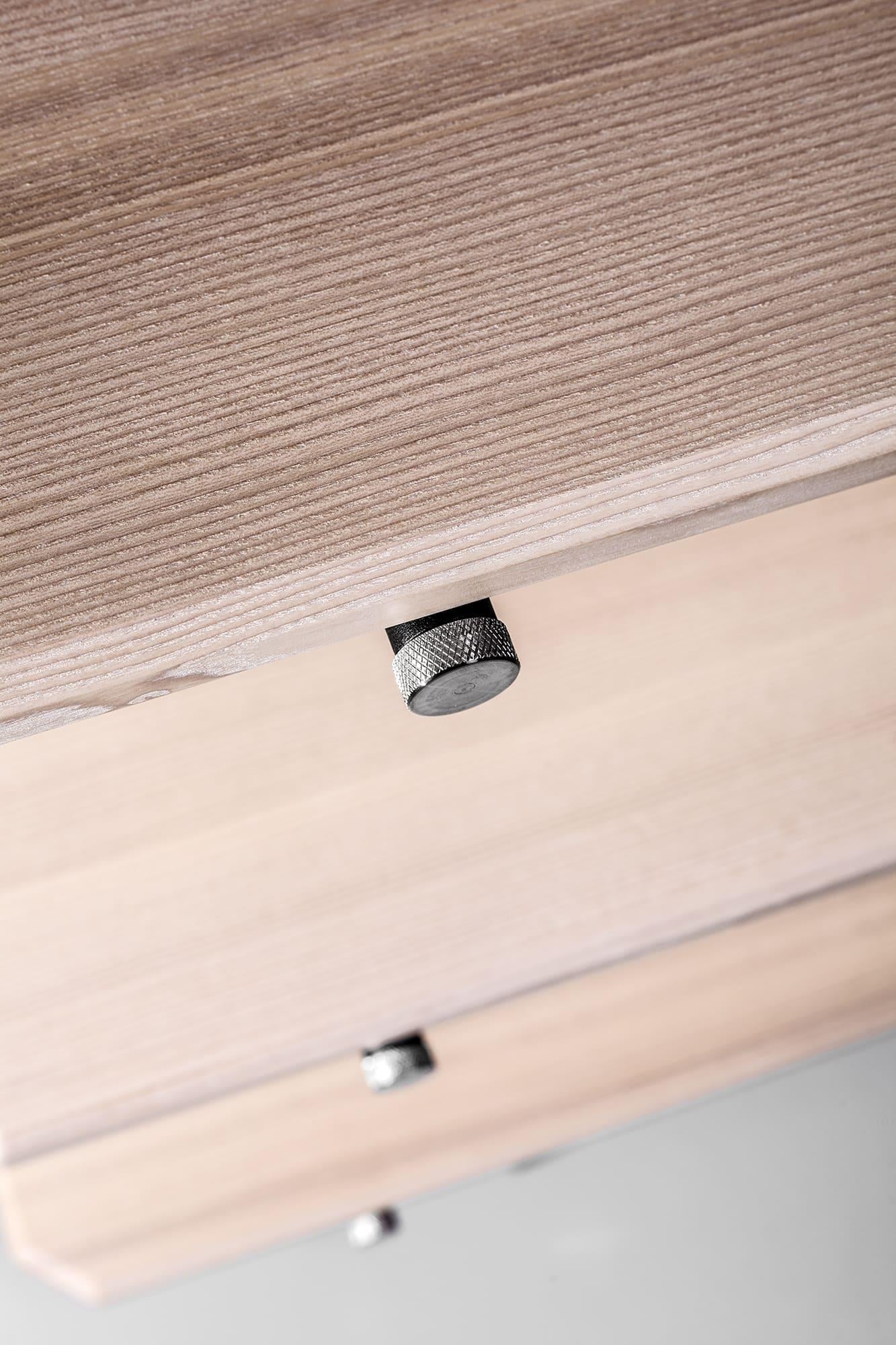 Каркас: сталева труба 22 мм, сталевий лист 6 мм, порошкове фарбування, латунні закінчення, латунний знак автентичності, комплект кріплень. Стільниця: масив ясена 20 мм (за запитом доступний дуб). Покриття: масло з твердим воском OSMO (Німеччина); поліуретанова емаль для дерева KEMICHAL (Італія). Поверхня: шовковисто-матова. Догляд: будь-яку пролиту рідину потрібно відразу промокнути серветками. Потім видалити мильним розчином і витерти насухо тканиною.