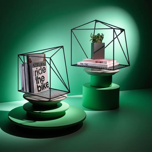 Колекція Abstra — це універсальне рішення для зберігання, що складається з кубічних модулів. Вона є інтерпретацією розробок європейського авангарду 1920-х років. Лінійна композиція вирізняється великою кількістю повітря між блоками. На поверхні поличок розмістився грайливий орнамент із геометричної абстракції, що вносить візуальну різноманітність.
