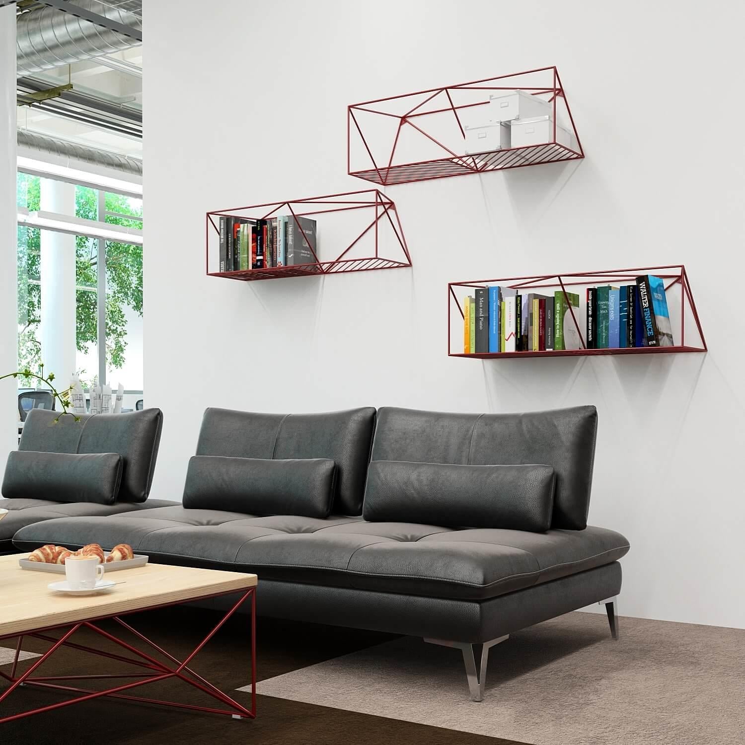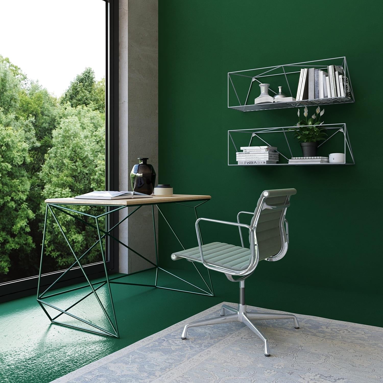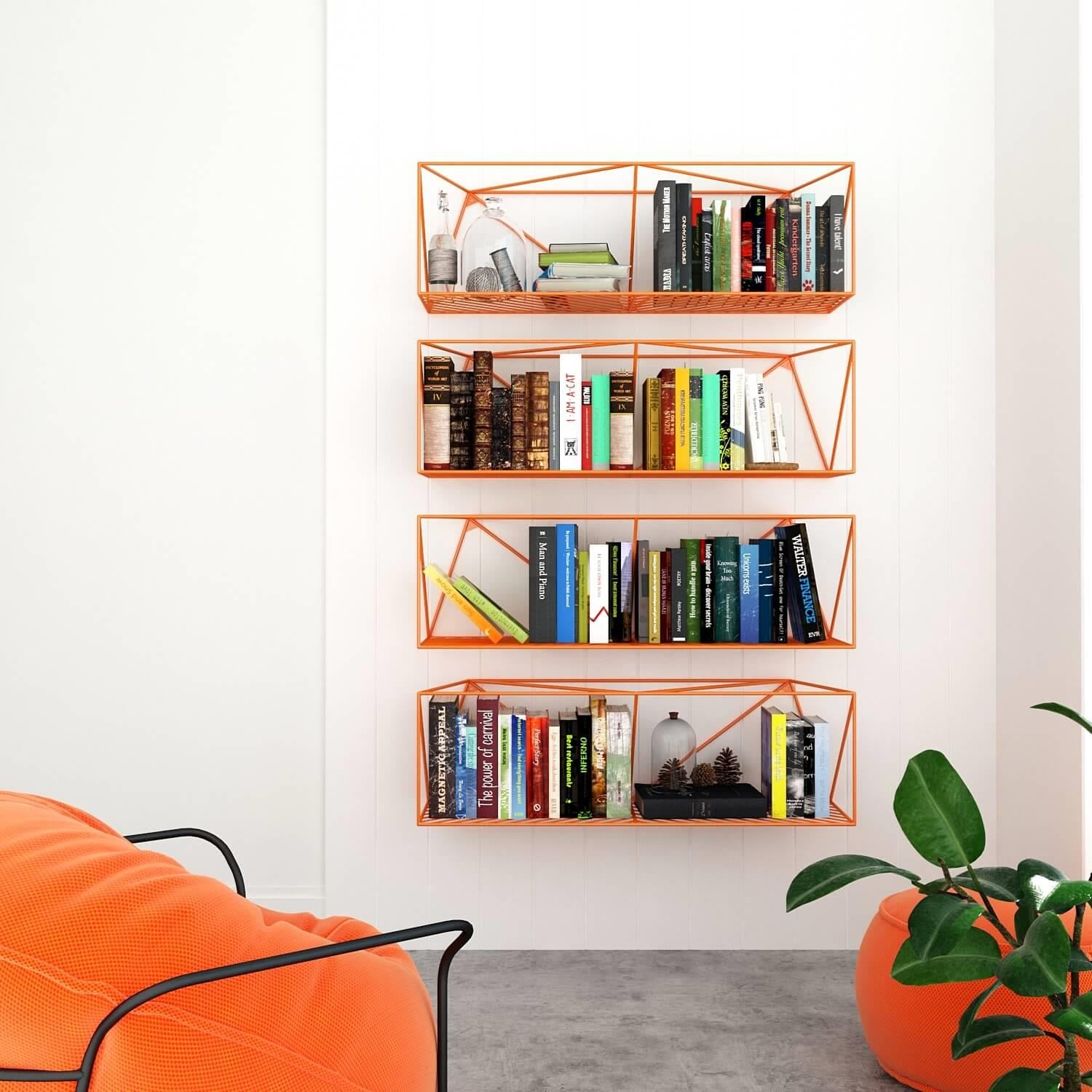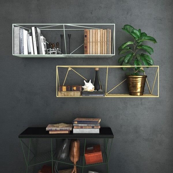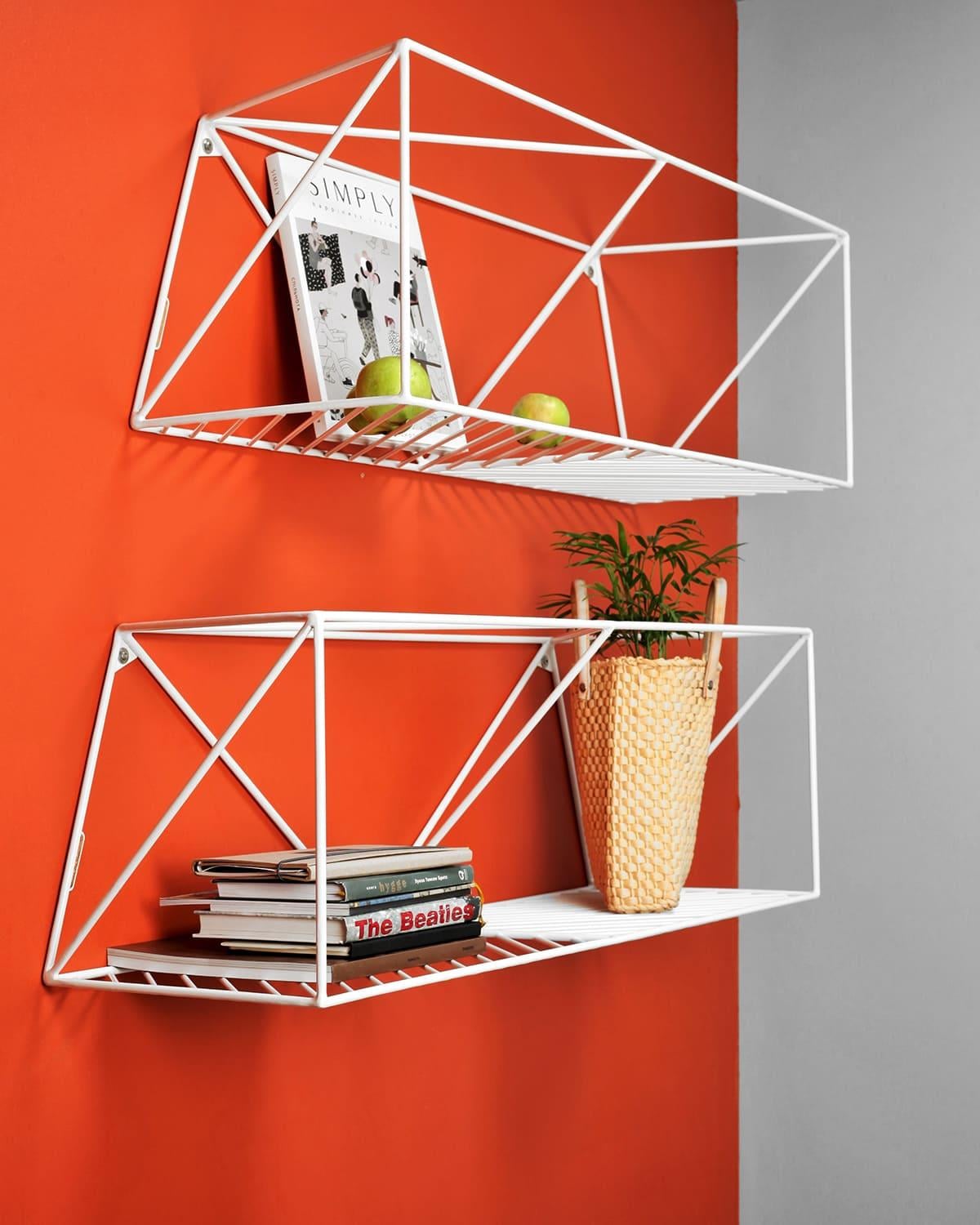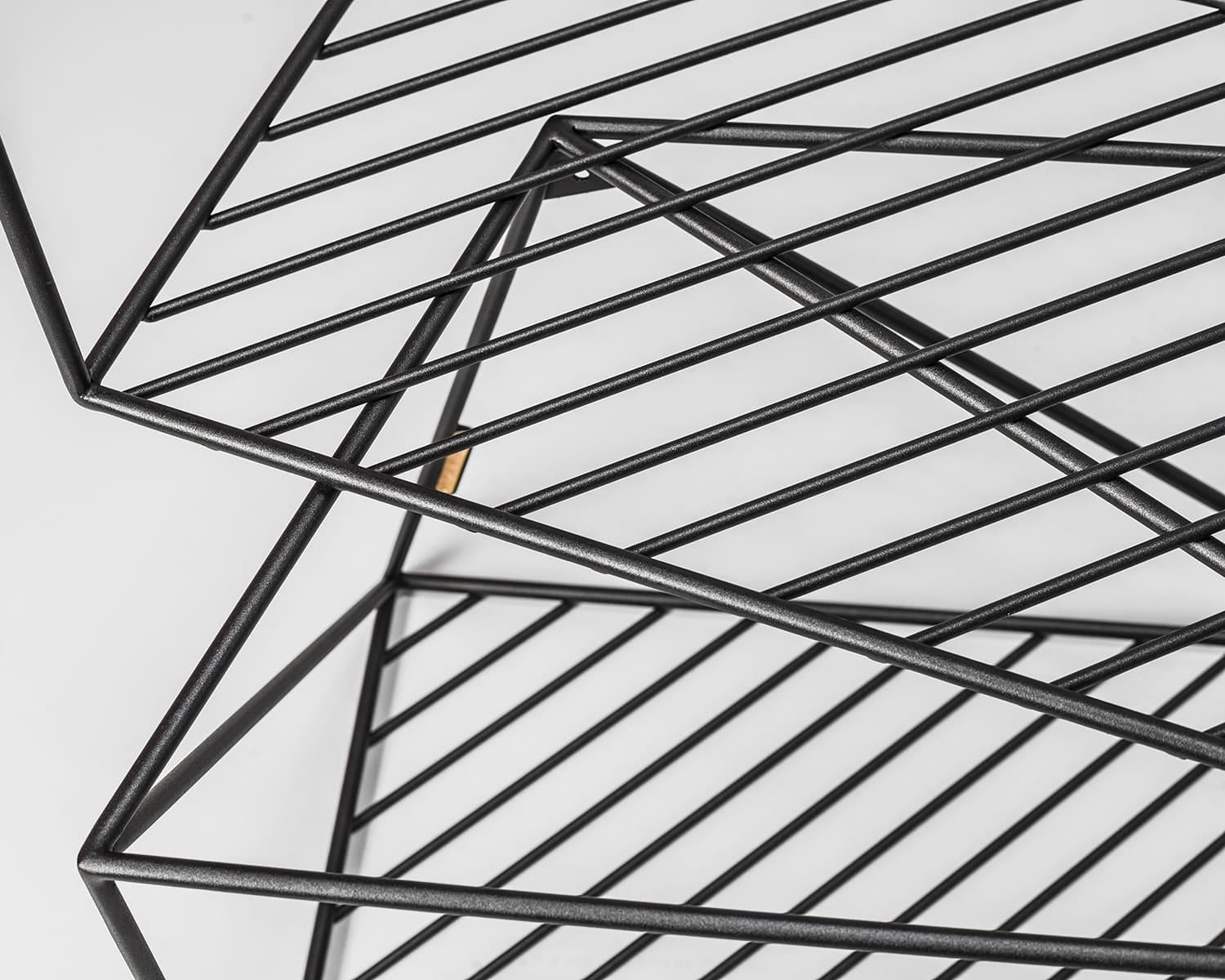Настінні полиці Uklad являють собою вигадливу систему зберігання, що легко кріпиться до стіни. Металеві стрижні спрямовуються з кутів, утворюючи динамічний потік ліній, міцний для навантажень. У комплект входять 2 одиниці.