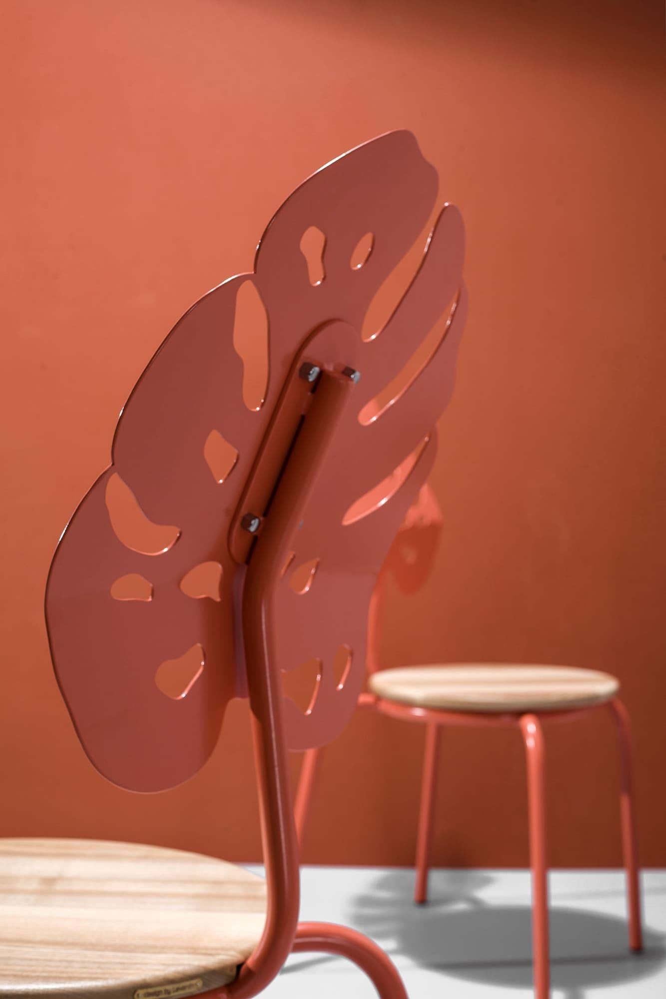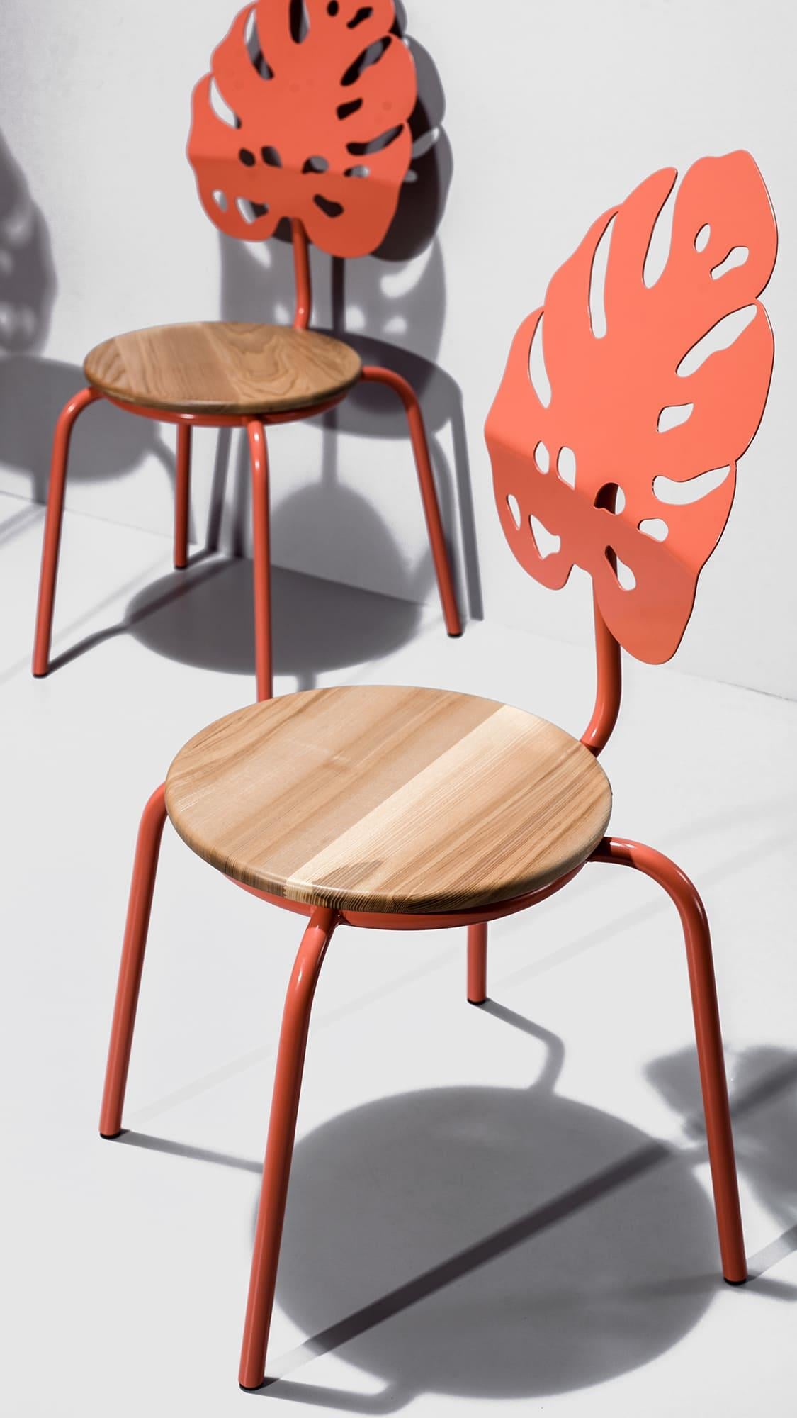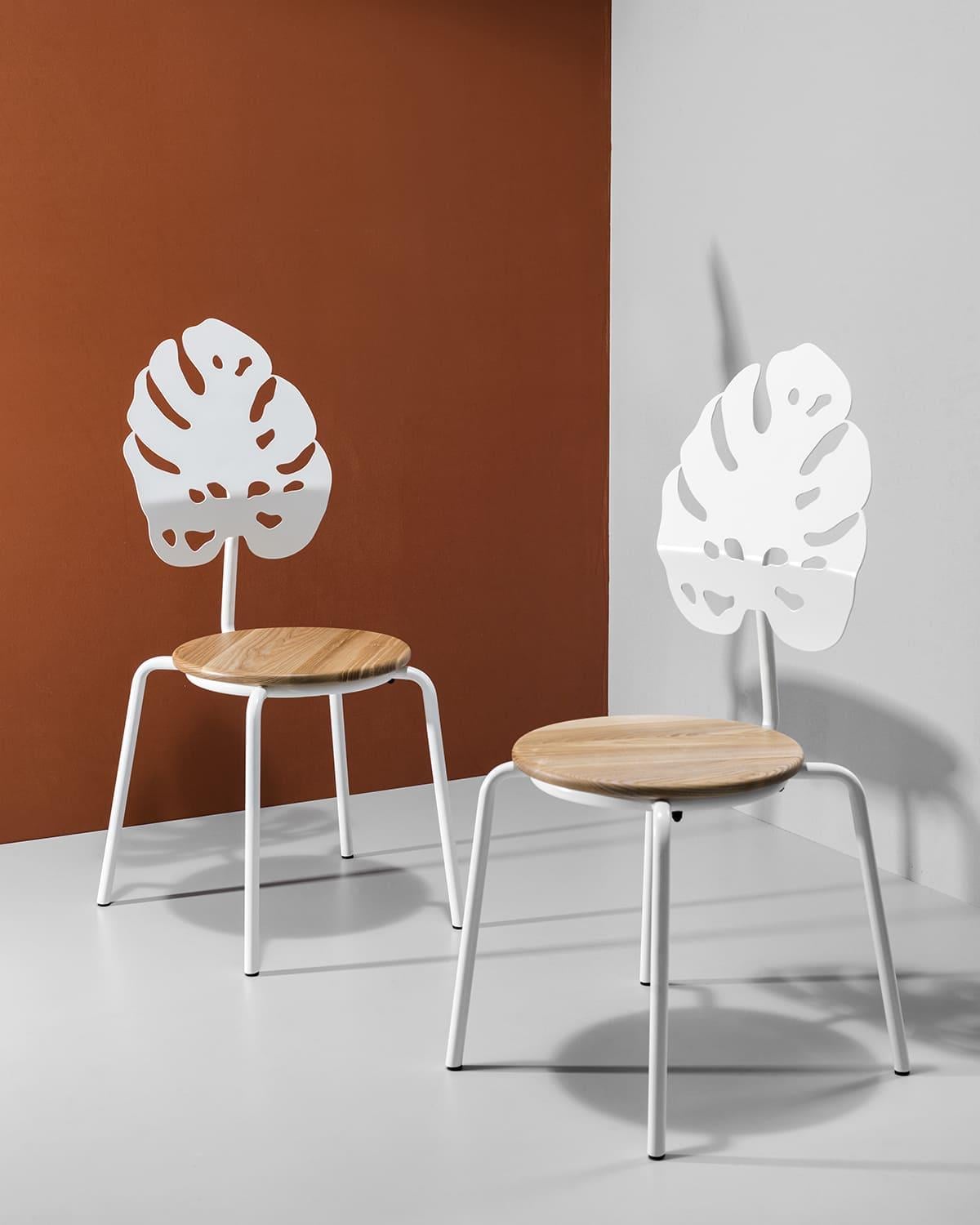 Колекція акцентних стільців Dewy (англ. зволожений) звертає на себе увагу завдяки спинці у вигляді екзотичної рослини Monstera deliciosa. Ергономічно зігнутий сталевий лист виражає ідею створення символічних елементів простими інструментами. Dewy не імітує тропічну обстановку в інтер'єрі, а є чудовим нагадуванням про безтурботне життя в оточенні ласкавого моря, освіжаючого бризу, екзотичної флори і фауни. У холодну пору року, коли за вікном стоїть похмура погода, цей декор зігріває серця господарів та їхніх гостей своїми приємними спогадами про теплі країни. Для вуличних терас можлива модифікація з сидінням з HPL.