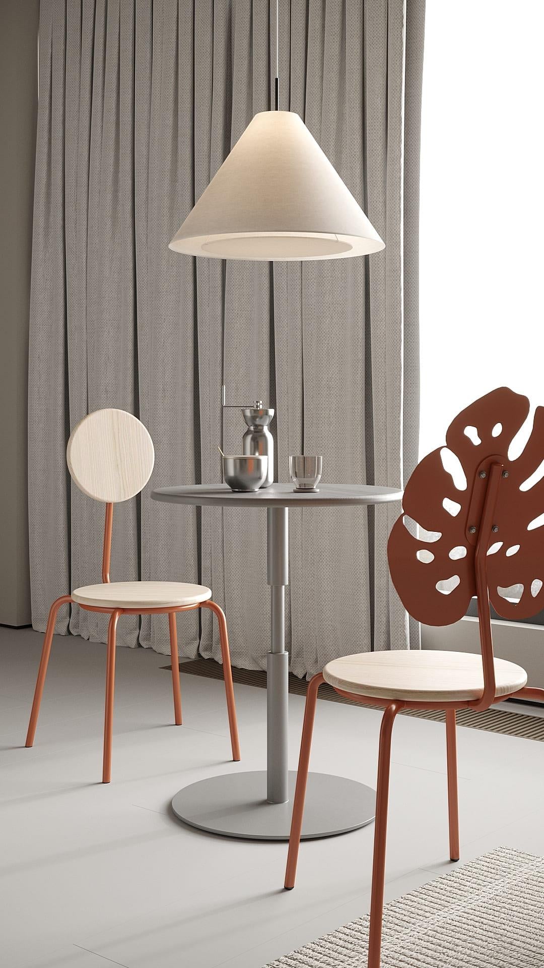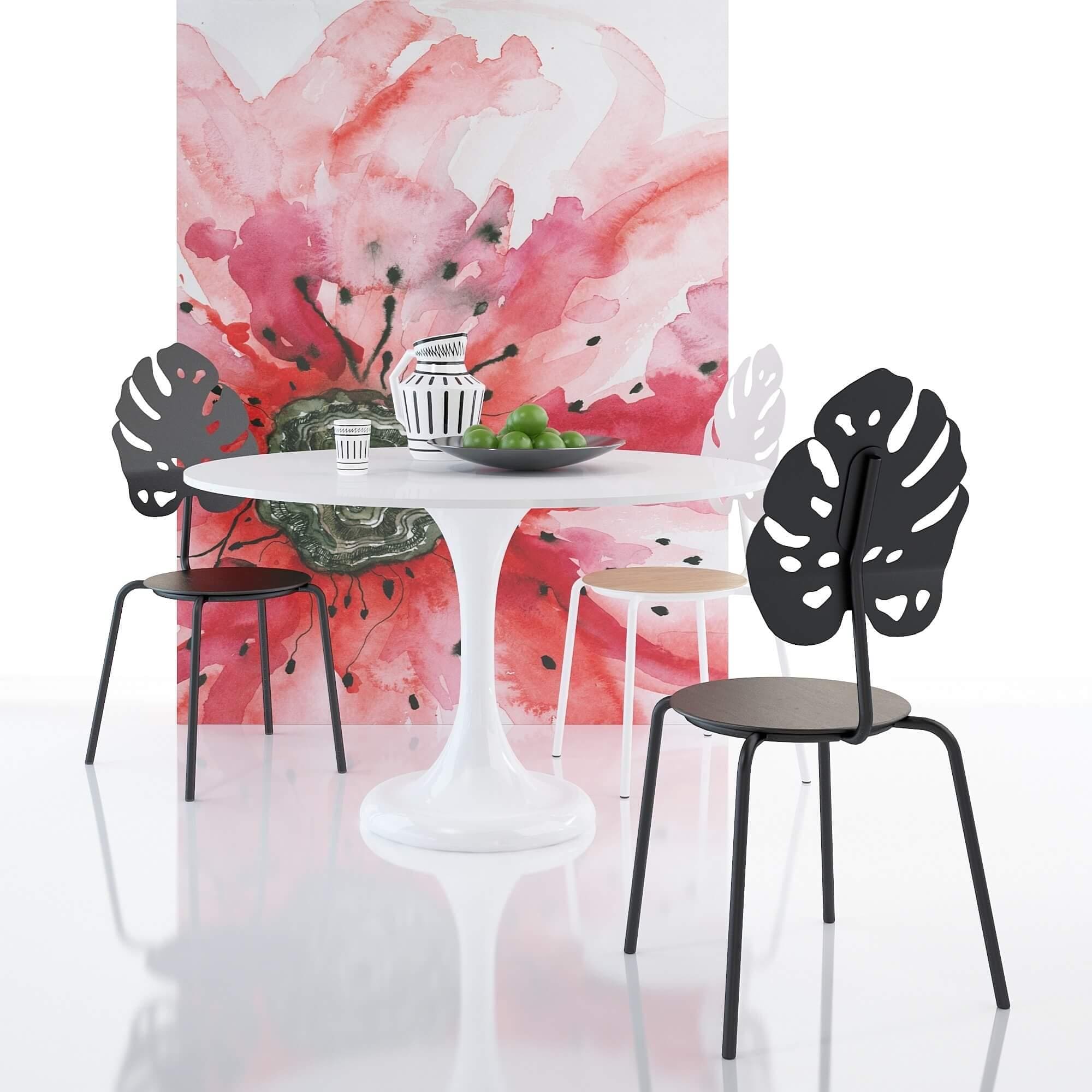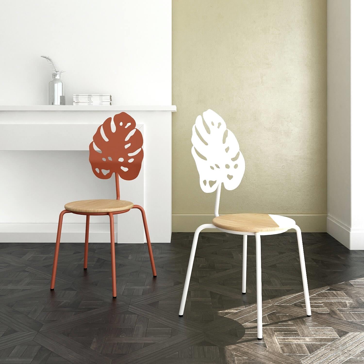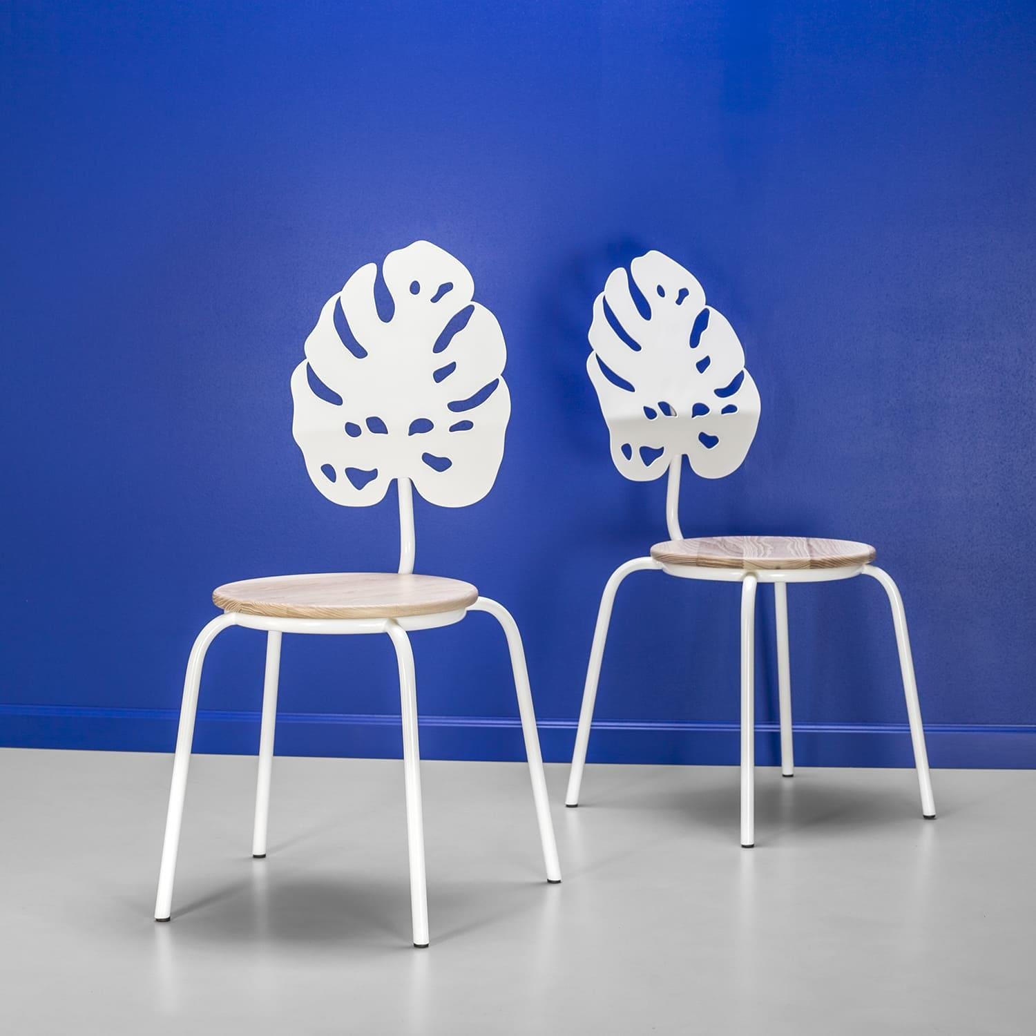 Колекція акцентних стільців Dewy (англ. зволожений) звертає на себе увагу завдяки спинці у вигляді екзотичної рослини Monstera deliciosa. Ергономічно зігнутий сталевий лист виражає ідею створення символічних елементів простими інструментами. Dewy не імітує тропічну обстановку в інтер'єрі, а є чудовим нагадуванням про безтурботне життя в оточенні ласкавого моря, освіжаючого бризу, екзотичної флори і фауни. У холодну пору року, коли за вікном стоїть похмура погода, цей декор зігріває серця господарів та їхніх гостей своїми приємними спогадами про теплі країни. Для вуличних терас можлива модифікація з сидінням з HPL.