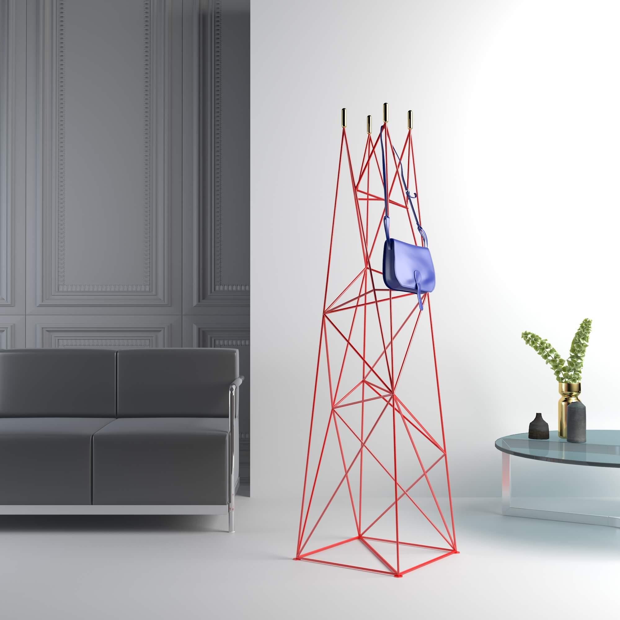 Вішалка Skala символізує міцний об'єкт, у вигляді загостреної гори, що слугує місцем розміщення одягу. Металевий хаос ліній, що плавно звужується до вершини, зображує круті схили, на яких можна розмістити елементи гардероба. Завершується архітектурна споруда латунними закінченнями, що сходяться в циліндри.