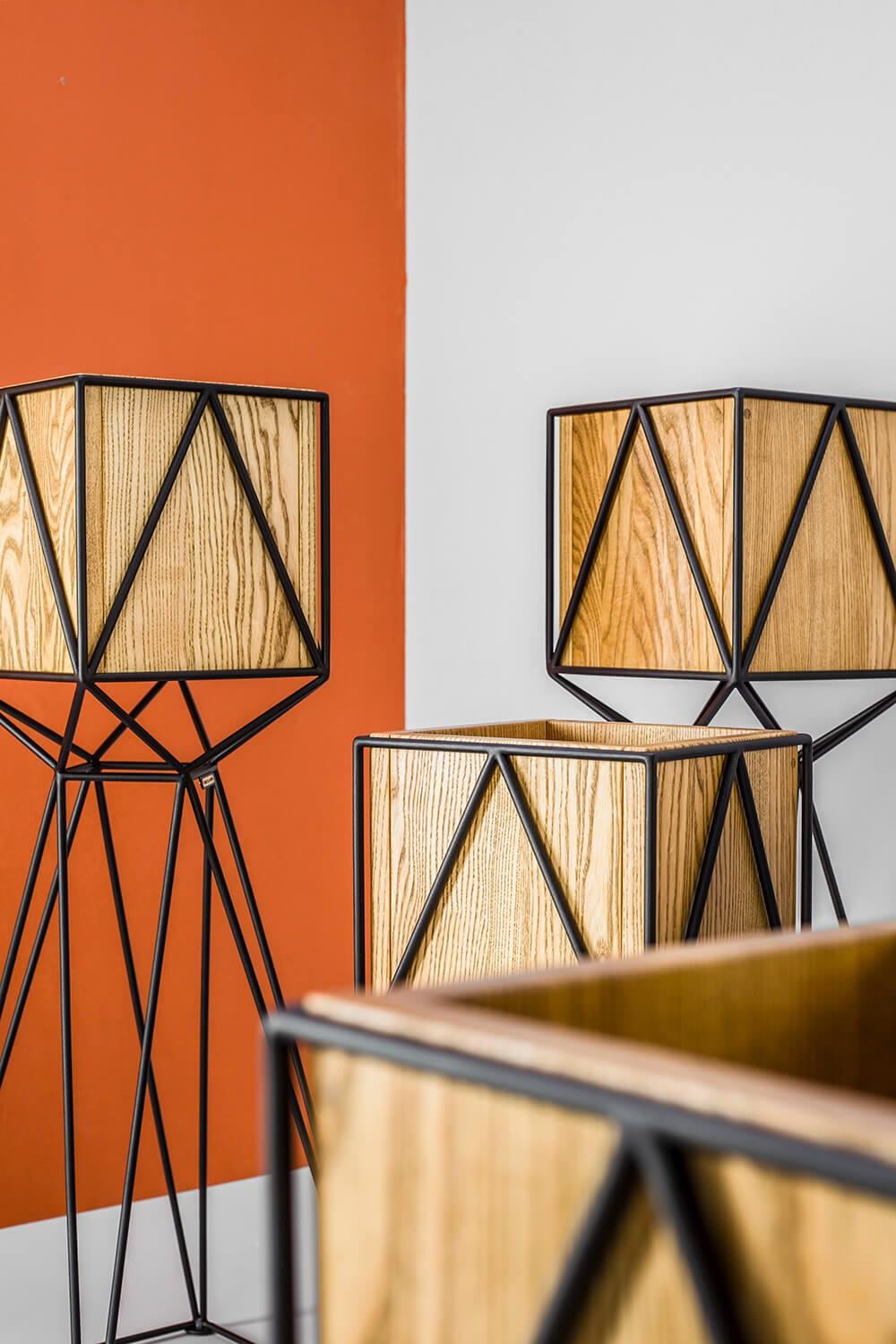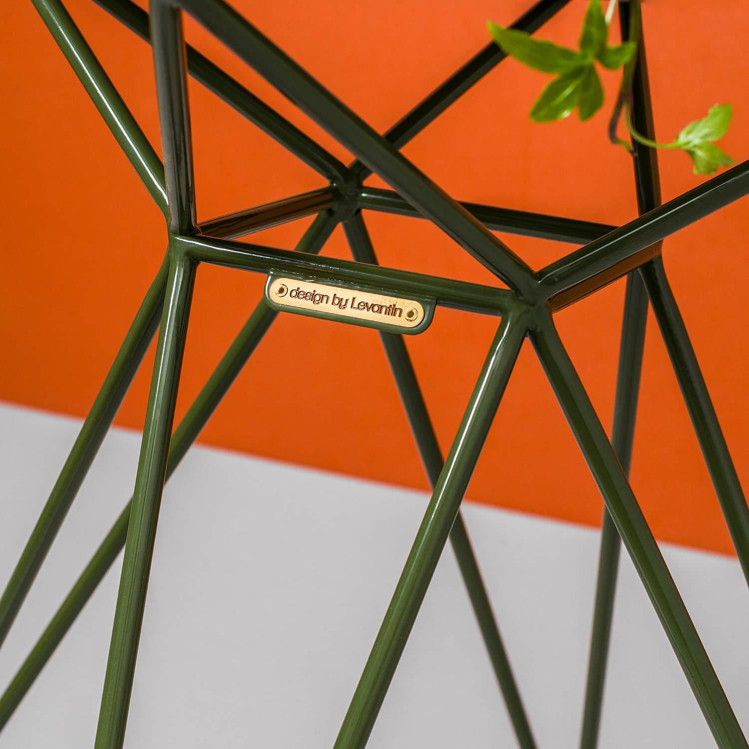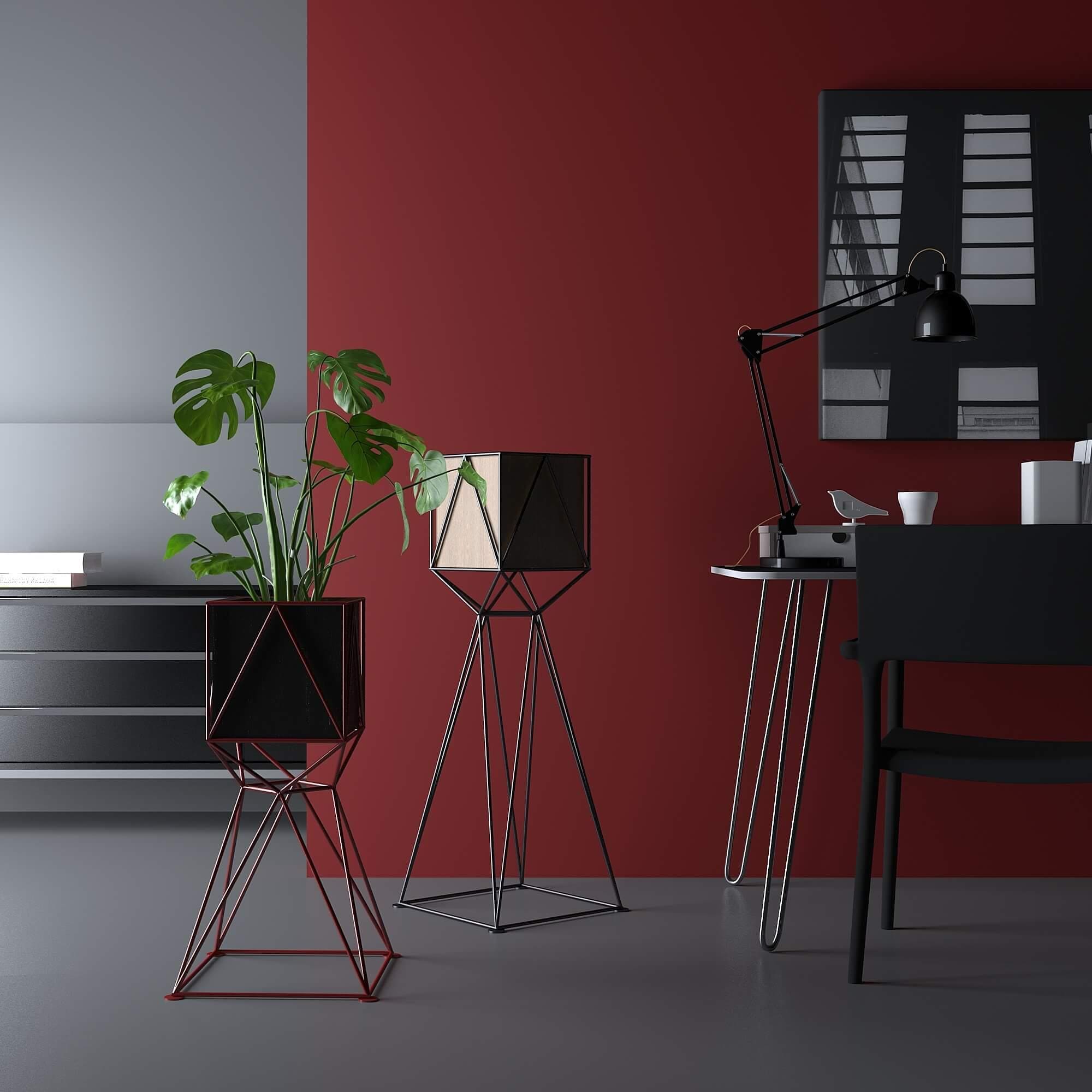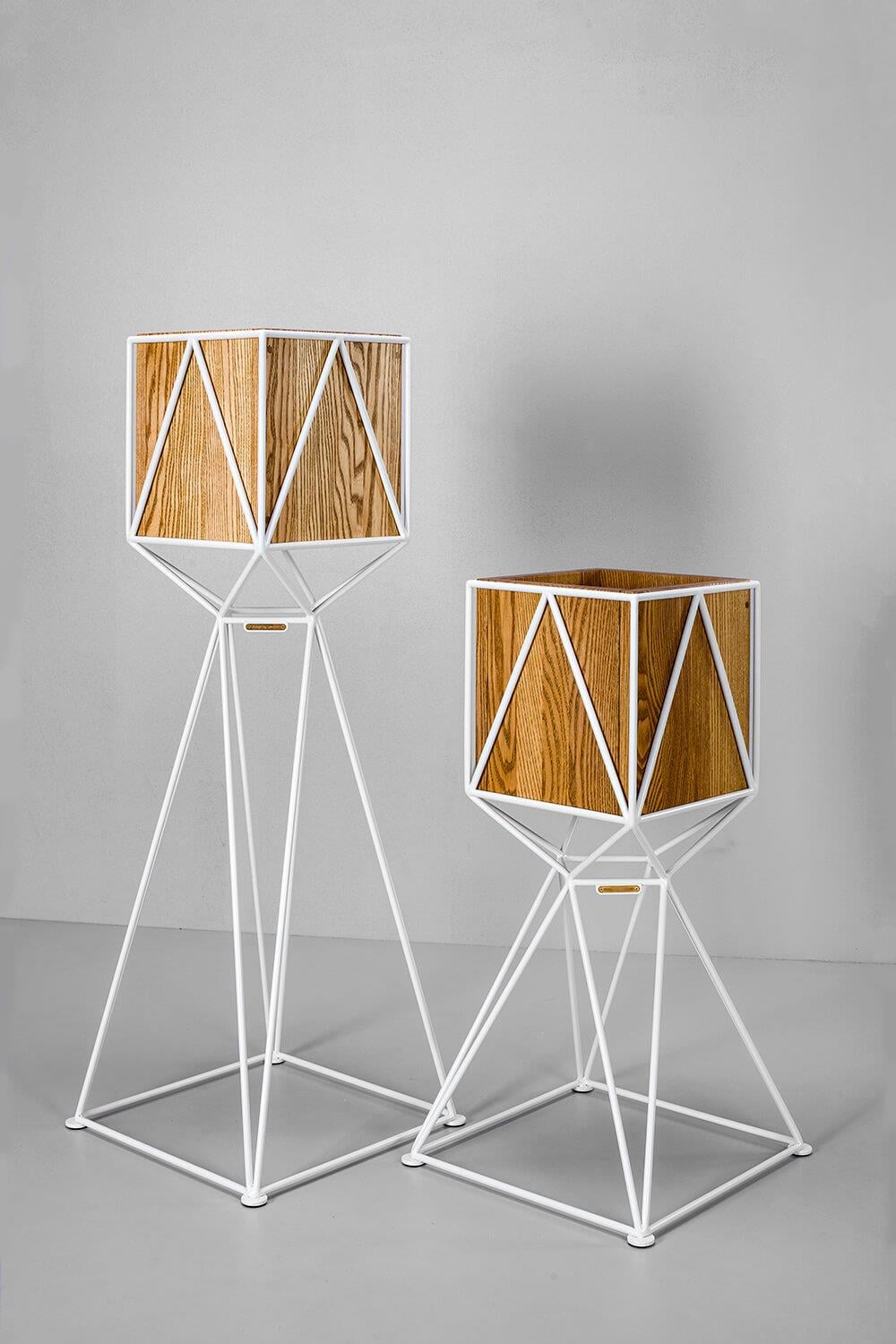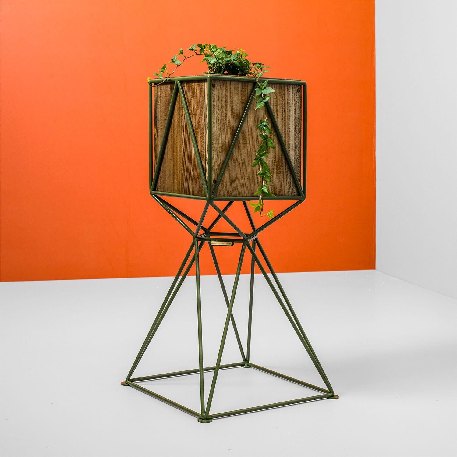 Каркас: стальной стержень 10 мм, порошковая покраска, войлочные накладки для защиты пола, латунный знак подлинности. Кадка: массив ясеня 20 мм. Уход: размещайте растение в собственном горшке с нужным дренажем, открытый влажный грунт может деформировать поверхность.