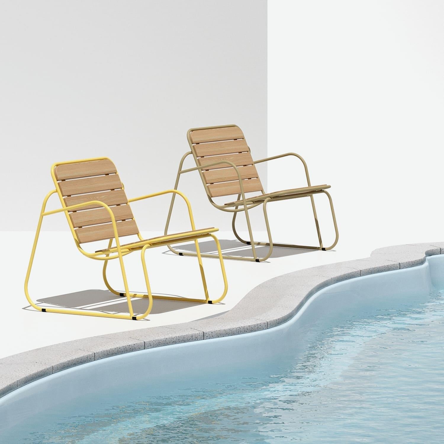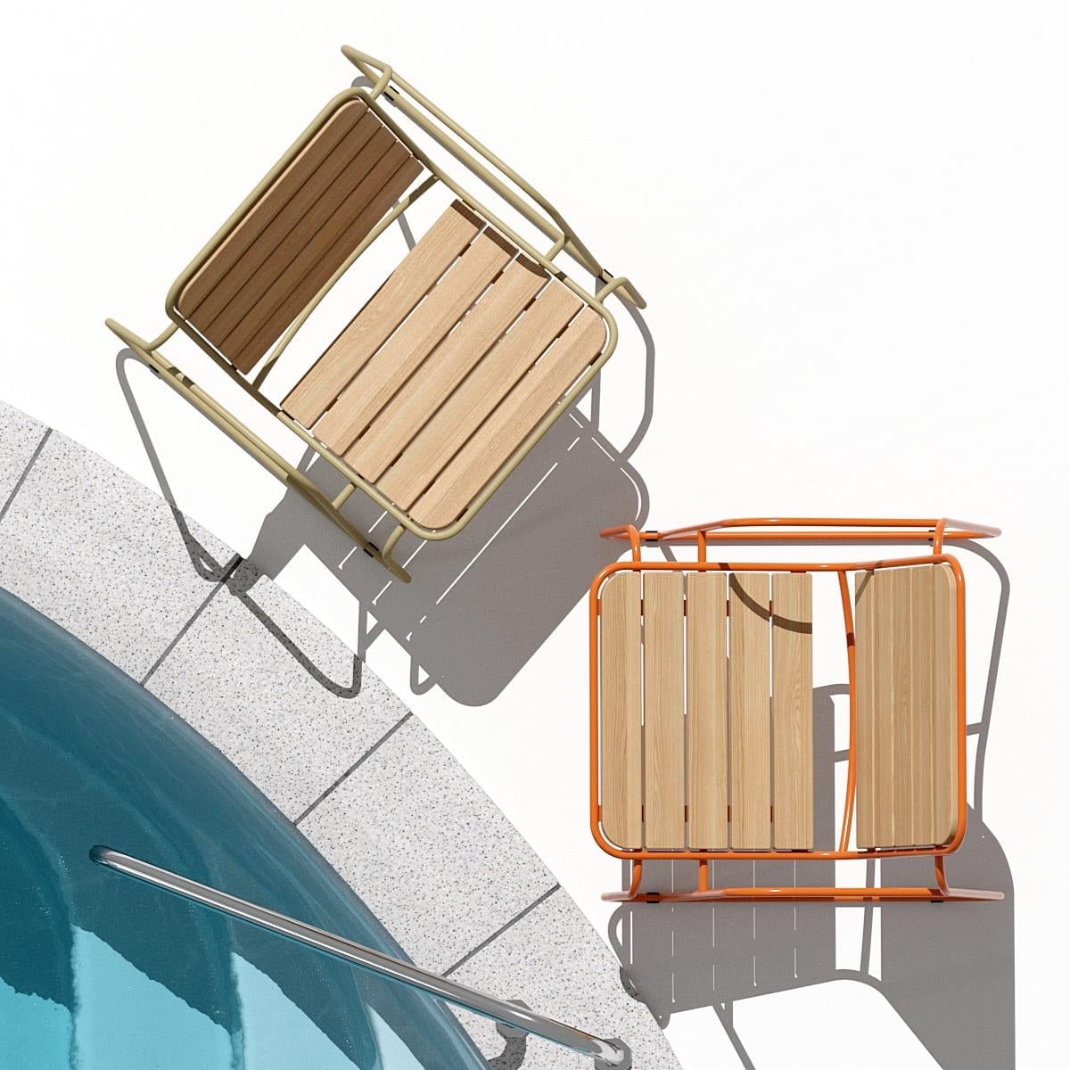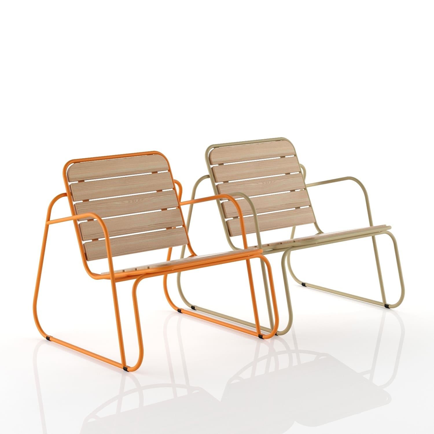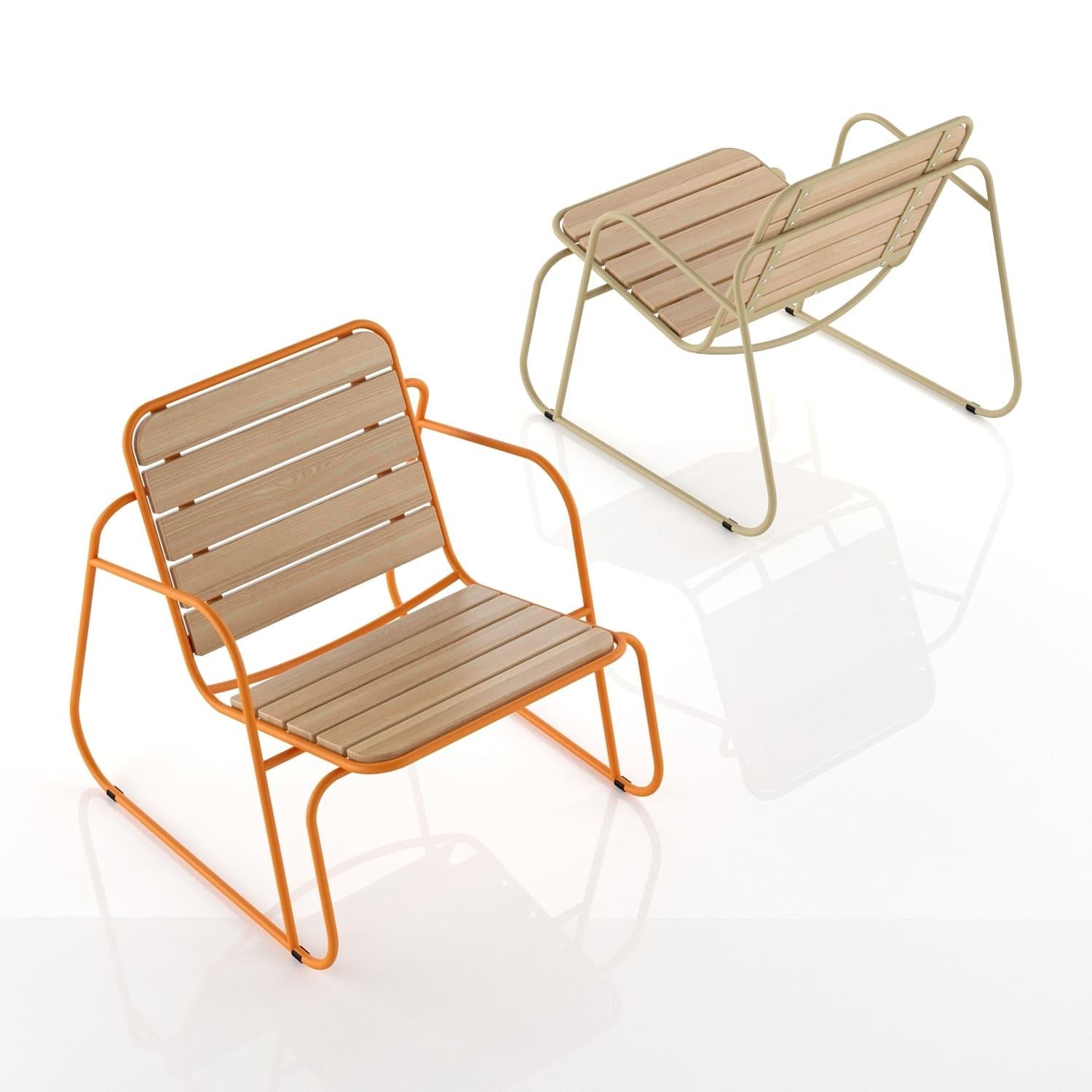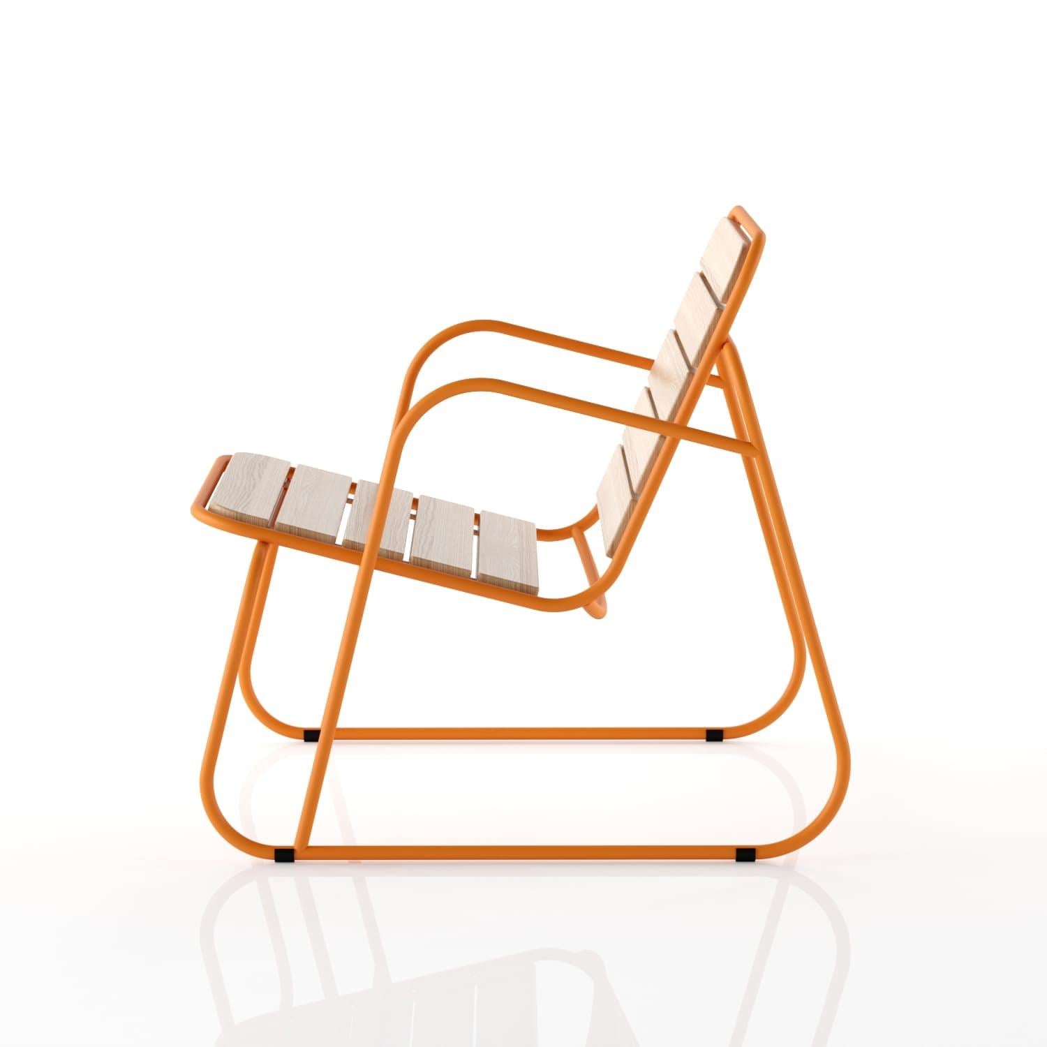 Новый дизайн продолжает исследование технологий сгиба стальной трубы, в сочетании с деревянными элементами. Плавные линии конструкции образуют надежную раму, к которой крепится сиденье и спинка из деревянных реек. Они обеспечивают баланс комфорта и эксплуатационной надежности при использовании на улице. Защищенное уличным маслом с твердым воском, такое сиденье позволяет стекать воде, а значит оно быстрее сохнет после дождя, что идеально подходит для отдыха под открытым небом.