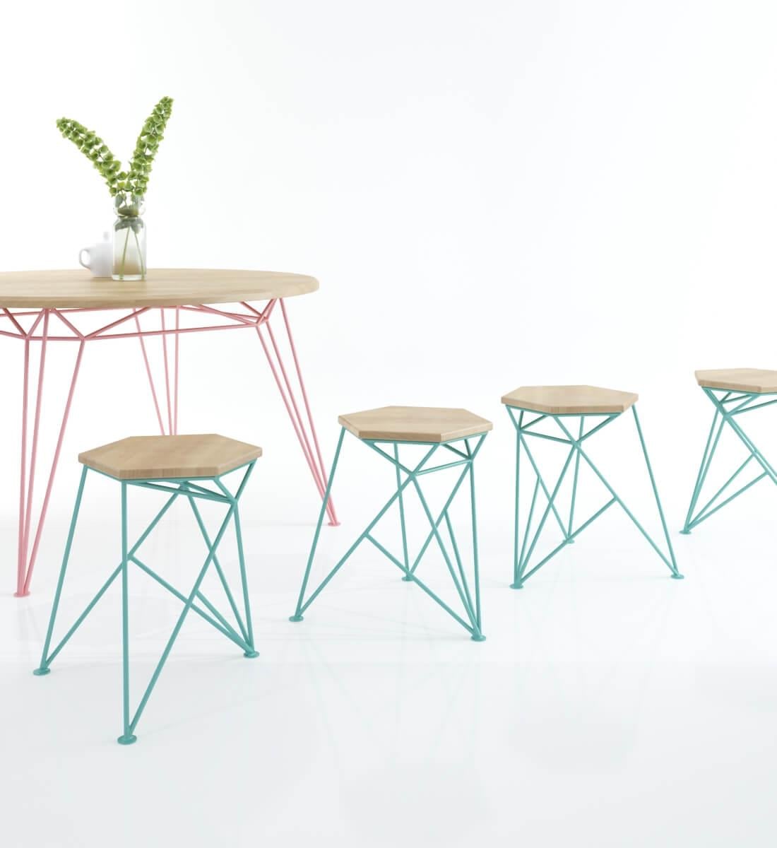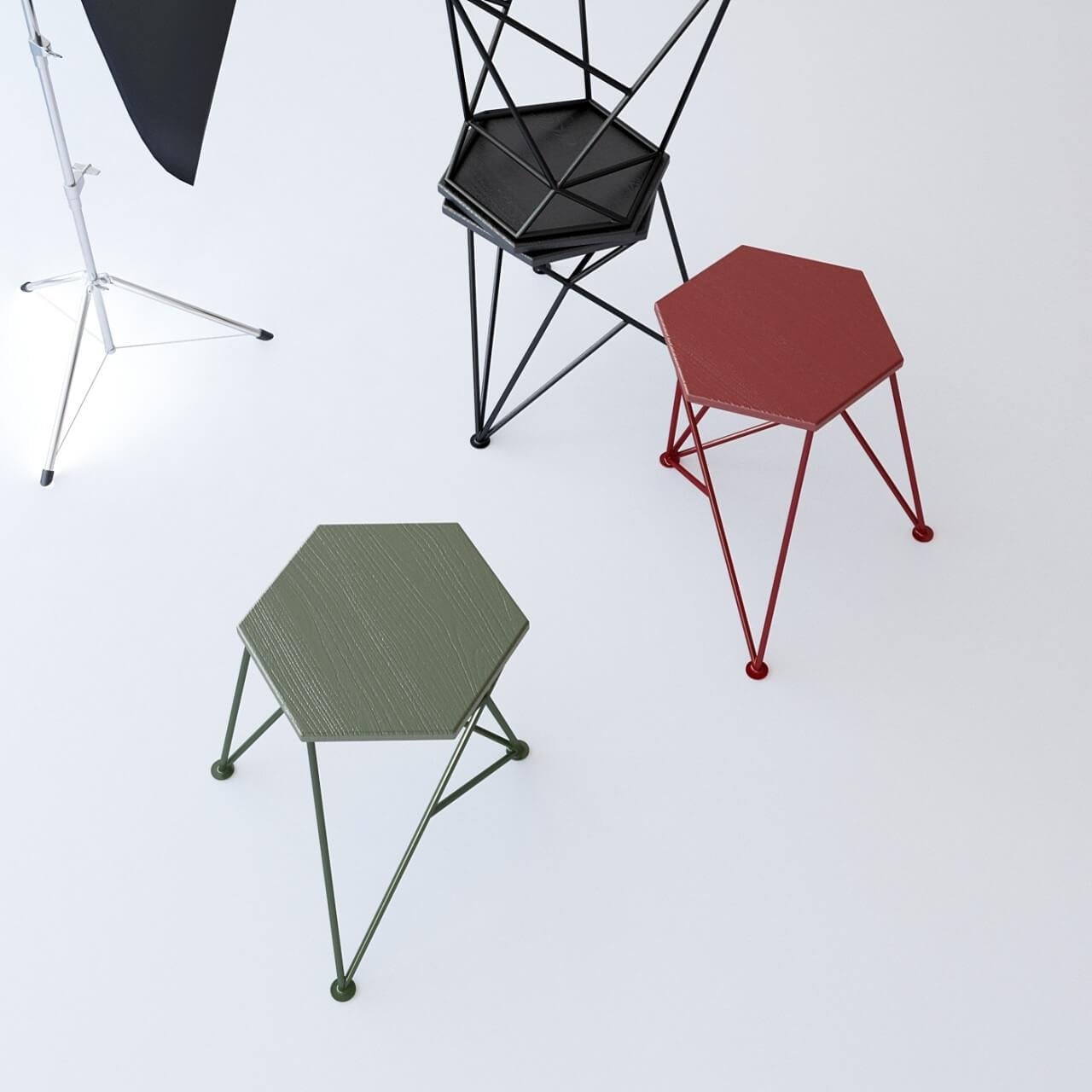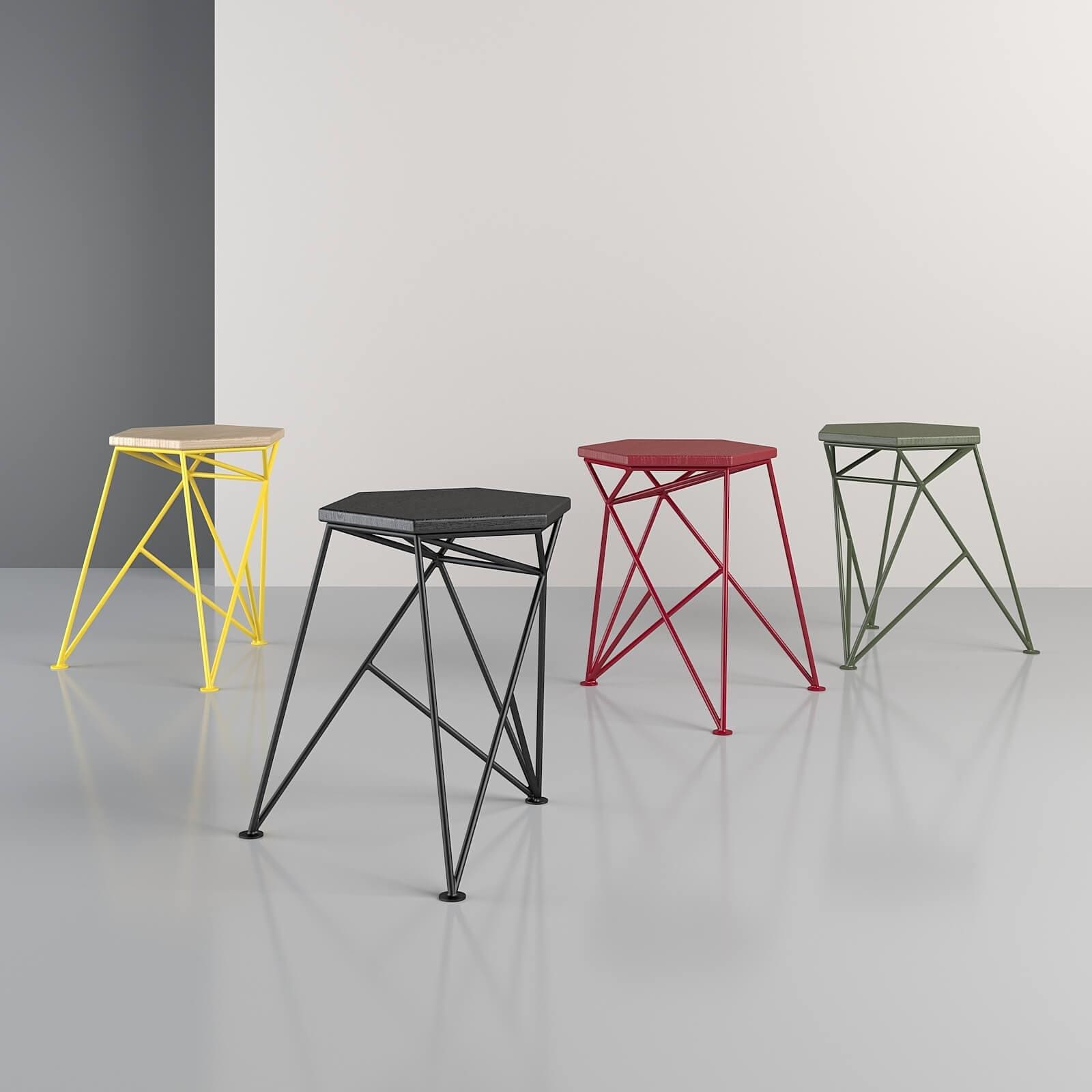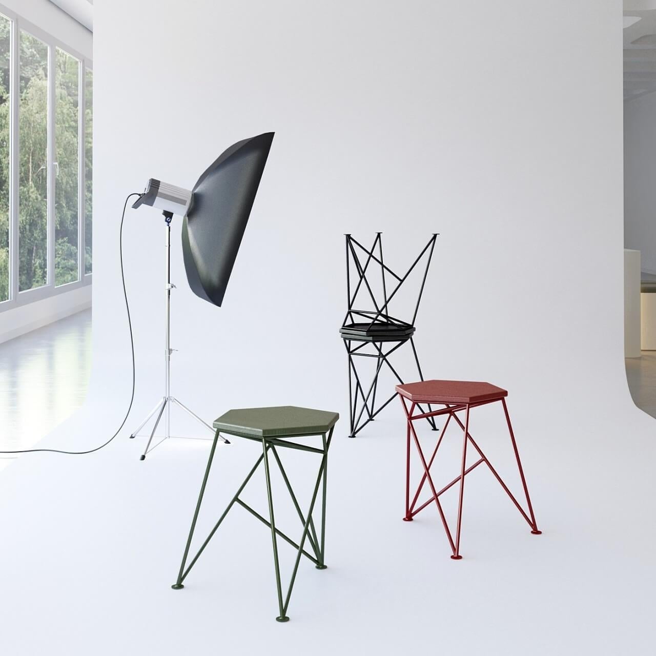 Spike был вдохновлен формой шипа с его колючим характером, который настойчиво заявляет о себе. Табурет имеет геометрический каркас и сиденье из шестиугольного ясеня. Двигаясь вокруг табурета, в определенном ракурсе он кажется плоским графическим рисунком, и вдруг геометрические линии снова парят в пространстве.