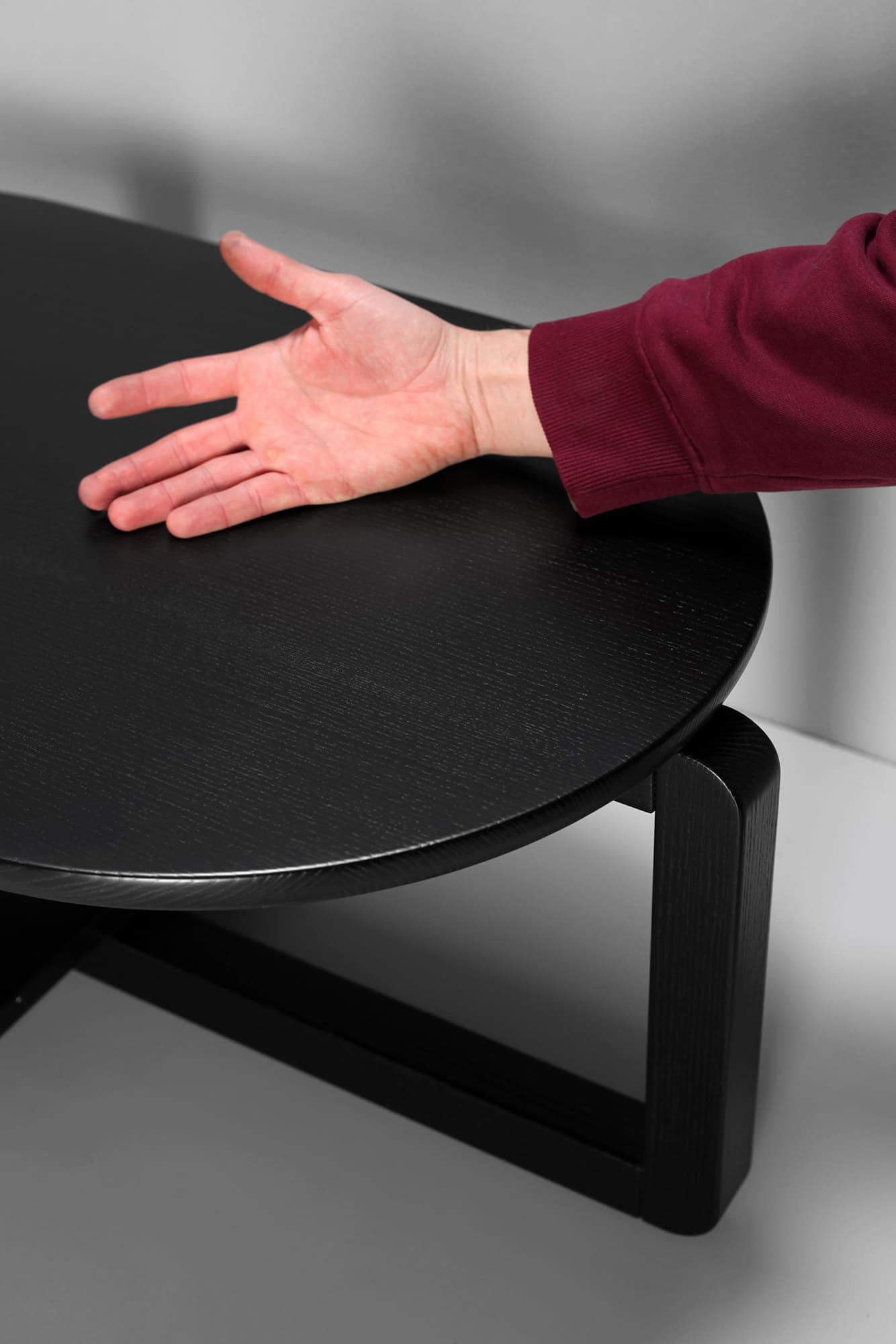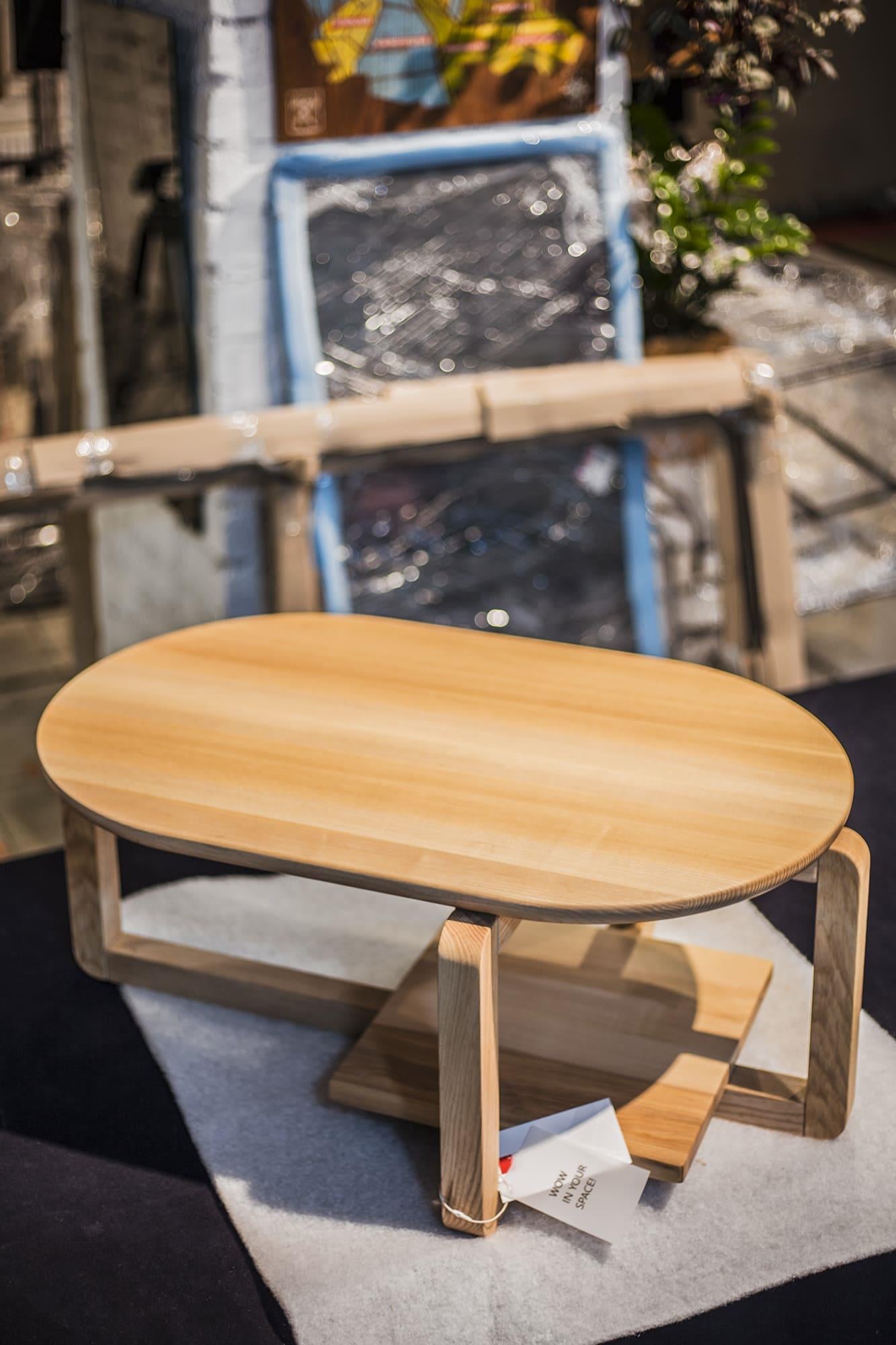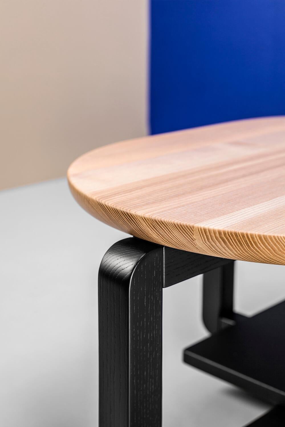Основание: массив ясеня (по запросу доступен дуб), накладки для защиты пола, латунный знак подлинности. Покрытие: масло с твёрдым воском OSMO (Германия); полиуретановая эмаль для дерева KEMICHAL (Италия). Поверхность: шелковисто-матовая. Уход: любую пролитую жидкость нужно сразу промокнуть салфетками. Затем удалить мыльным раствором и вытереть насухо впитывающей тканью.