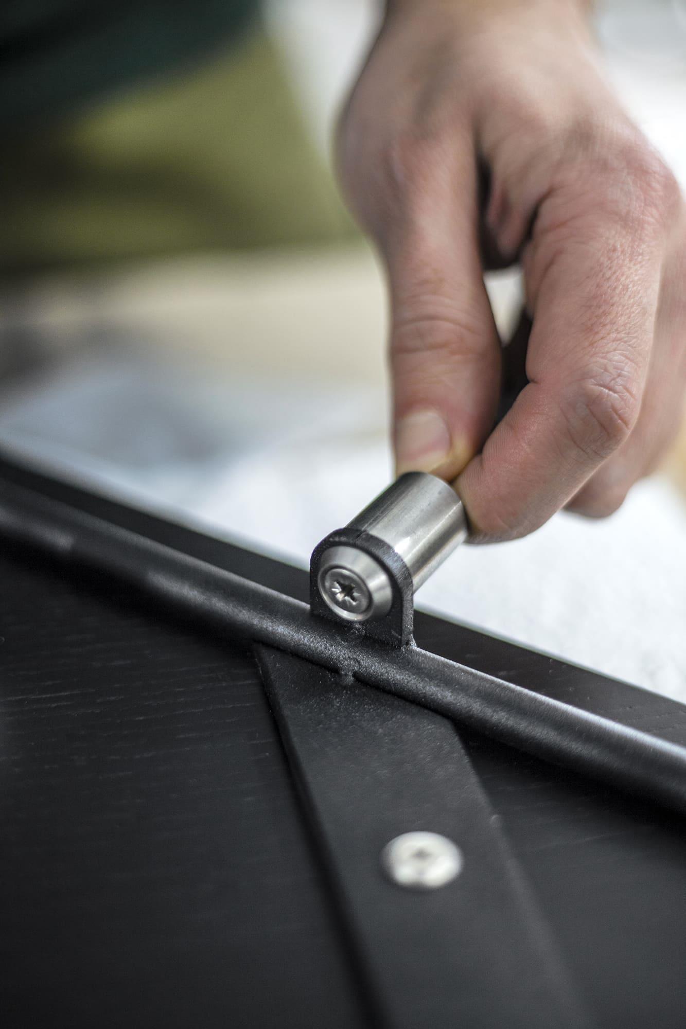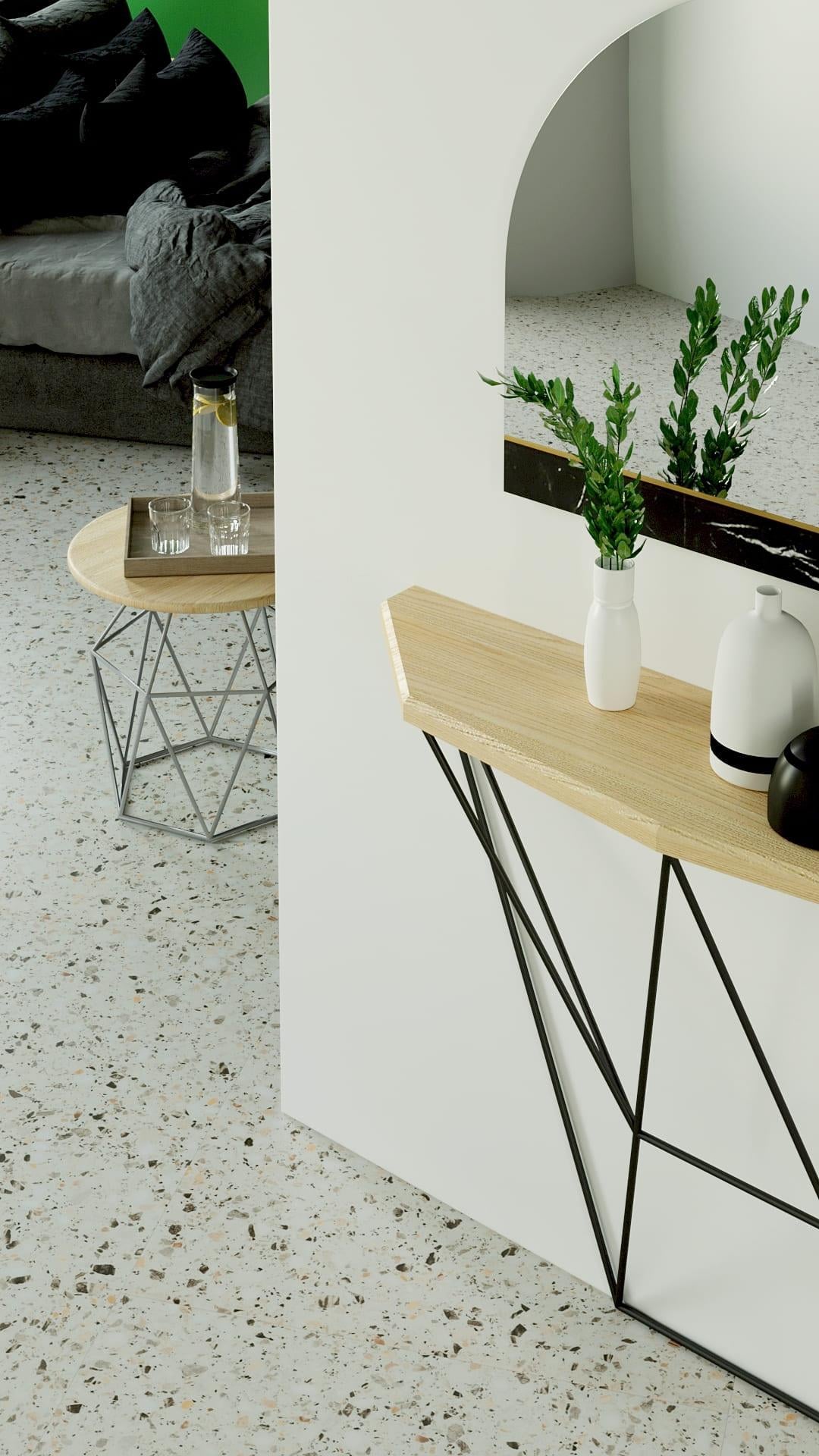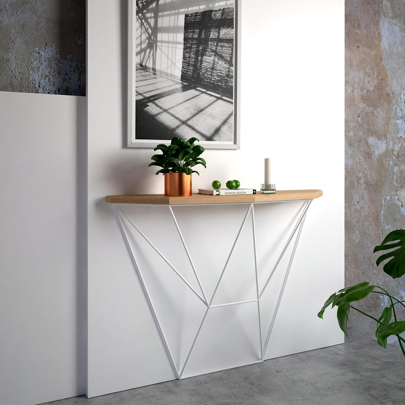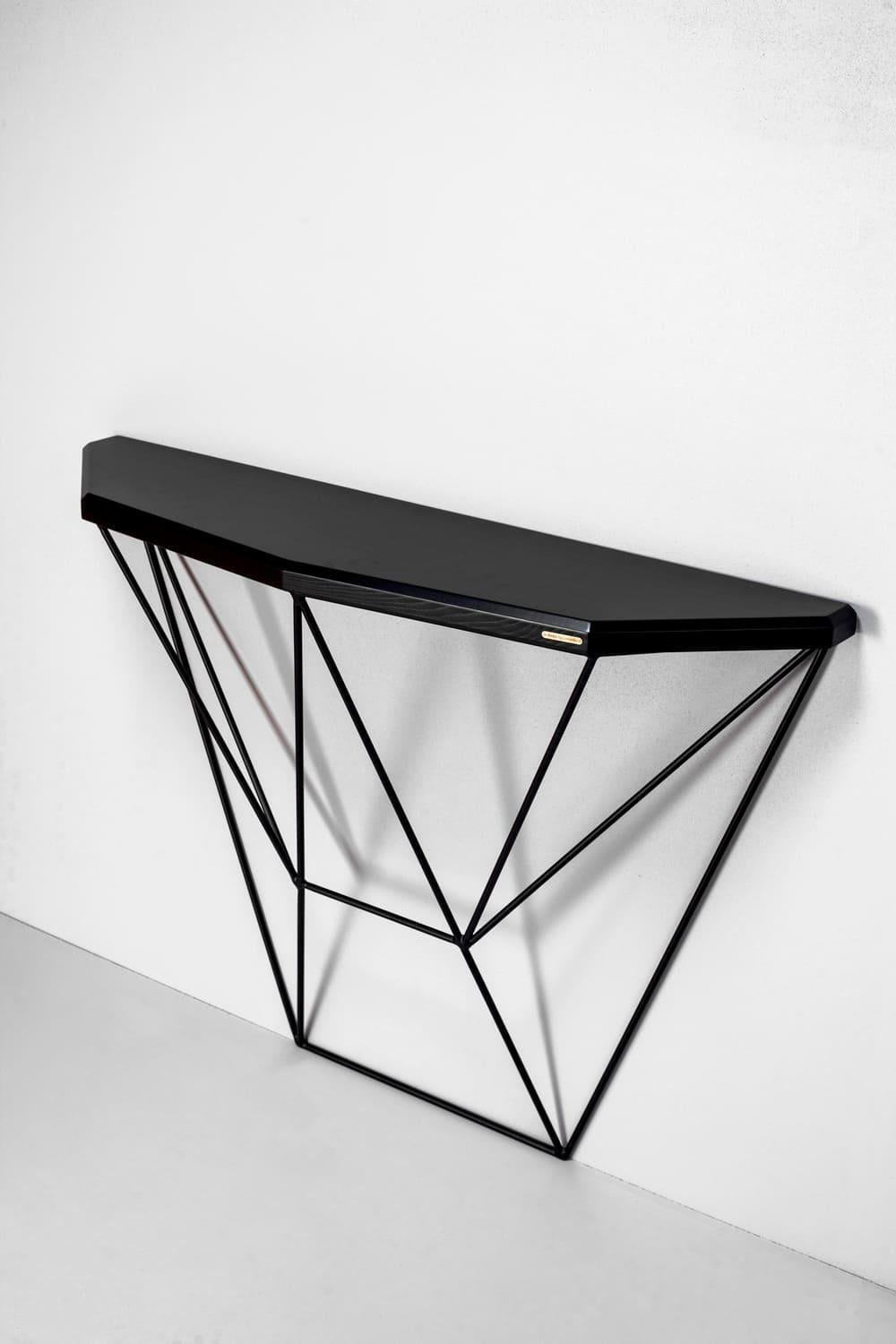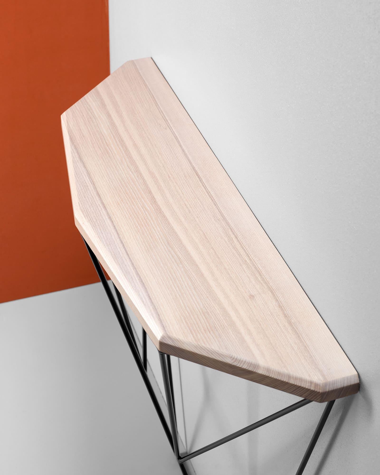 Конструкція консолі розкривається у значенні назви — від франц. lancette "маленький спис". Це загострена фігура, яка виконує декоративну функцію, паралельно, обрамляє і підкреслює силует предмета. Стільниця з натурального дерева також має рубані грані. Їхнє поєднання створює витончений композиційний баланс фактурної деревини та легких ліній металу. Привносячи динаміку в кожен простір. Лінійність і простота це відображення Lancette.