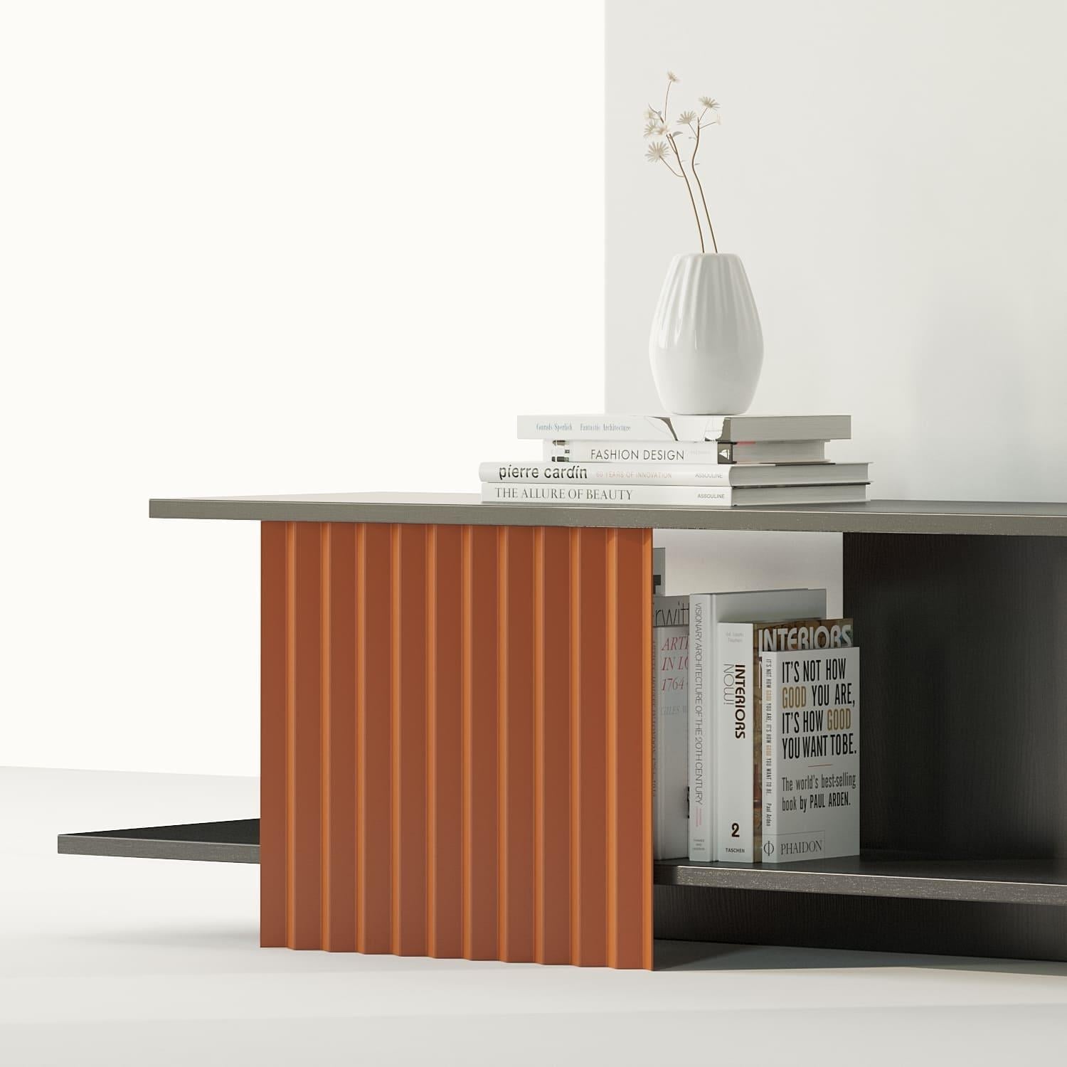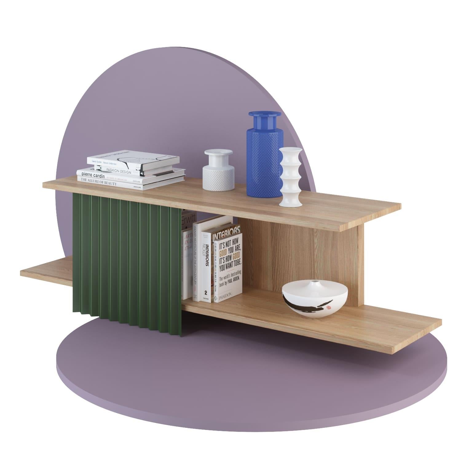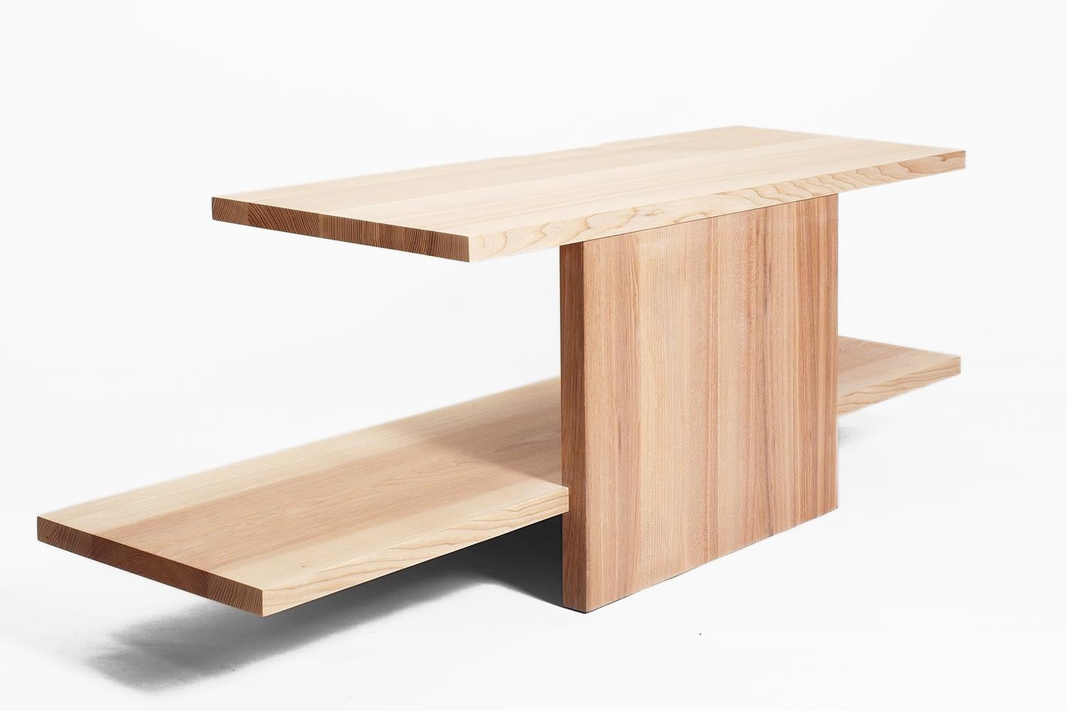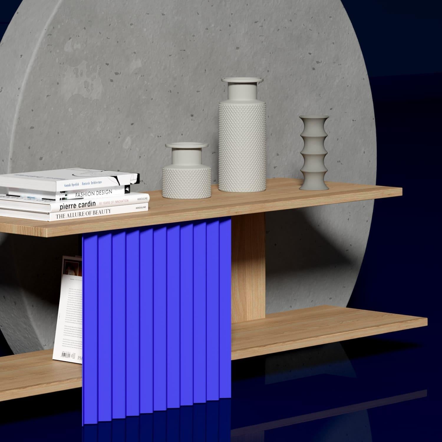 Тумба Leiwen — це функціональне місце зберігання з естетичним дизайном. Її зовнішній вигляд уособлює монолітність і природність дерев'яних поверхонь. Їхня симетрія створює стабільність, при цьому певні ракурси демонструють оманливу ілюзію левітації. Композиція елементів конструкції Leiwen складена на манер китайських ієрогліфів. Цьому вторить і акцентний фасад із металевого листа, складений гармонікою.