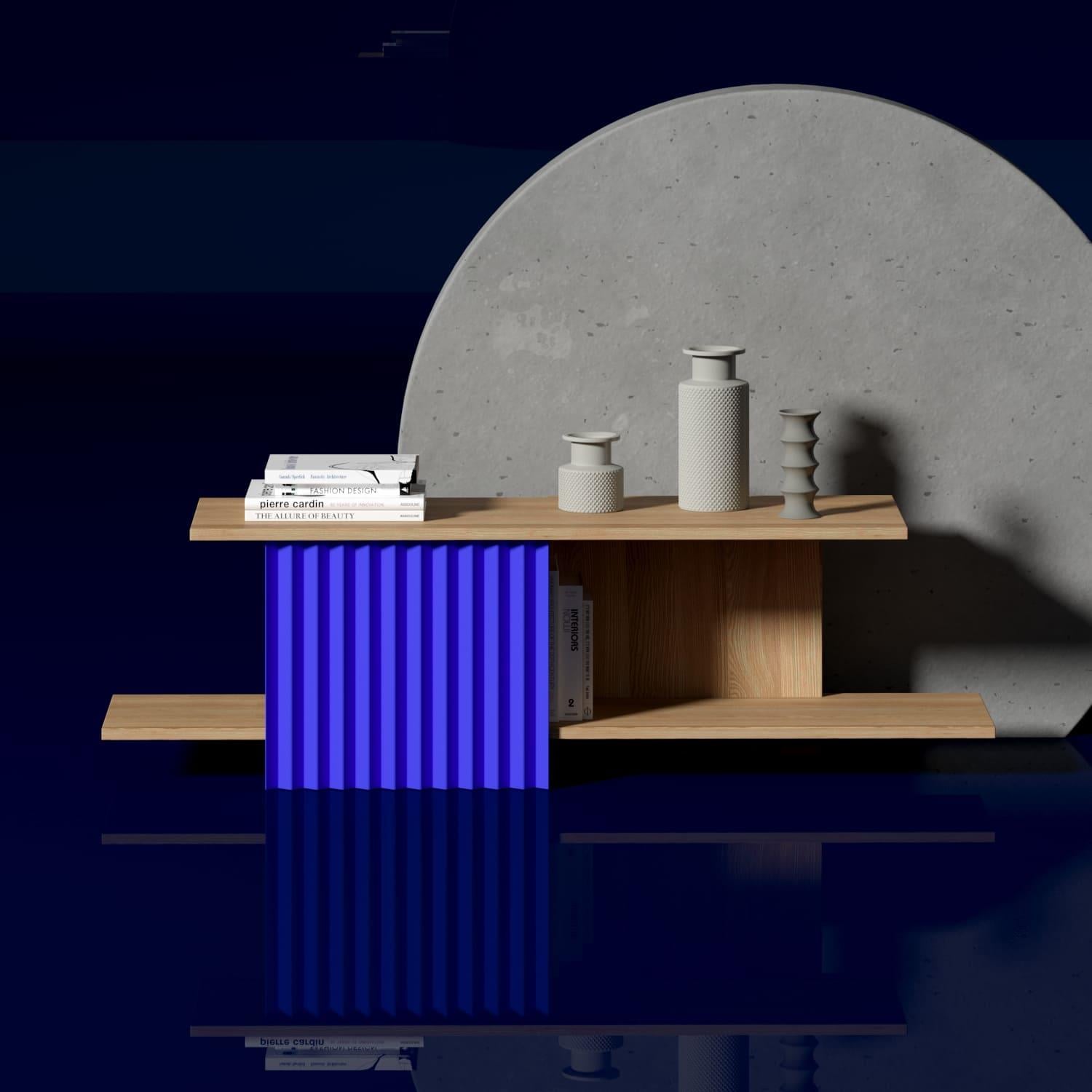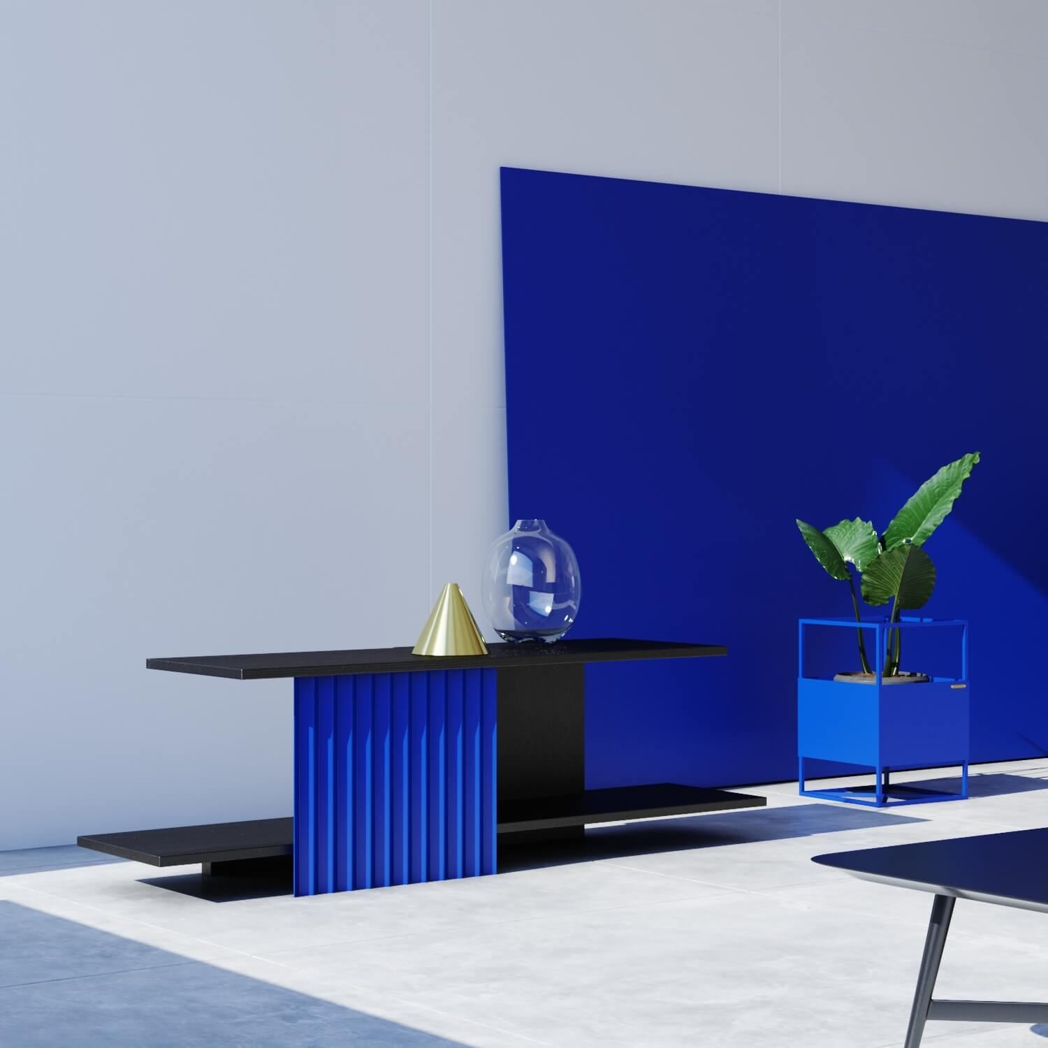 Досліджуючи мистецтво кам'яного віку, ми інтерпретували зигзагоподібний орнамент Стародавнього Китаю "візерунки грому" (лей вень). Створене зі сталі плісирування надає тумбі візуальної фактури та стійкості. Однак її основне призначення залишилося таким самим, як і у людей, що розписували неолітичну кераміку три тисячі років тому, — з бажання прикрашати поверхні, оточуючи себе красивими речами.