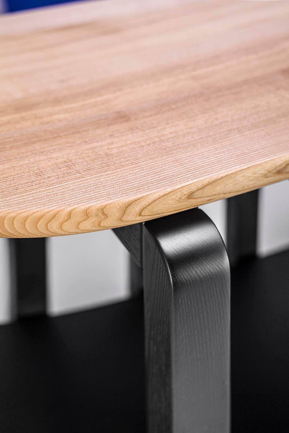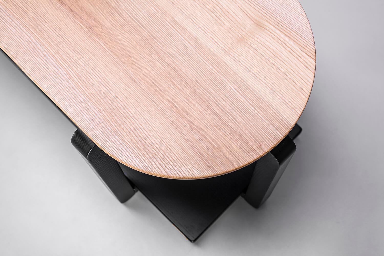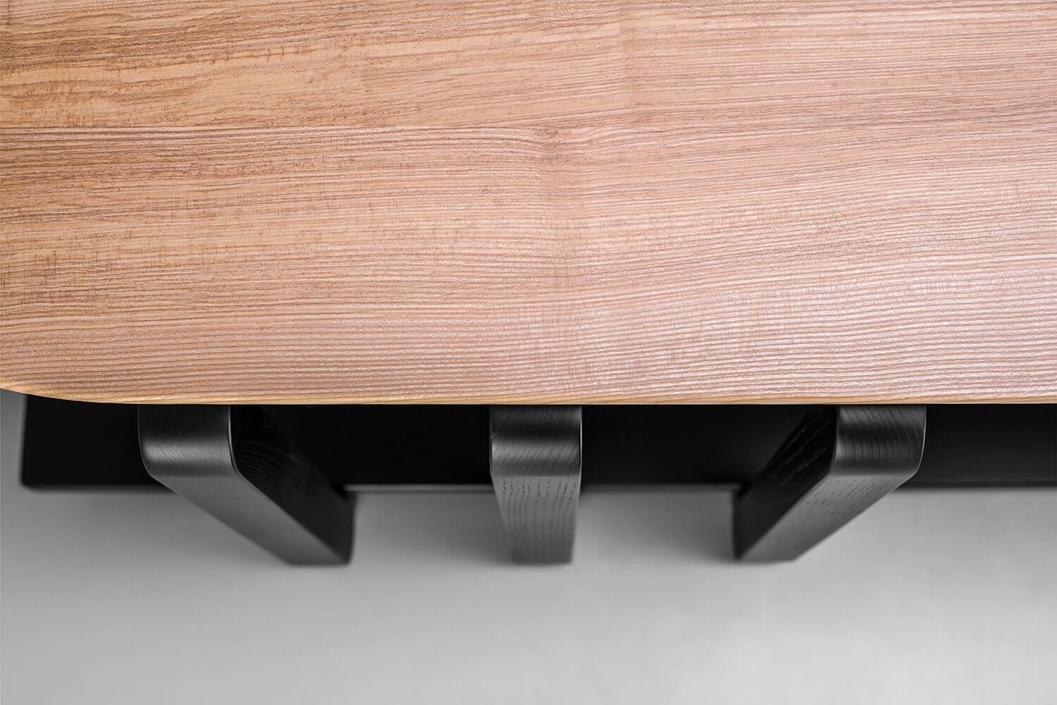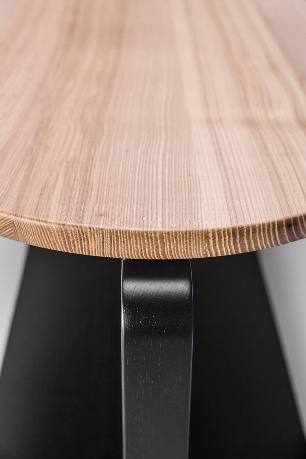 Основа: масив ясена (за запитом доступний дуб), накладки для захисту підлоги, латунний знак автентичності. Покриття: масло з твердим воском OSMO (Німеччина); поліуретанова емаль для дерева KEMICHAL (Італія). Поверхня: шовковисто-матова. Догляд: будь-яку пролиту рідину потрібно відразу промокнути серветками. Потім видалити мильним розчином і витерти насухо тканиною.
