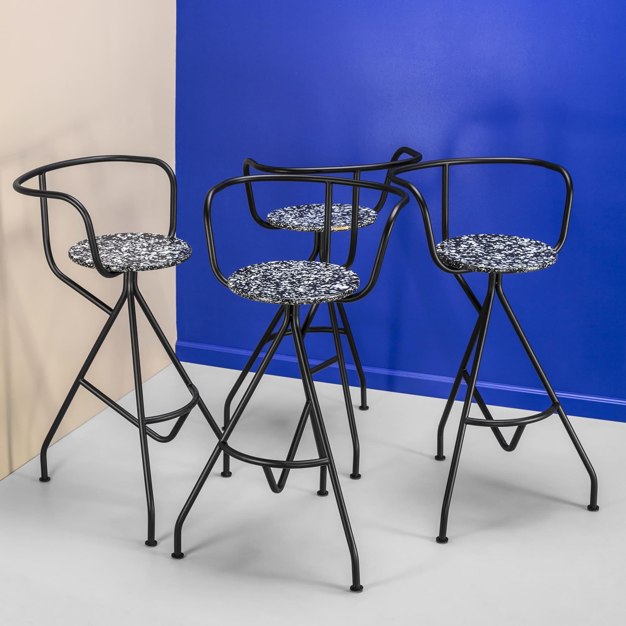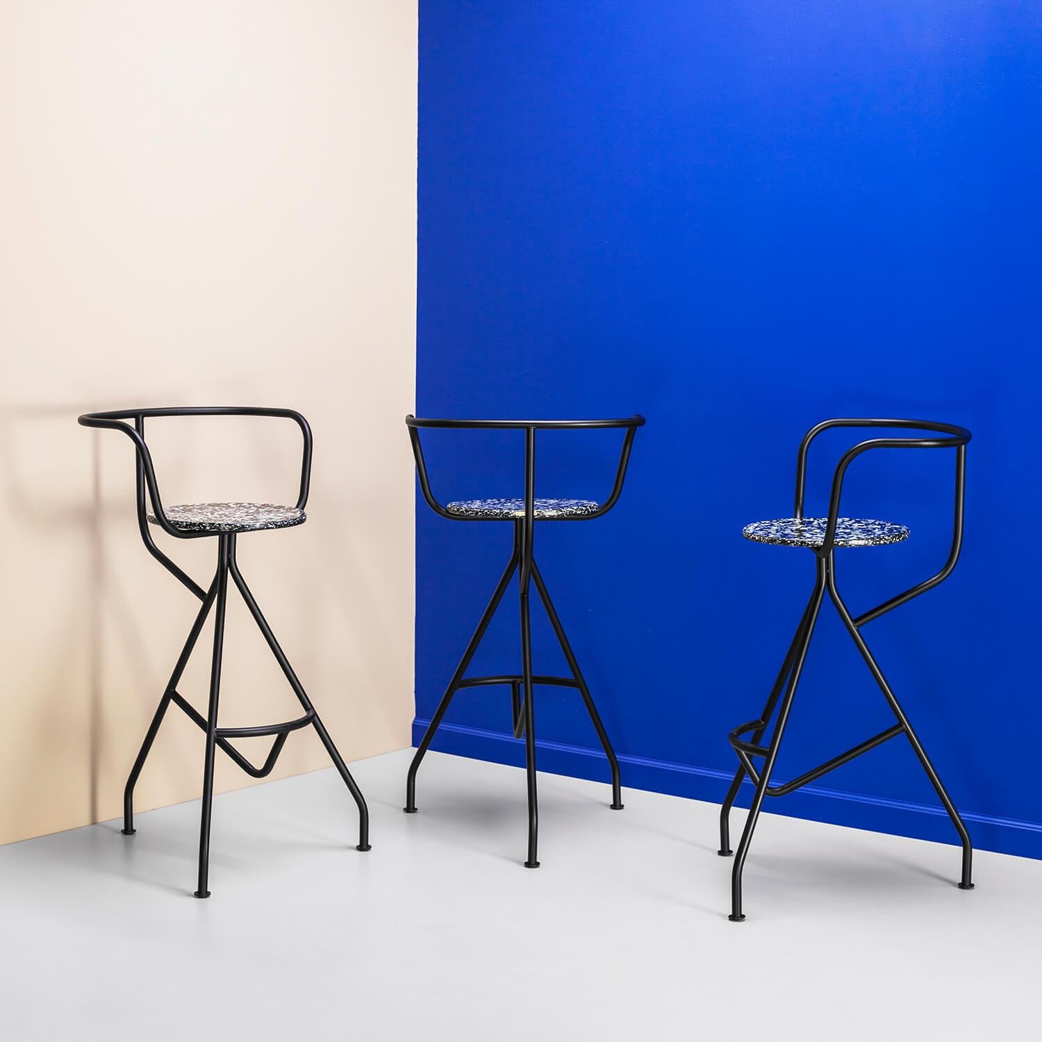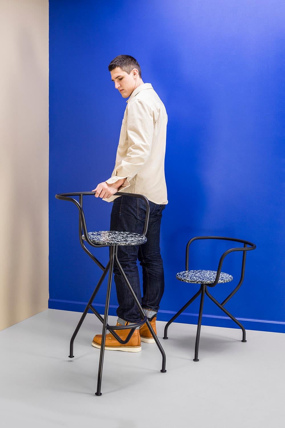Kohti має елегантний силует, з невеликим упором для спини, що плавно перетікає в підлокітники. Витончені лінії та плавні з'єднання каркасу виконані із сталевої труби з порошковим покриттям. Він адаптується до різних інтер'єрів, завдяки своїй привабливій простоті, універсальності та міцності. Для його створення ми задіяли весь конструкторський багаж та уважне ставлення до деталей, успадковані від реалізованих продуктів. Табурет висловлює мистецтво перетворення навколишніх предметів, завдяки сидінню з переробленої сировини. Запрошуючи до екологічного майбутнього, в якому цінуються нові, осмислені продукти, з вторинним використанням матеріалів, підтримуючи гармонію з навколишнім світом. Назва (від фінського «назустріч») метафорично обіграє діалог двох протилежних сторін про надмірне виробництво. Підводячи до думки про одночасний зустрічний рух: намагатися зберігати середовище, а й змінюватися разом із нею. Неможливо закупорити світ у незмінному стані. Майбутнє все одно настане. Тоді зробимо його чудовим!