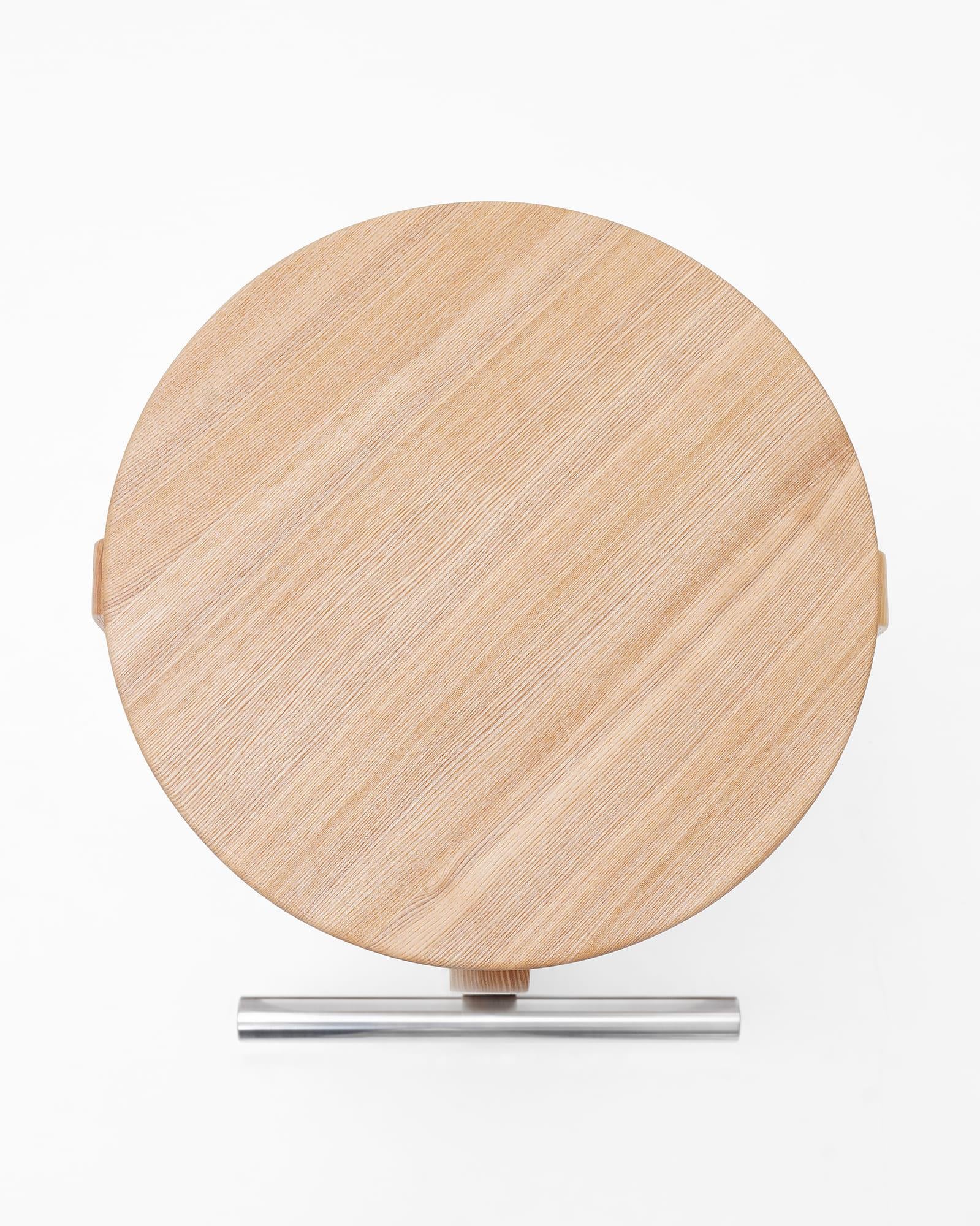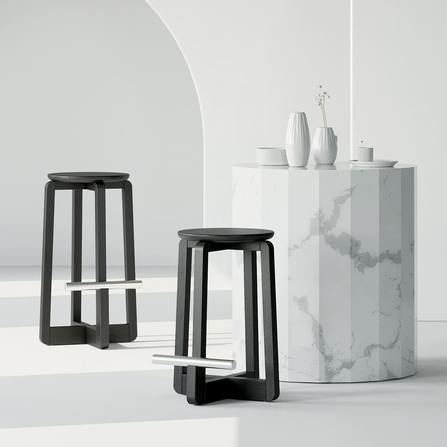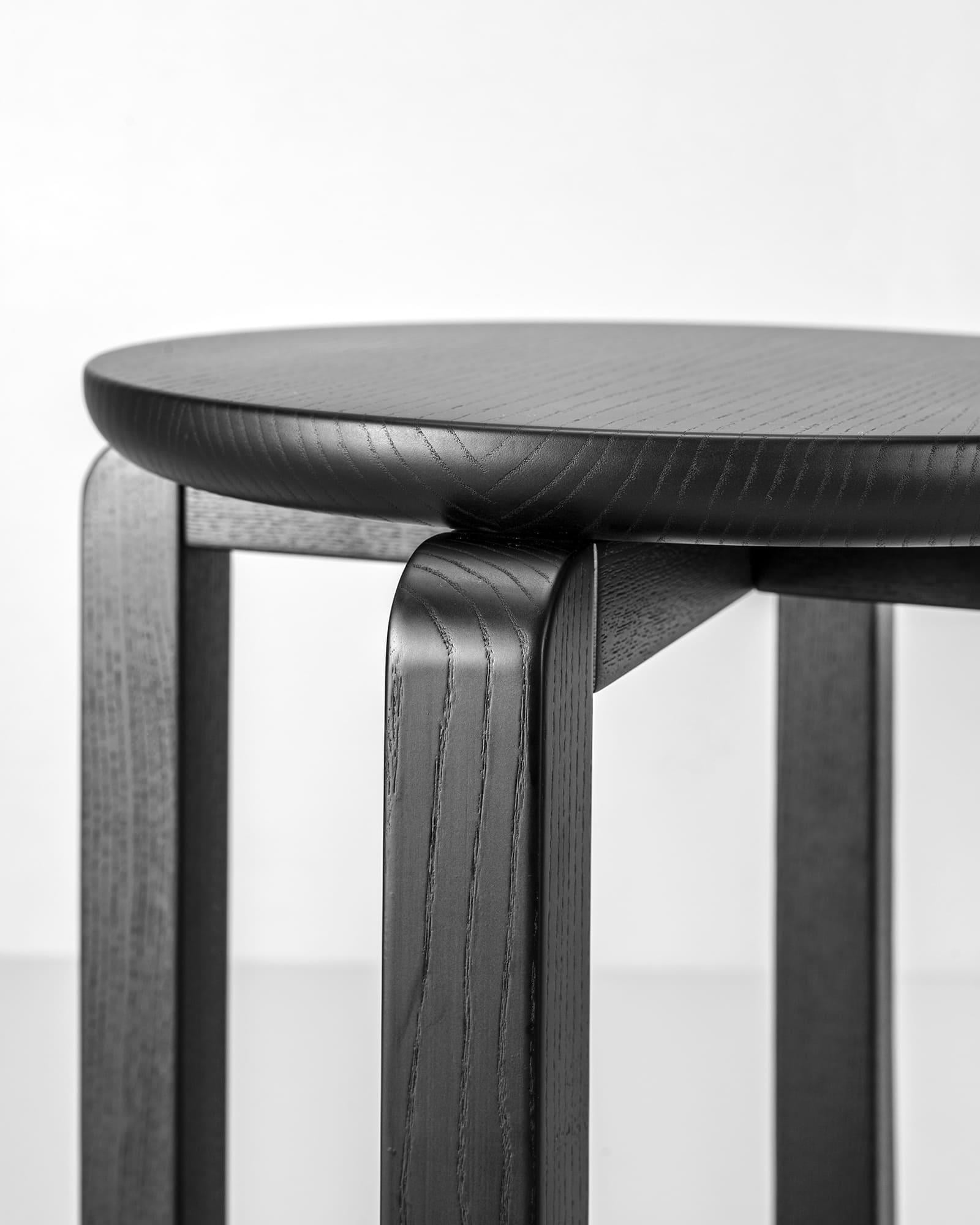 A high stool in solid ash wood that complements the Diox collection of the same name. It tells the story of a noble wood subjected to the hand of the craftsman. Its image is inspired by craftsmanship, the smell of wood shavings, and the precise movement of the carpenter's skilled hands on the product. Diox establishes a direct link between the chemistry of creating a product and its final perception.