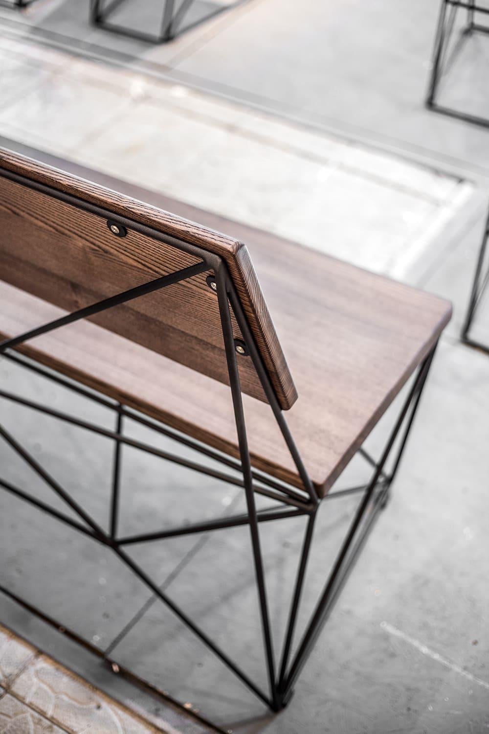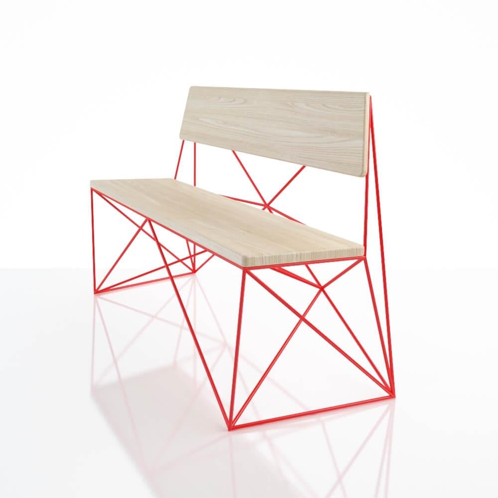 A modification of the Massless bench with a comfortable backrest. Its design is a revitalisation of a classic interior object in a new form, floating in space without any tangible support. The design of the bench is inspired by Scandinavian style: a traditional heavy wooden seat and a slim support structure. It epitomises the contrast of warm wood and cold metal.