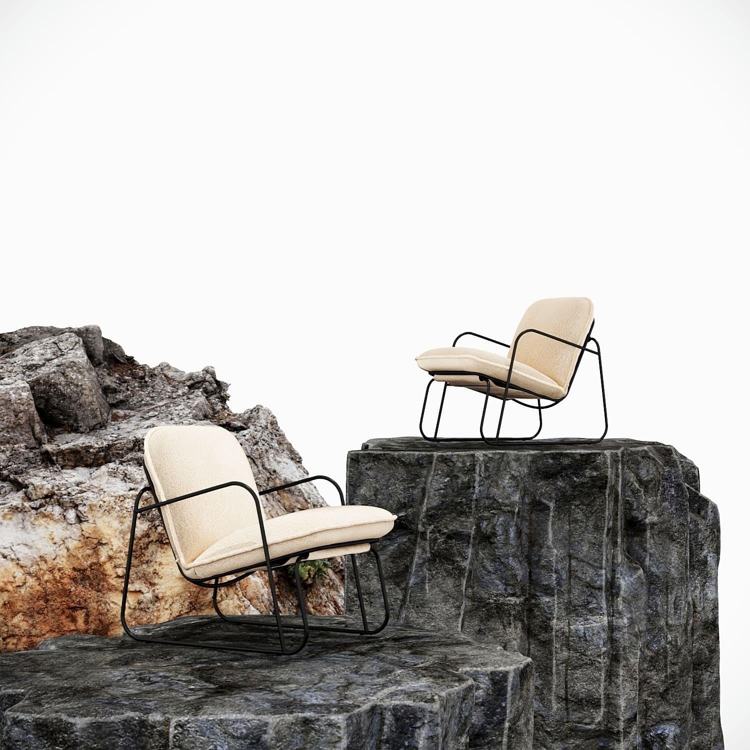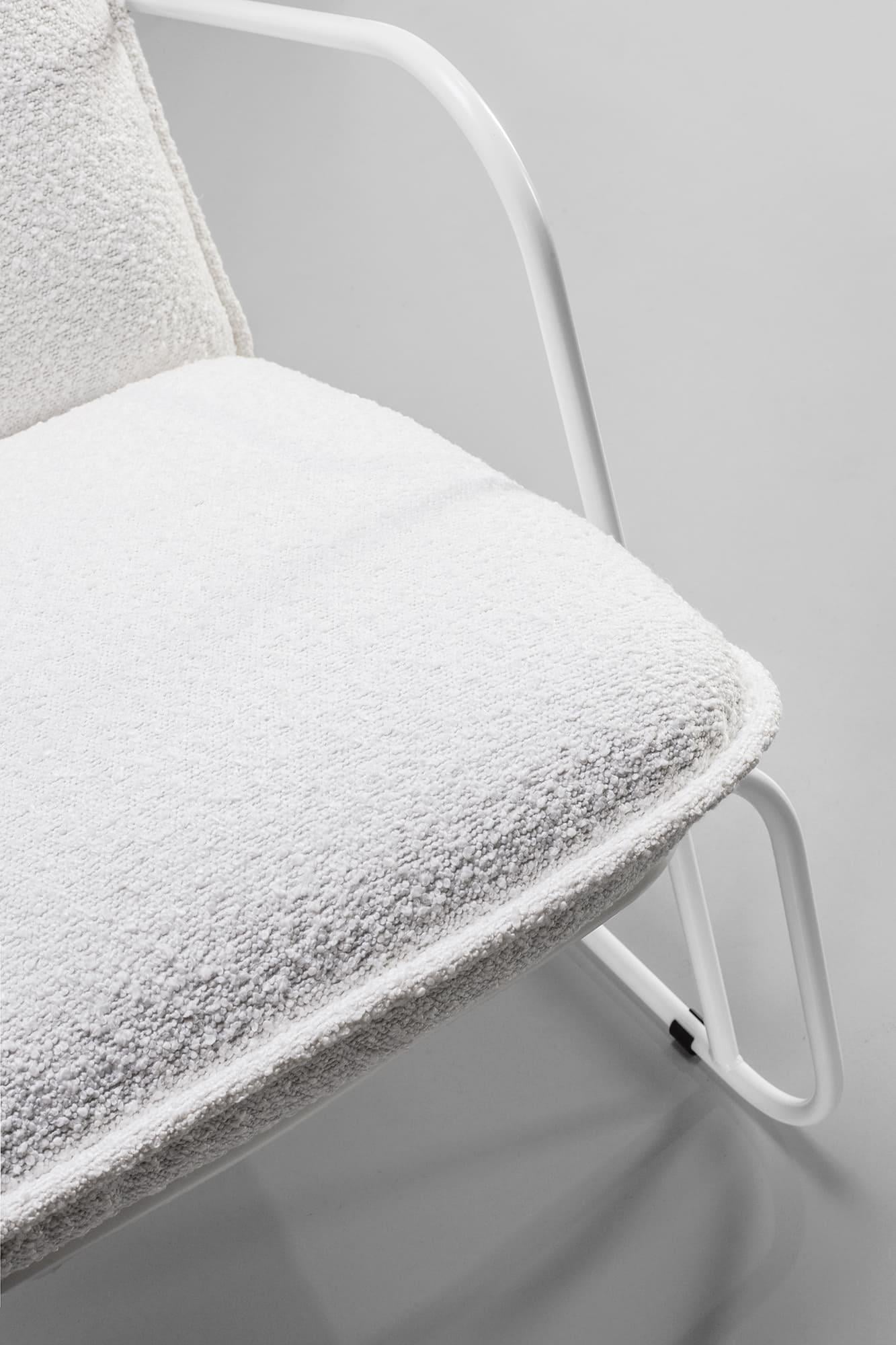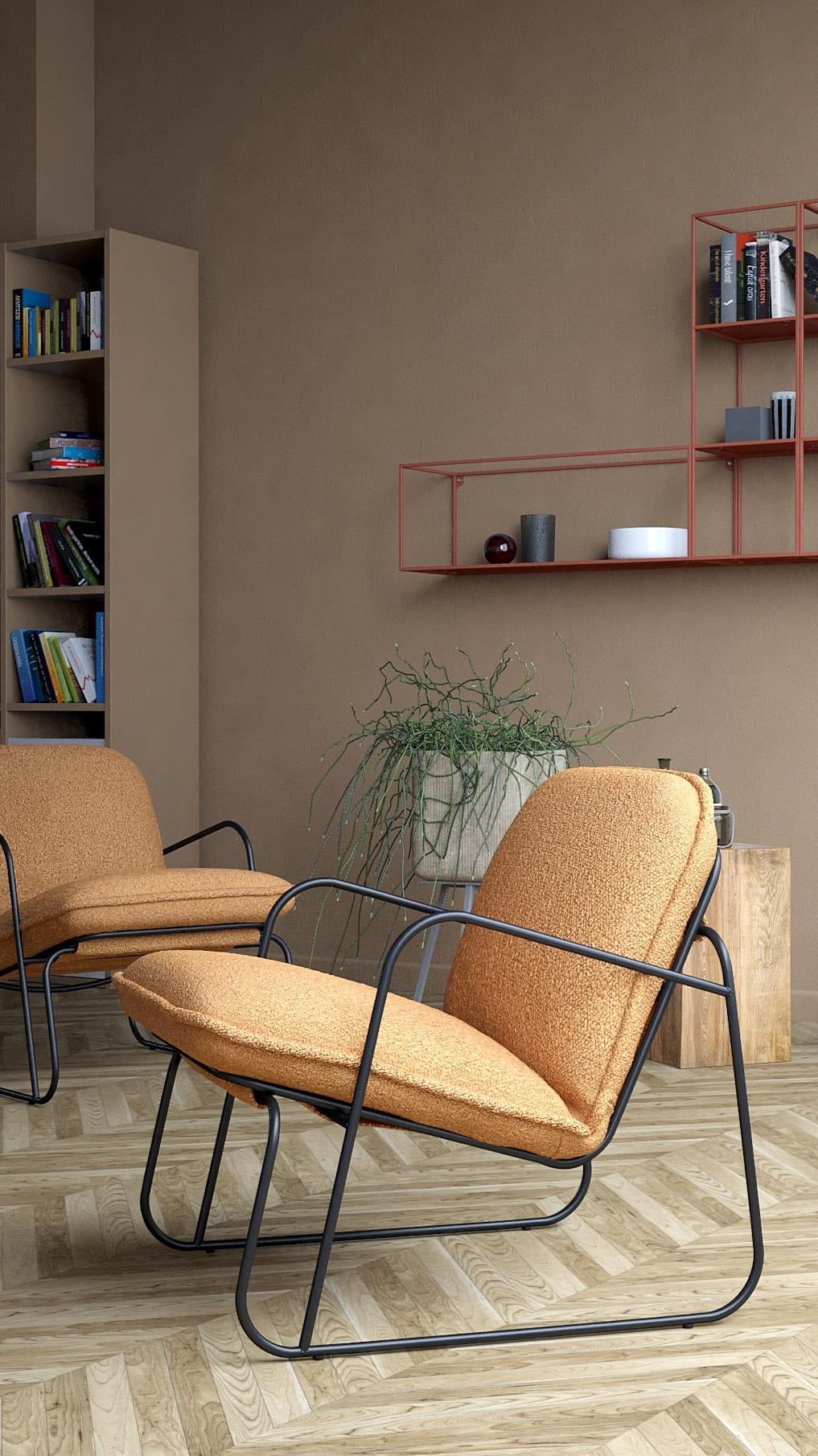 Updated version of the Monteur armchair with an outer cover made of textured bouclé fabric with a voluminous knotted surface. Interchangeable upholstered parts have made it possible to create a family of modular armchairs united by a friendly design. The armchair takes its name from the French word editor. Inspired by a person who thoughtfully cuts away the superfluous, leaving the very essence. Monteur has come to epitomise this craft, with its concise appearance and meticulous detailing. It is characterised by the rounded and harmonious shapes of the seat and backrest, set on a versatile steel frame. And the smooth cant line outlining the silhouette emphasises its clean image. The upholstered part has a removable outer cover with two separate sections for inner cushions. It is quickly attached to the frame with convenient Velcro fasteners. The filling consists of a combination of polyurethane foam, the main cushioning material, and felt padding for elasticity. This has given the seat extra comfort and stability for years of use. The armchair is ideal for laconic interiors in Scandinavian and eco-style. It can be used for home environments as well as more formal spaces and lounges. Monteur boucler is easy to personalise, thanks to the interior textile palette of 20 shades.