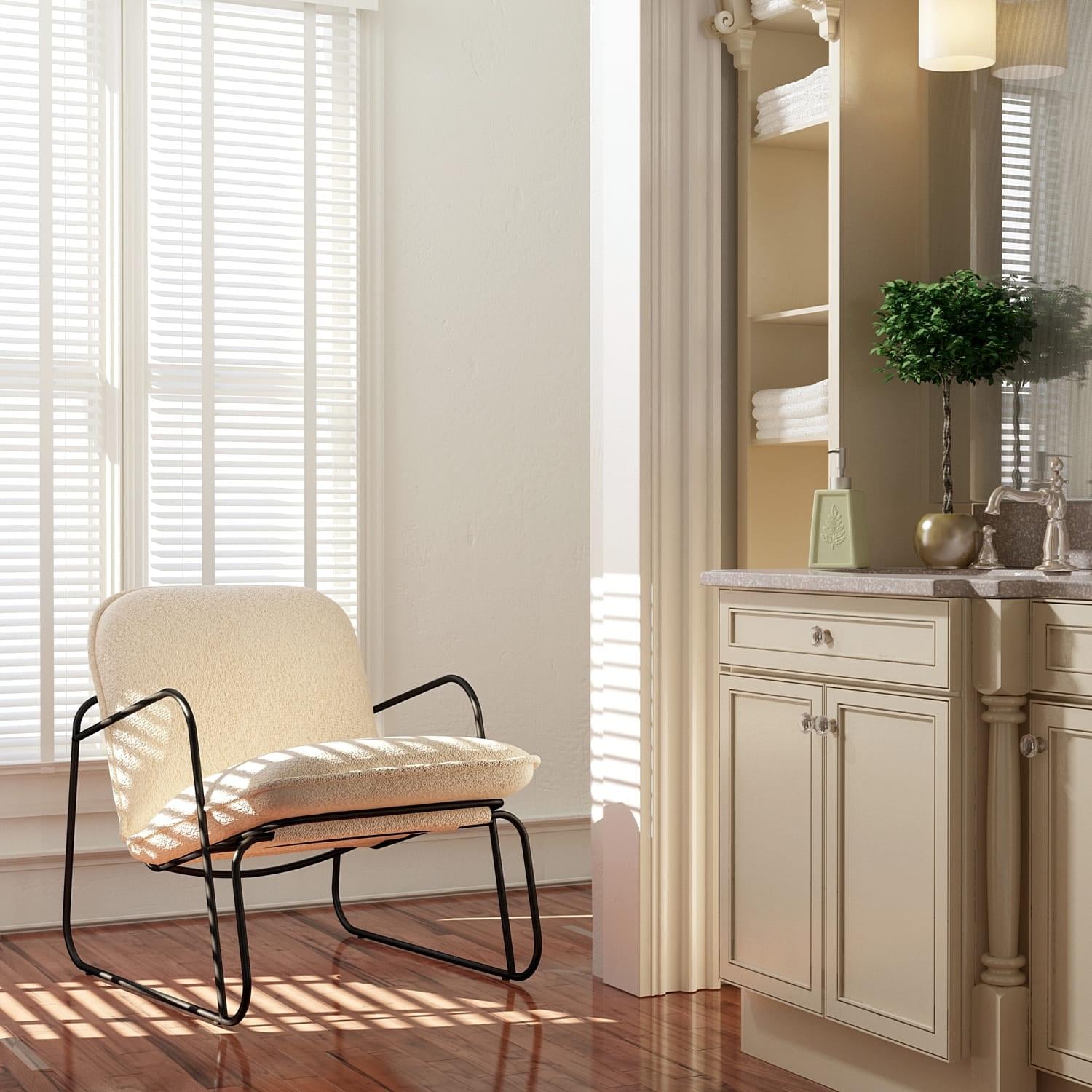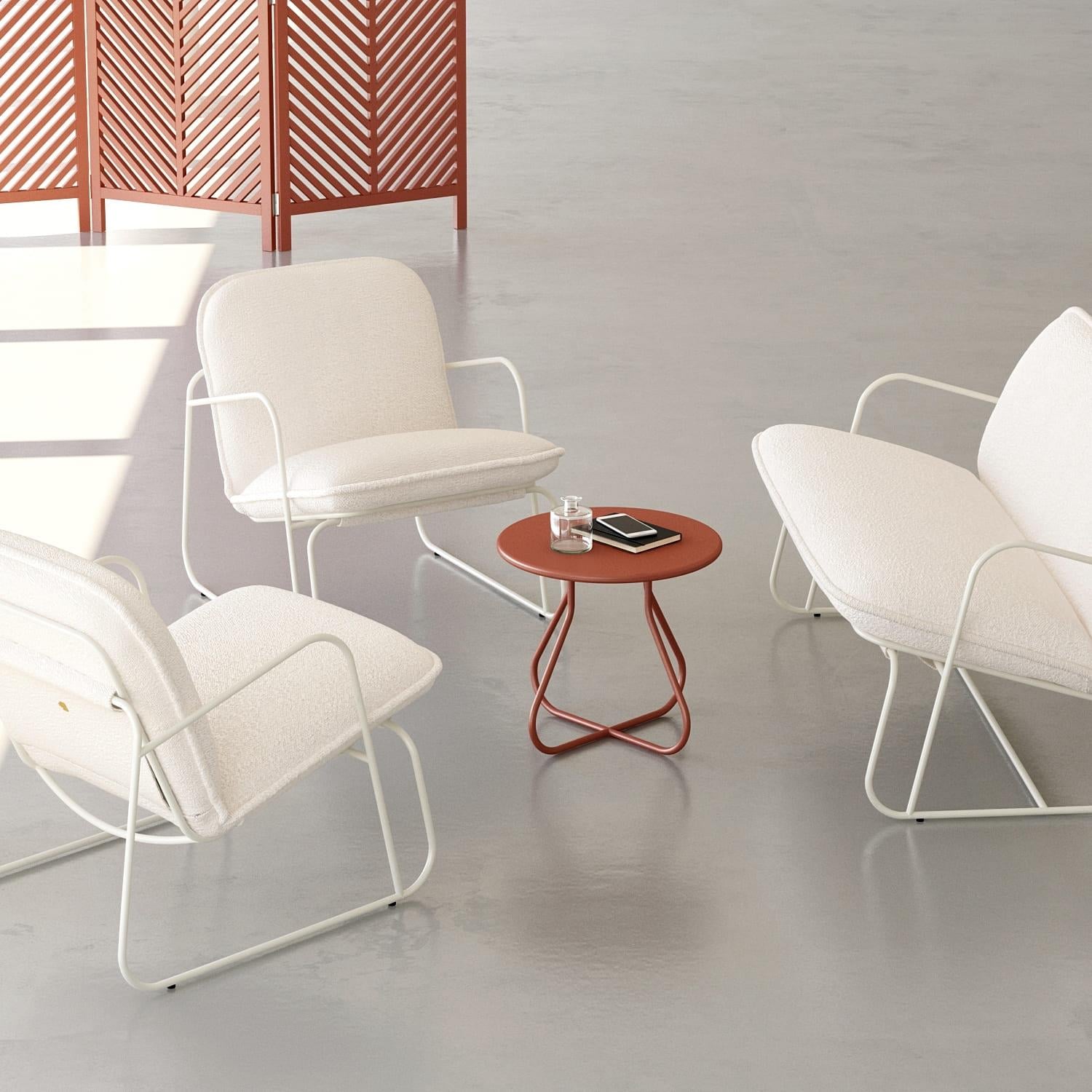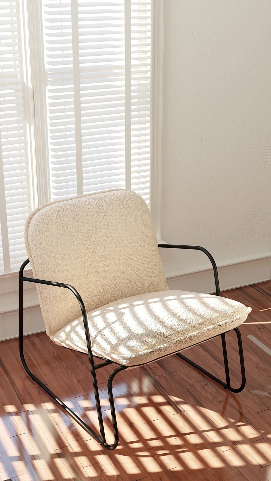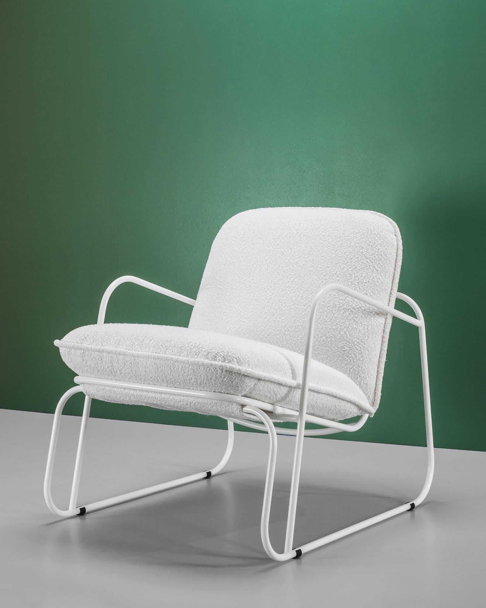 Updated version of the Monteur armchair with an outer cover made of textured bouclé fabric with a voluminous knotted surface. Interchangeable upholstered parts have made it possible to create a family of modular armchairs united by a friendly design. The armchair takes its name from the French word editor. Inspired by a person who thoughtfully cuts away the superfluous, leaving the very essence. Monteur has come to epitomise this craft, with its concise appearance and meticulous detailing. It is characterised by the rounded and harmonious shapes of the seat and backrest, set on a versatile steel frame. And the smooth cant line outlining the silhouette emphasises its clean image. The upholstered part has a removable outer cover with two separate sections for inner cushions. It is quickly attached to the frame with convenient Velcro fasteners. The filling consists of a combination of polyurethane foam, the main cushioning material, and felt padding for elasticity. This has given the seat extra comfort and stability for years of use. The armchair is ideal for laconic interiors in Scandinavian and eco-style. It can be used for home environments as well as more formal spaces and lounges. Monteur boucler is easy to personalise, thanks to the interior textile palette of 20 shades.