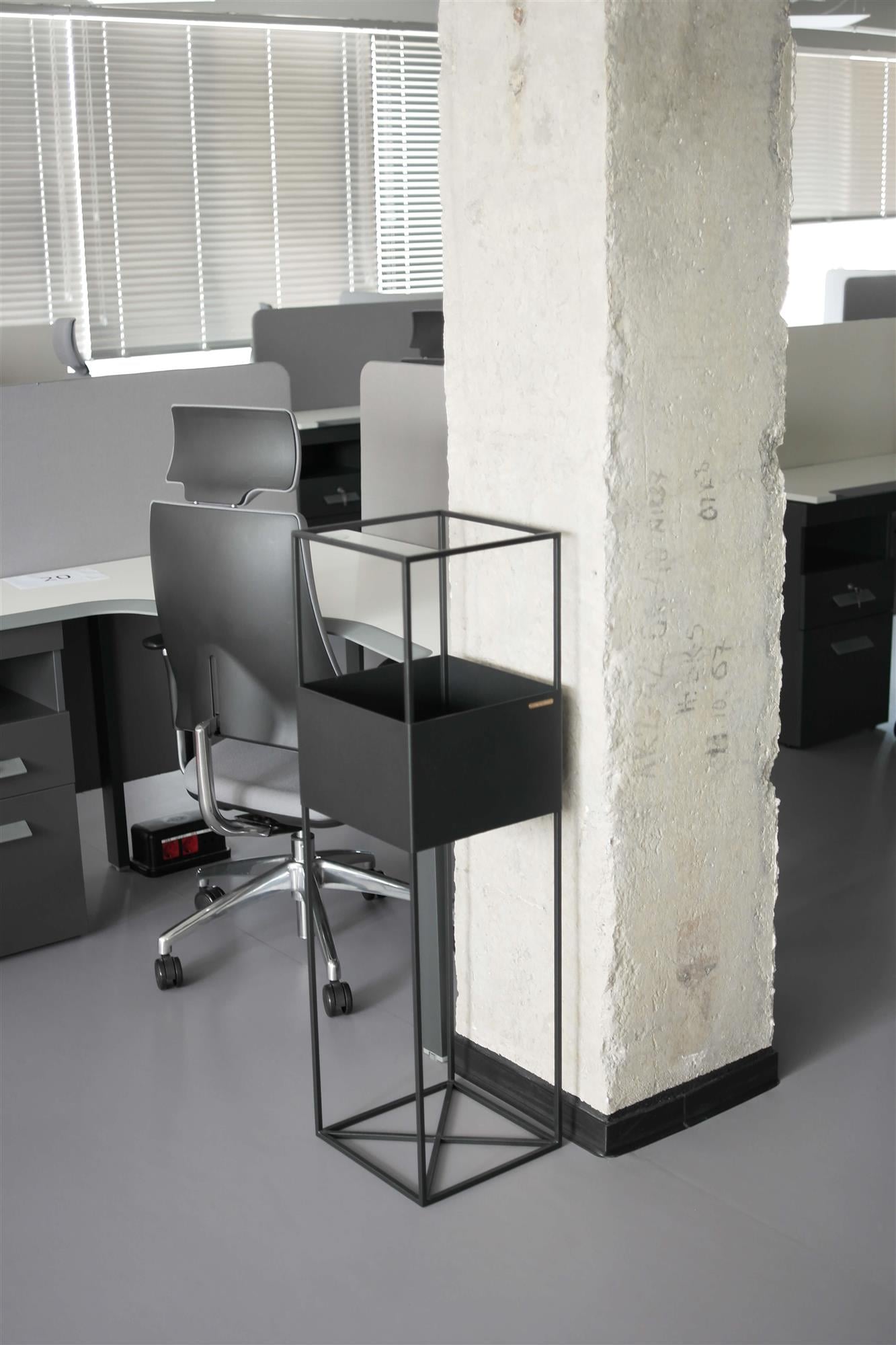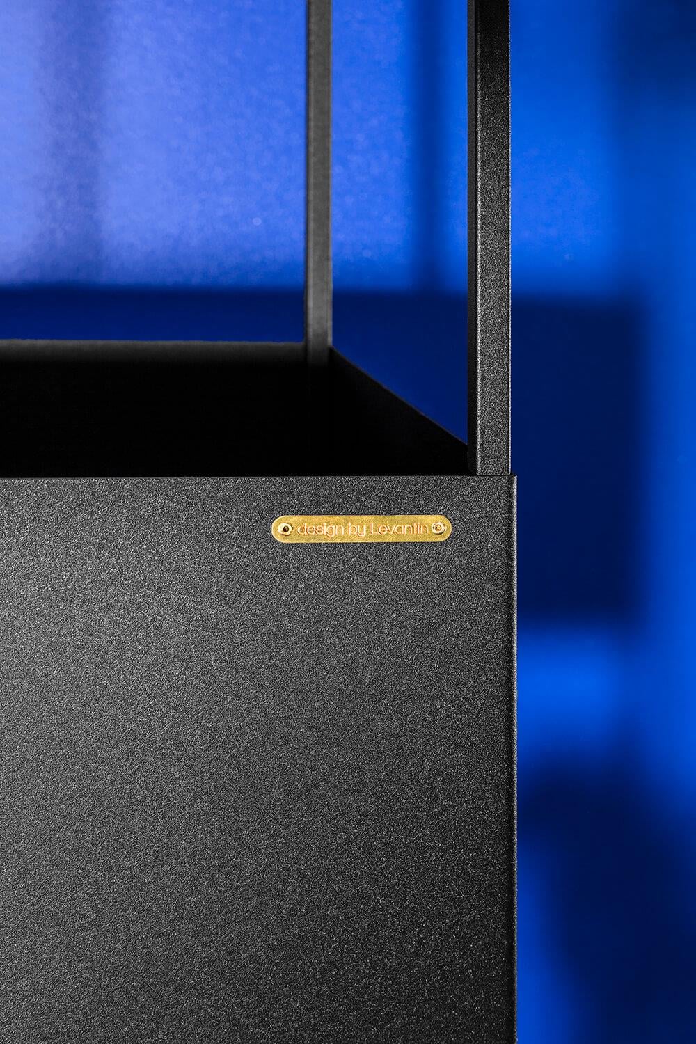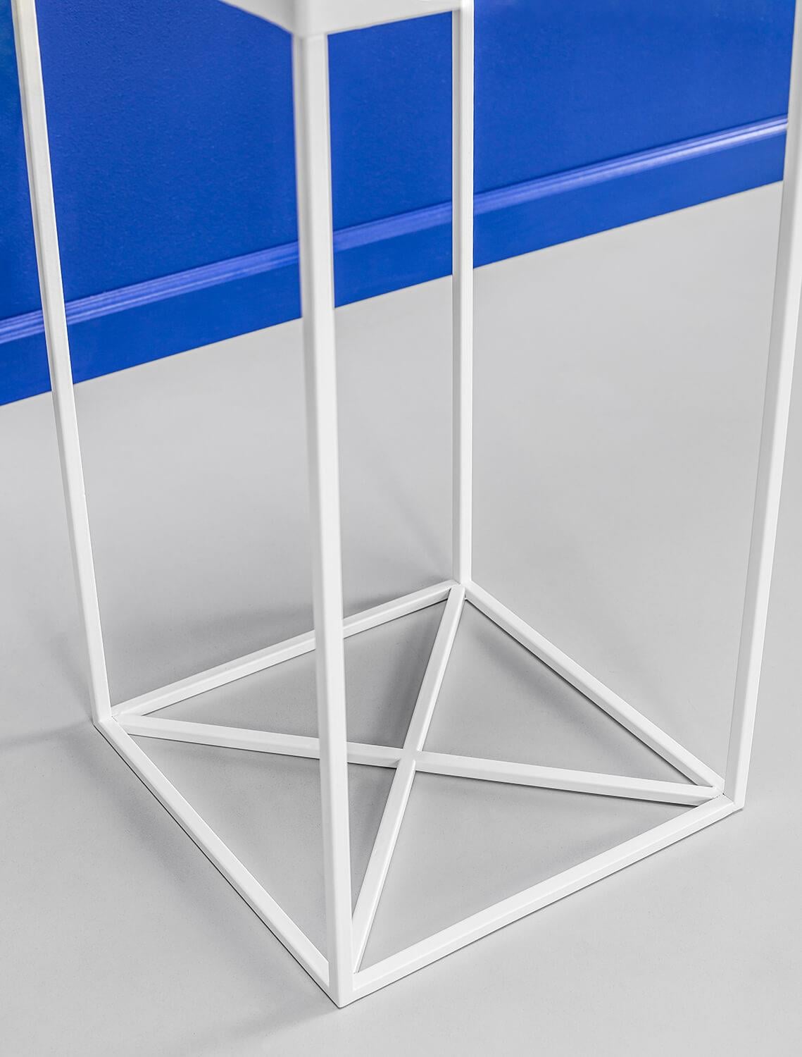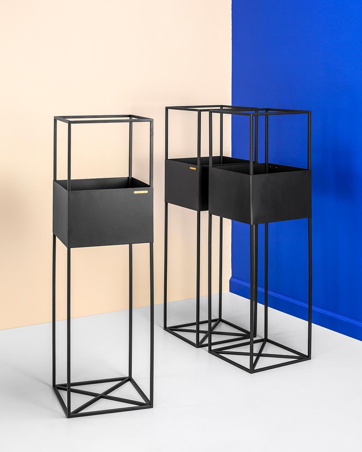 Telaio: filo di acciaio 10 mm, lamiera d'acciaio da 1,5 mm, verniciatura a polvere, protezioni per pavimenti, marchio di autenticità in ottone. Cura: collocare la pianta nel proprio vaso con un drenaggio adeguato, il terreno aperto e umido può distorcere la superficie.