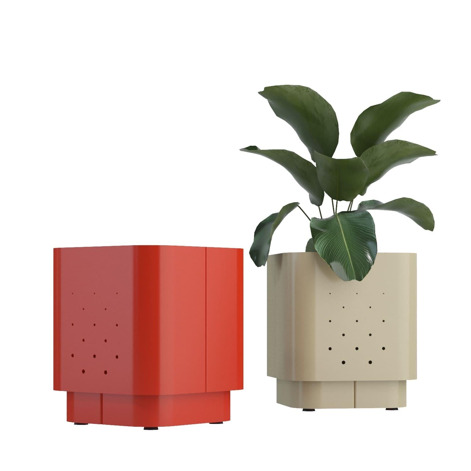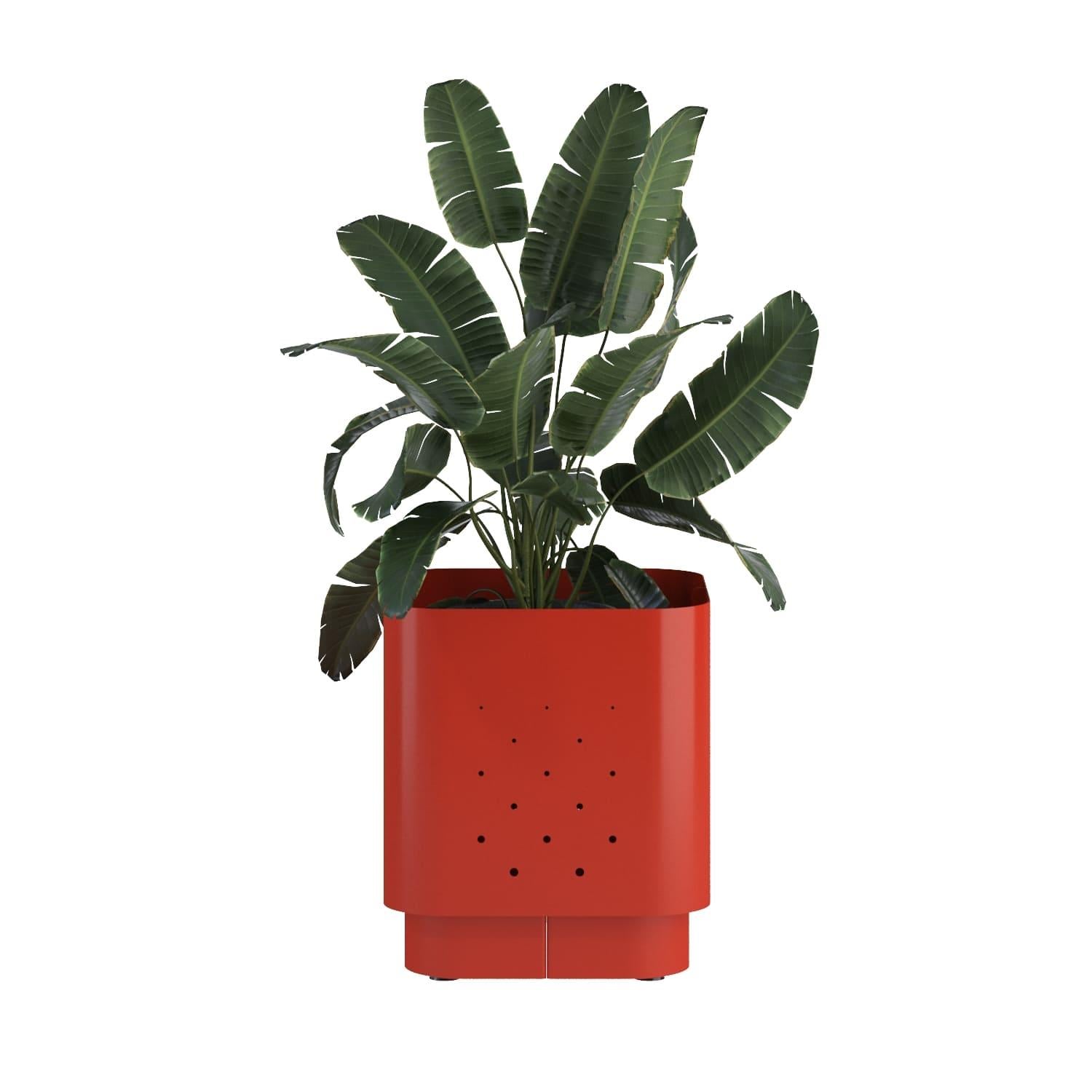 Il cachepot Aiuola è una soluzione espressiva per l'abbellimento degli spazi pubblici. La combinazione di forme arrotondate e di una palette di colori sfumati ha creato una fioriera decorativa dalla forte personalità. Il singolo cachepot ha un aspetto monumentale con curve morbide del corpo. Per la sua realizzazione è stato utilizzato uno speciale raggio d'arco della pressa piegatrice. Il risultato è costituito da quattro lamiere d'acciaio a forma di U, con perforazioni d'aria sulle pareti, unite da eleganti giunti. Il fondo della cassa è tagliato al laser, con una maggiore rigidità per un'installazione e una movimentazione sicure.
