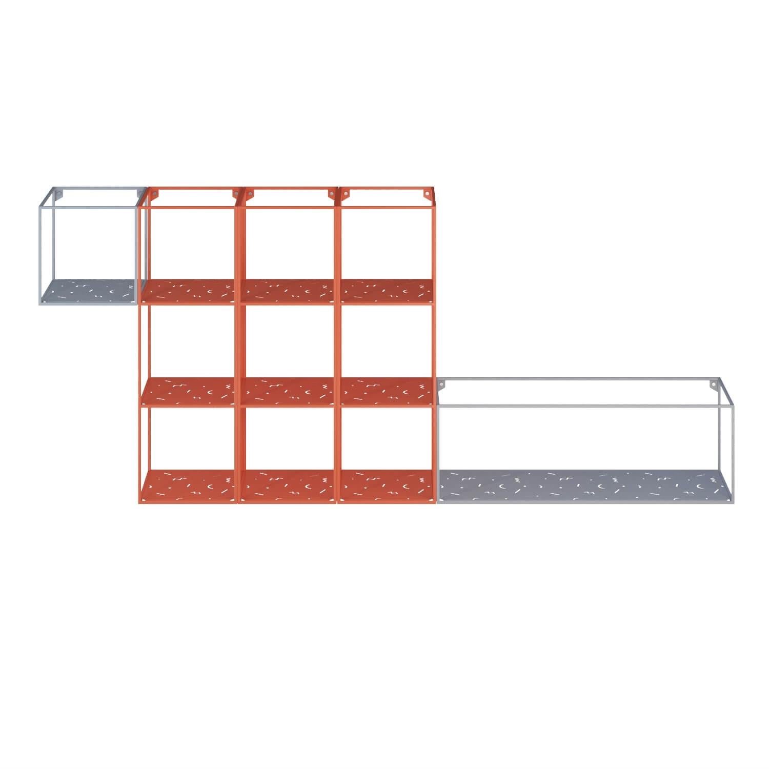 Колекція Abstra — це універсальне рішення для зберігання, що складається з кубічних модулів. Вона є інтерпретацією розробок європейського авангарду 1920-х років. Лінійна композиція вирізняється великою кількістю повітря між блоками. На поверхні поличок розмістився грайливий орнамент із геометричної абстракції, що вносить візуальну різноманітність.
