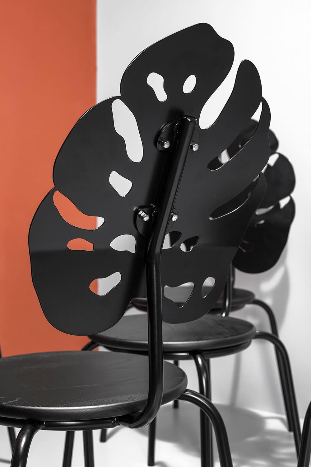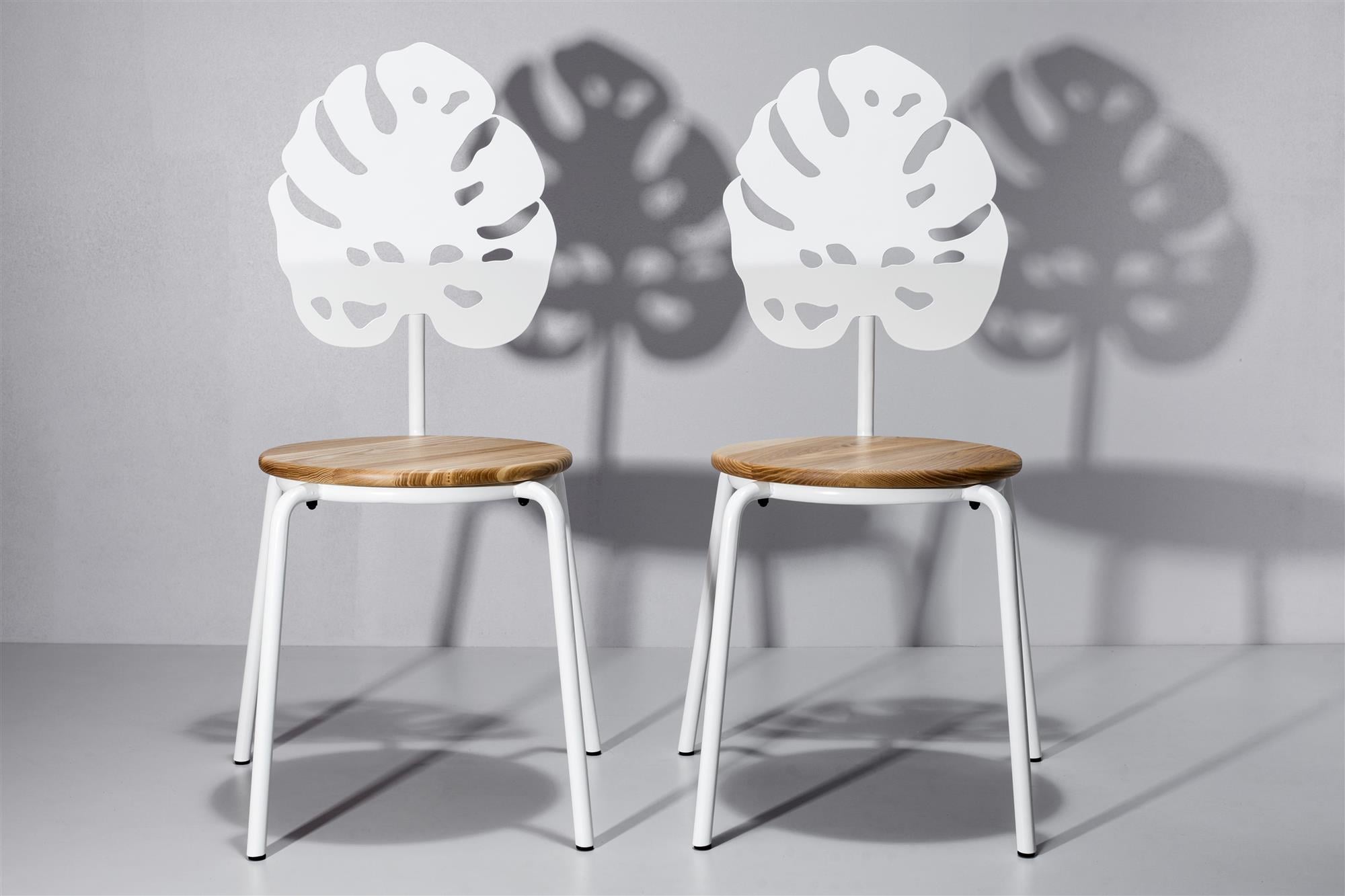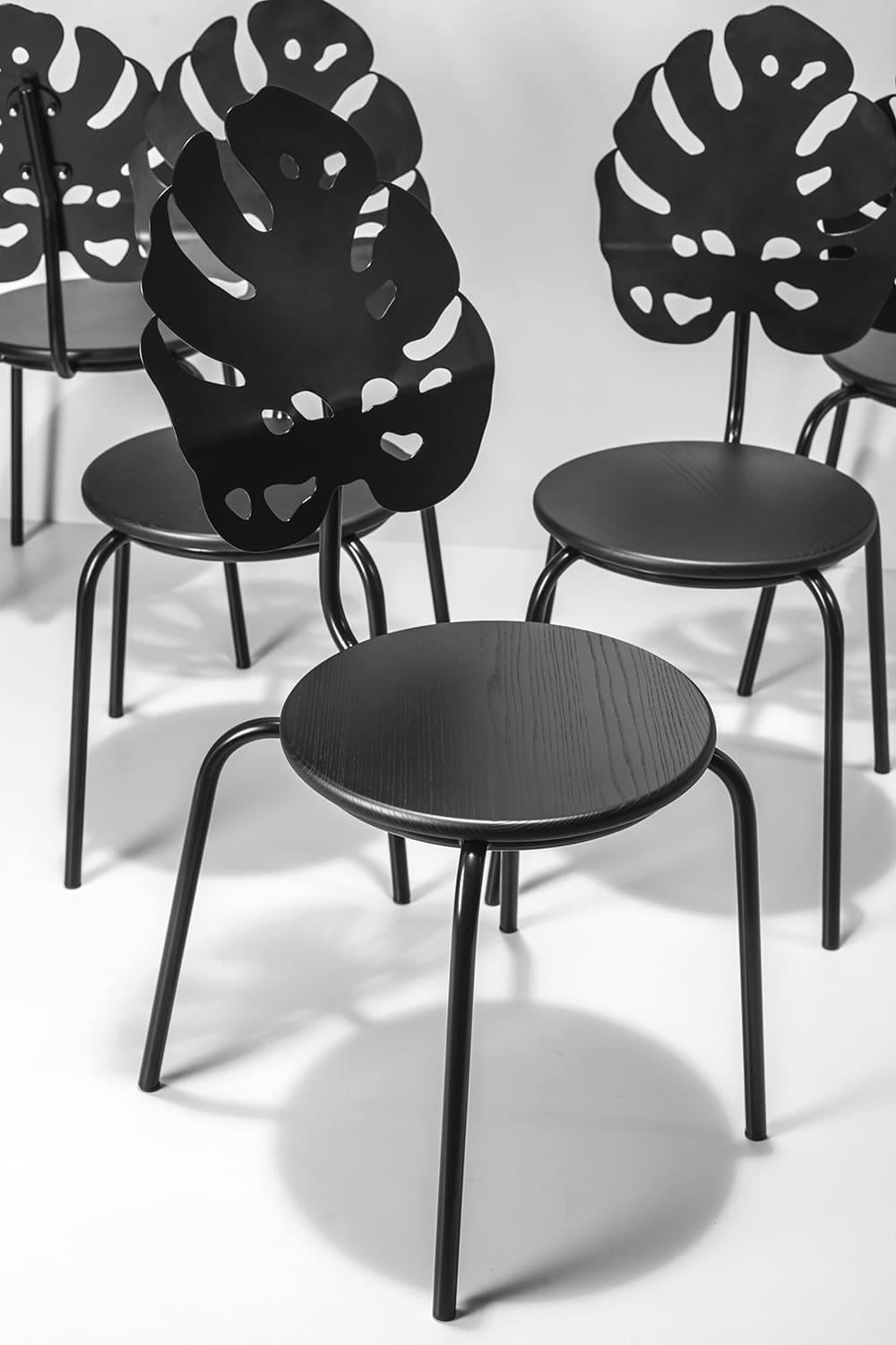 Колекція акцентних стільців Dewy (англ. зволожений) звертає на себе увагу завдяки спинці у вигляді екзотичної рослини Monstera deliciosa. Ергономічно зігнутий сталевий лист виражає ідею створення символічних елементів простими інструментами. Dewy не імітує тропічну обстановку в інтер'єрі, а є чудовим нагадуванням про безтурботне життя в оточенні ласкавого моря, освіжаючого бризу, екзотичної флори і фауни. У холодну пору року, коли за вікном стоїть похмура погода, цей декор зігріває серця господарів та їхніх гостей своїми приємними спогадами про теплі країни. Для вуличних терас можлива модифікація з сидінням з HPL.