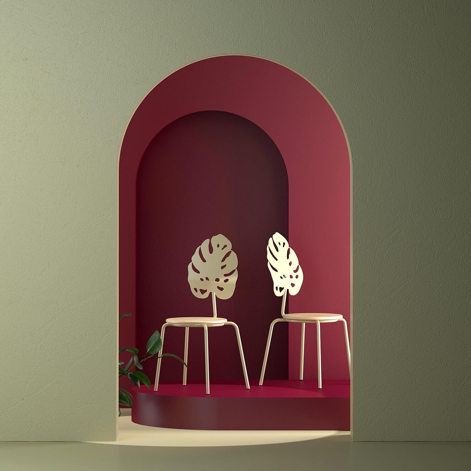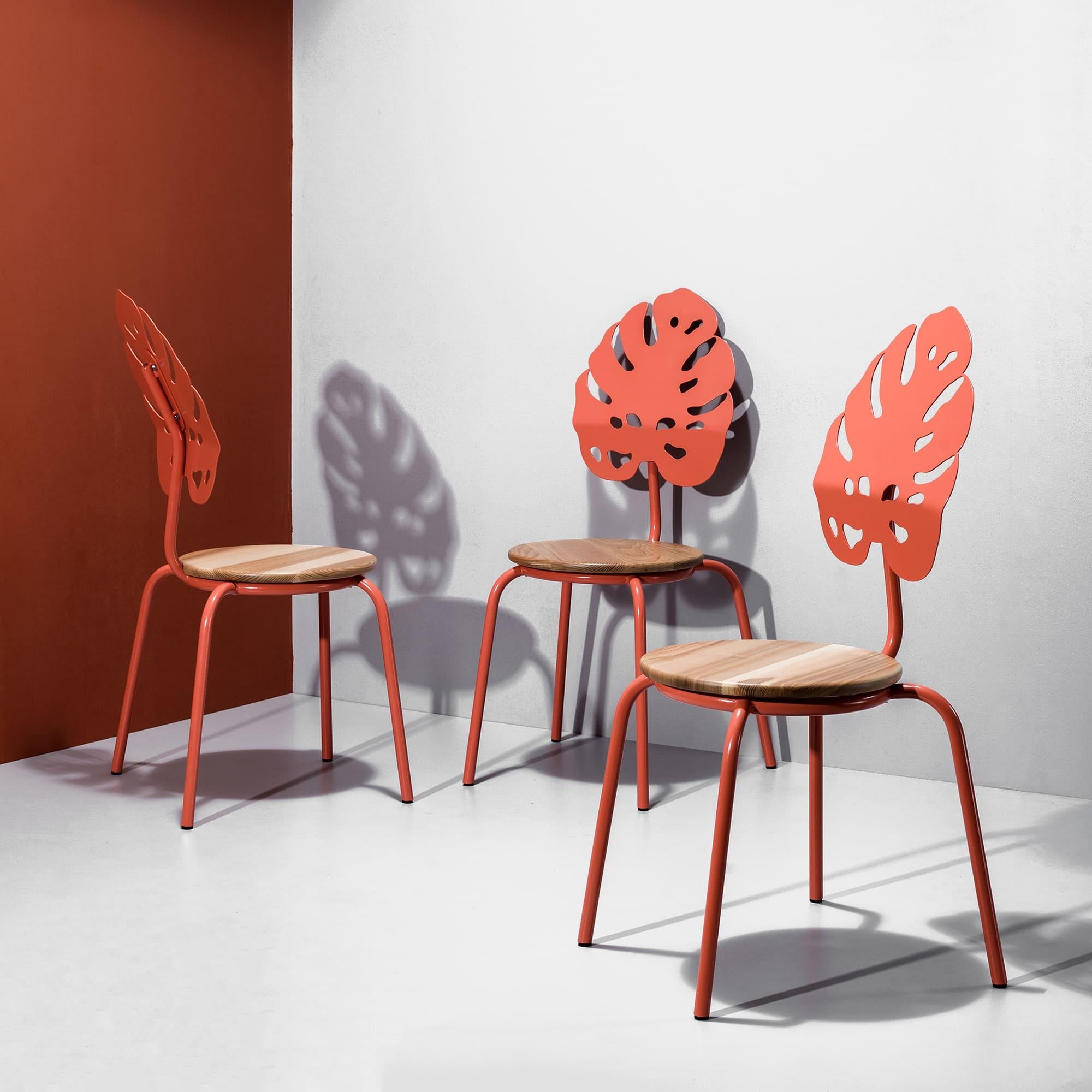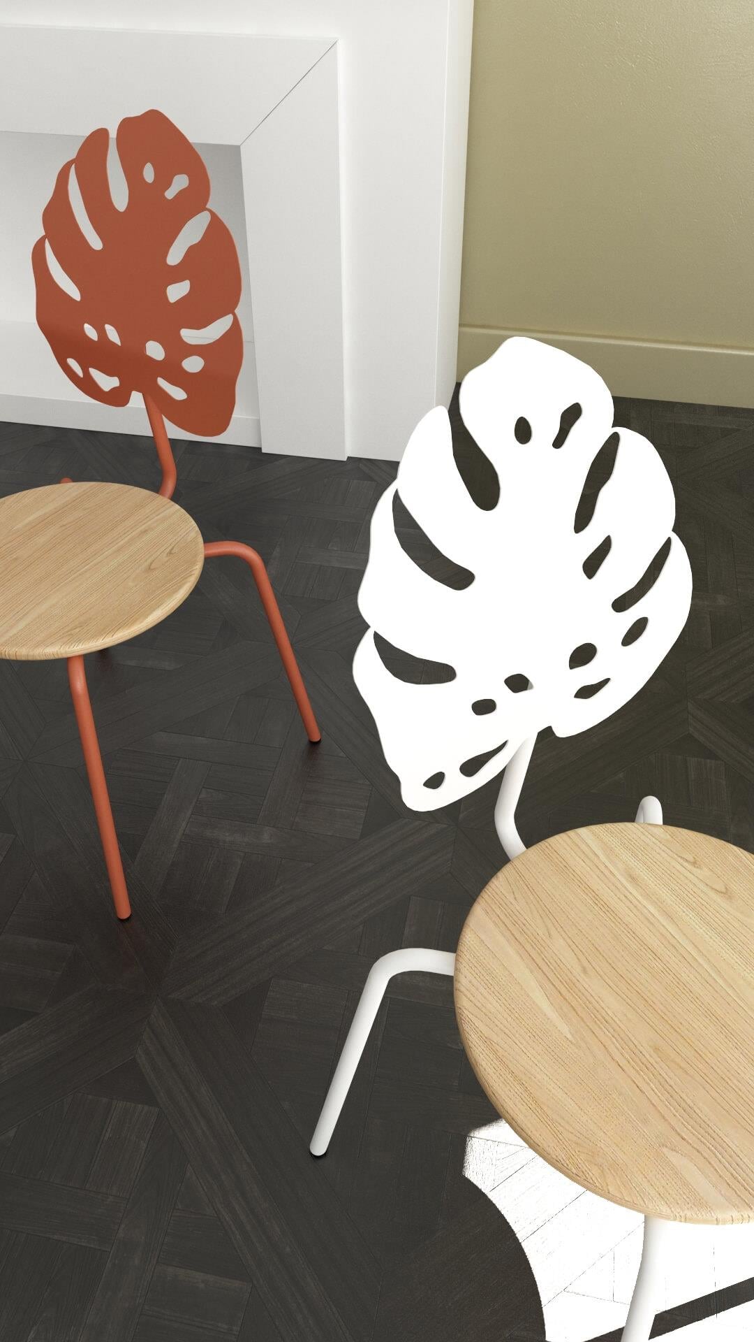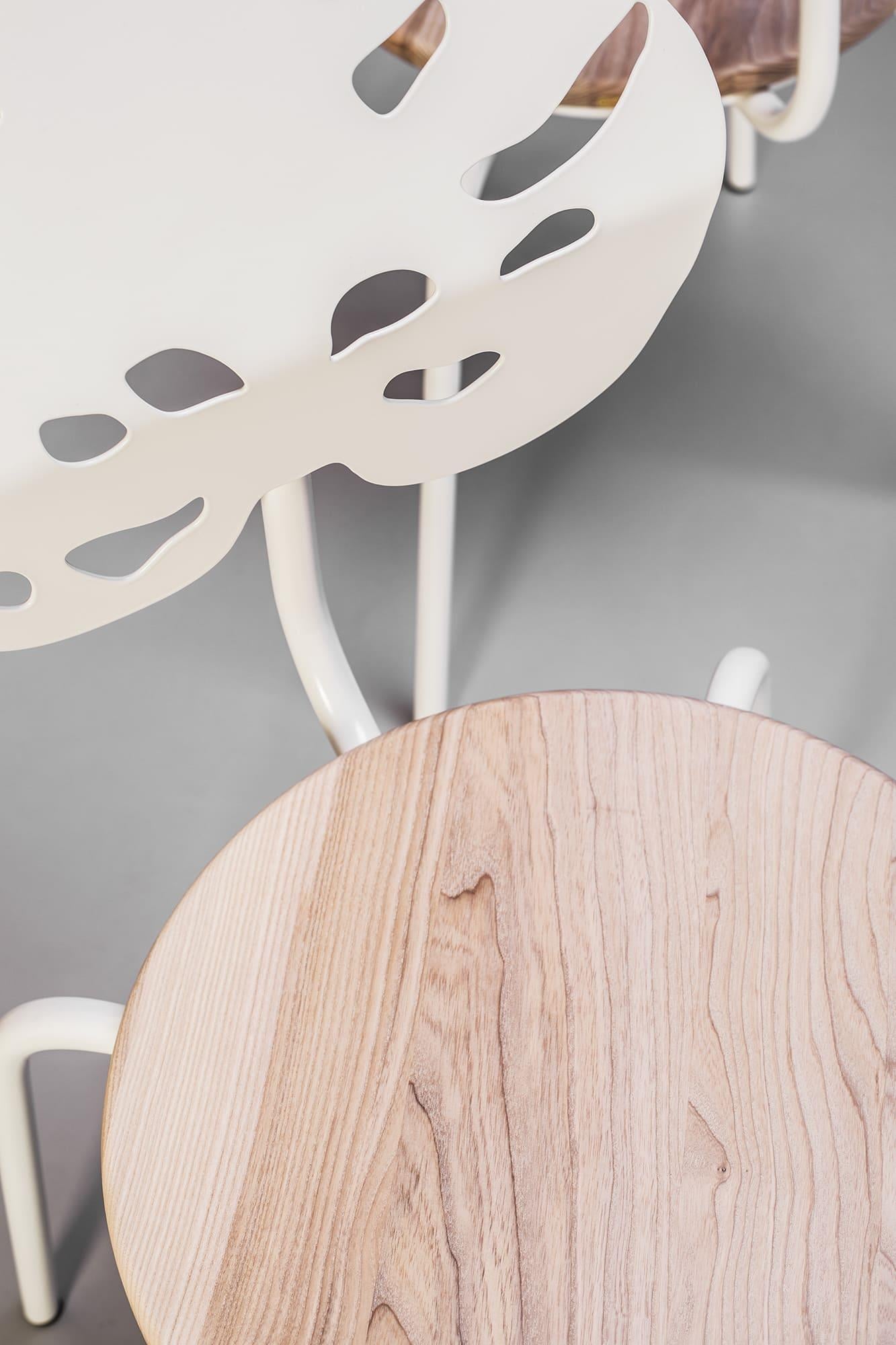 Колекція акцентних стільців Dewy (англ. зволожений) звертає на себе увагу завдяки спинці у вигляді екзотичної рослини Monstera deliciosa. Ергономічно зігнутий сталевий лист виражає ідею створення символічних елементів простими інструментами. Dewy не імітує тропічну обстановку в інтер'єрі, а є чудовим нагадуванням про безтурботне життя в оточенні ласкавого моря, освіжаючого бризу, екзотичної флори і фауни. У холодну пору року, коли за вікном стоїть похмура погода, цей декор зігріває серця господарів та їхніх гостей своїми приємними спогадами про теплі країни. Для вуличних терас можлива модифікація з сидінням з HPL.