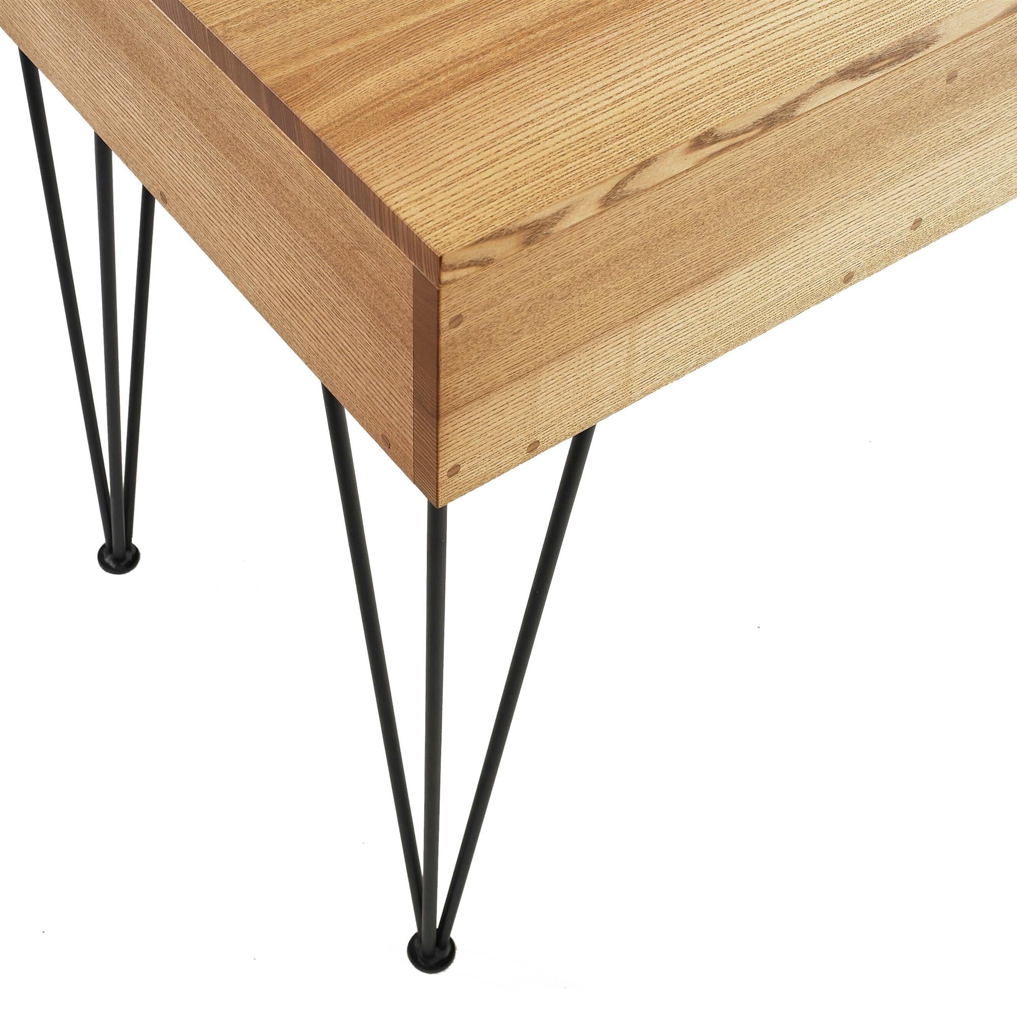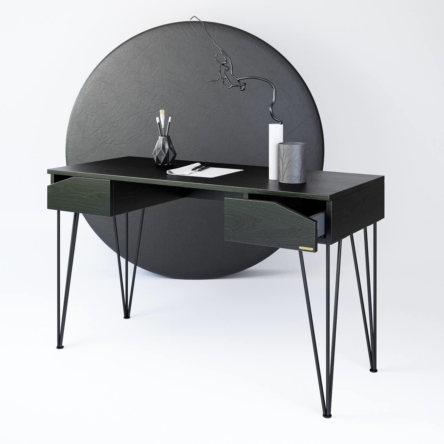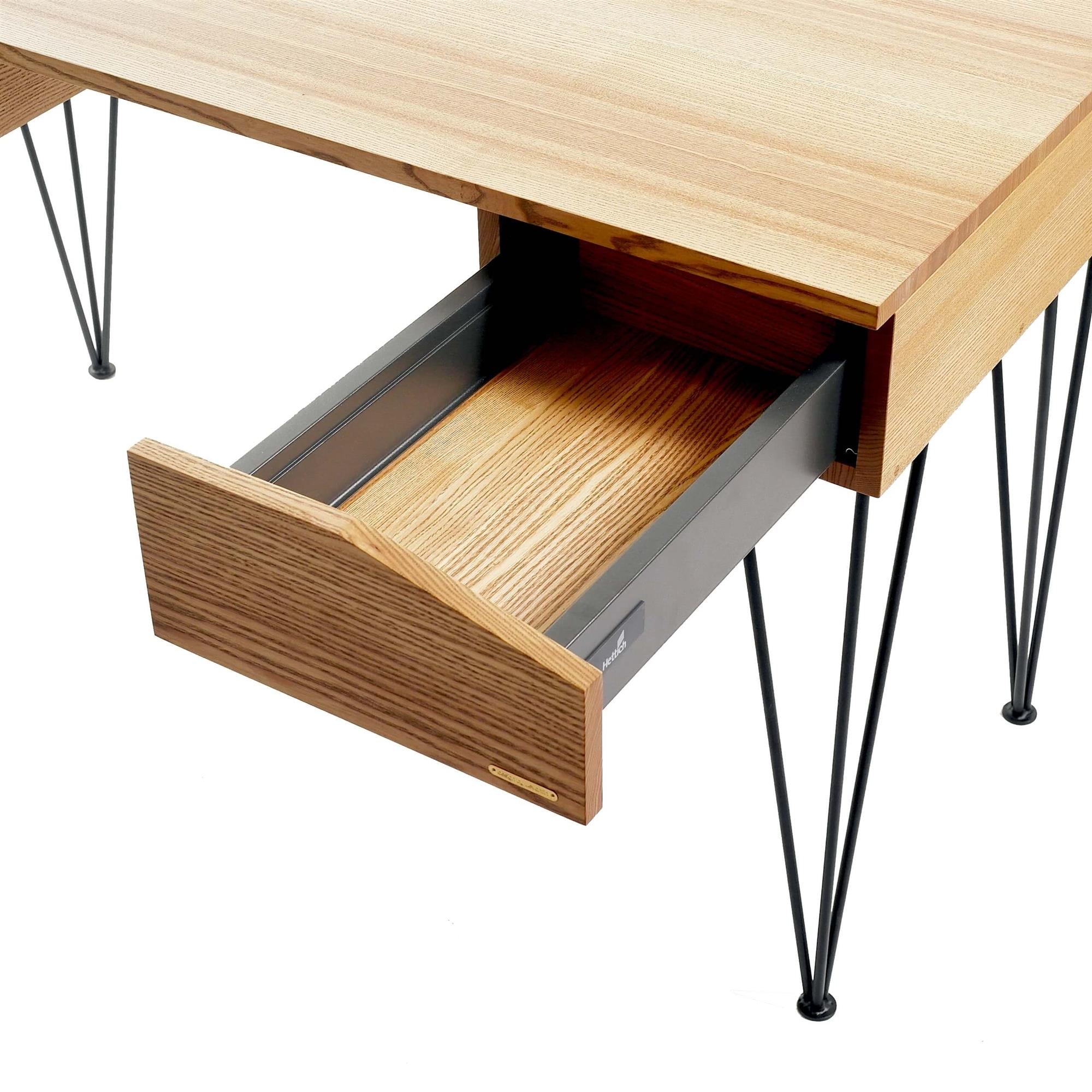 Письмовий стіл Dreamer створений без візуальних надмірностей. Він пропонує вам мріяти, не відволікаючи зайвими деталями, залишаючись вашим непомітним напарником. При цьому має ремісничі риси деревообробки, важливі для інтер'єрів з філософією хюгге. Мила особливість Dreamer - фасади-очка, бічні зрізи яких виконують функцію ручок. Вони оживляють стіл, роблячи його ще більш доброзичливим. Стіл оснащений двома висувними шухлядами плавного висунення для підручних дрібниць, будучи гранично функціональним для організації зручного робочого місця. Вони відкриваються на всю довжину, з граничним навантаженням до 20 кг. Знімні сталеві ніжки столу, зручні для компактного транспортування. Вони кріпляться до столу за допомогою болтового з'єднання.
