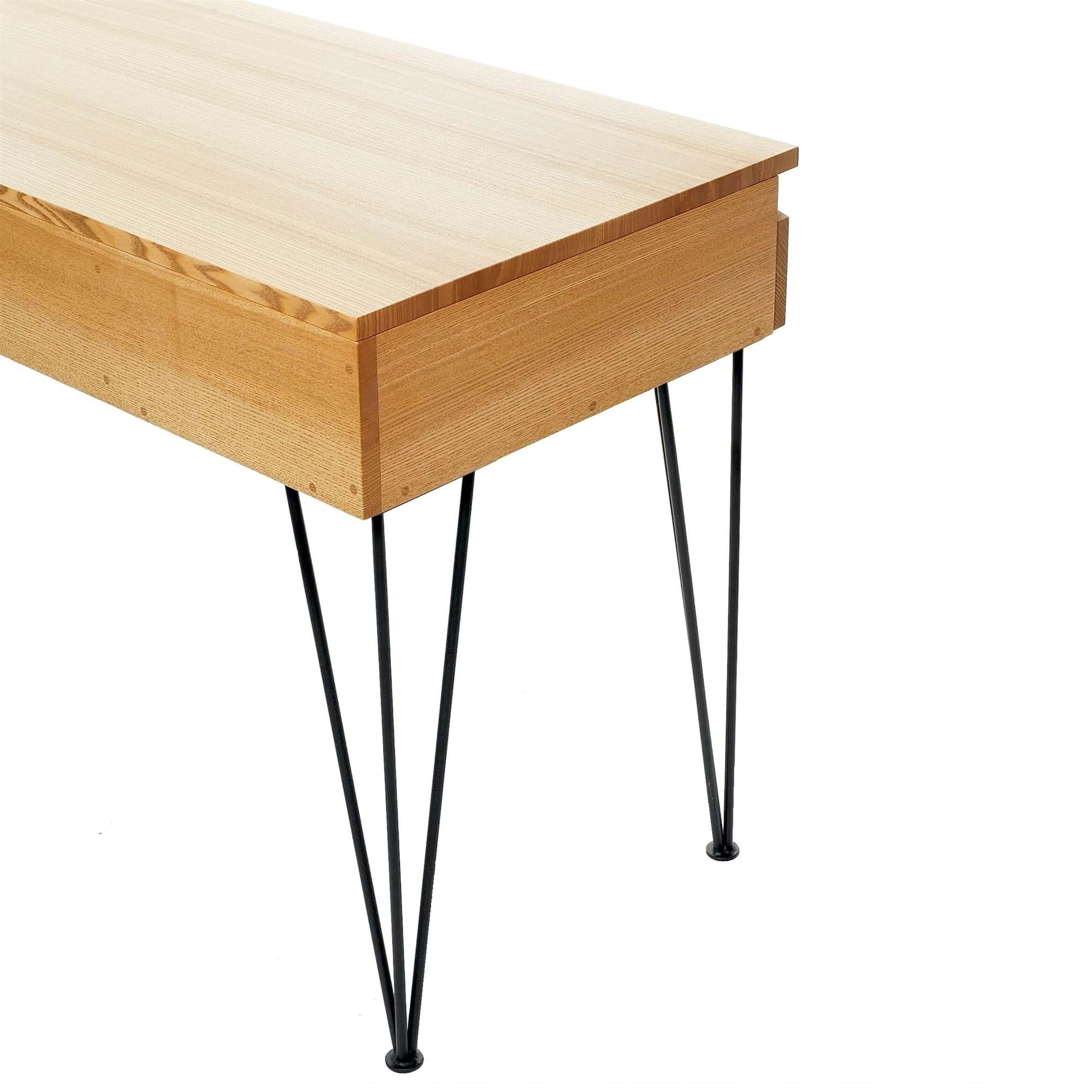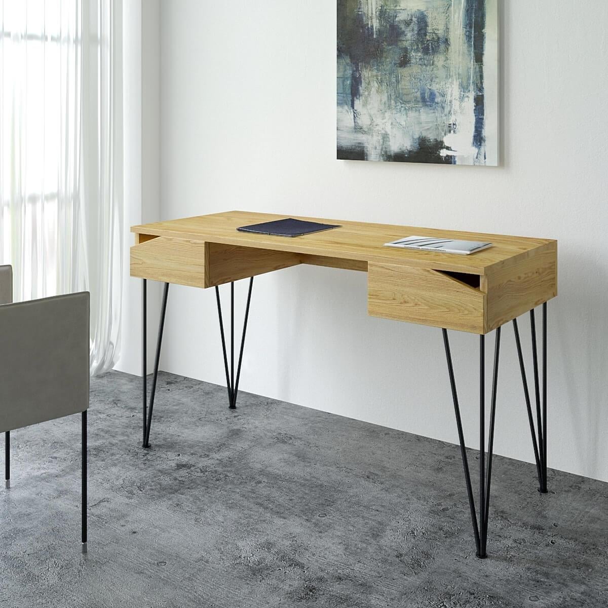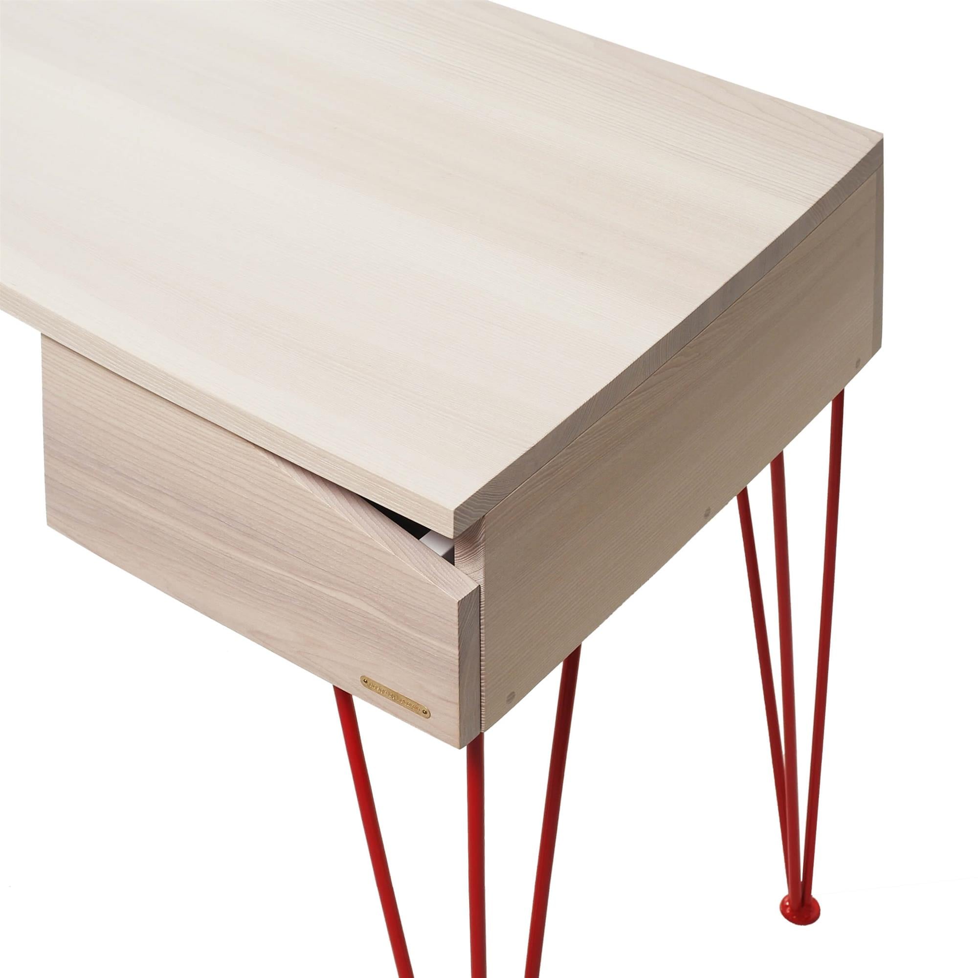 Письмовий стіл Dreamer створений без візуальних надмірностей. Він пропонує вам мріяти, не відволікаючи зайвими деталями, залишаючись вашим непомітним напарником. При цьому має ремісничі риси деревообробки, важливі для інтер'єрів з філософією хюгге. Мила особливість Dreamer - фасади-очка, бічні зрізи яких виконують функцію ручок. Вони оживляють стіл, роблячи його ще більш доброзичливим. Стіл оснащений двома висувними шухлядами плавного висунення для підручних дрібниць, будучи гранично функціональним для організації зручного робочого місця. Вони відкриваються на всю довжину, з граничним навантаженням до 20 кг. Знімні сталеві ніжки столу, зручні для компактного транспортування. Вони кріпляться до столу за допомогою болтового з'єднання.