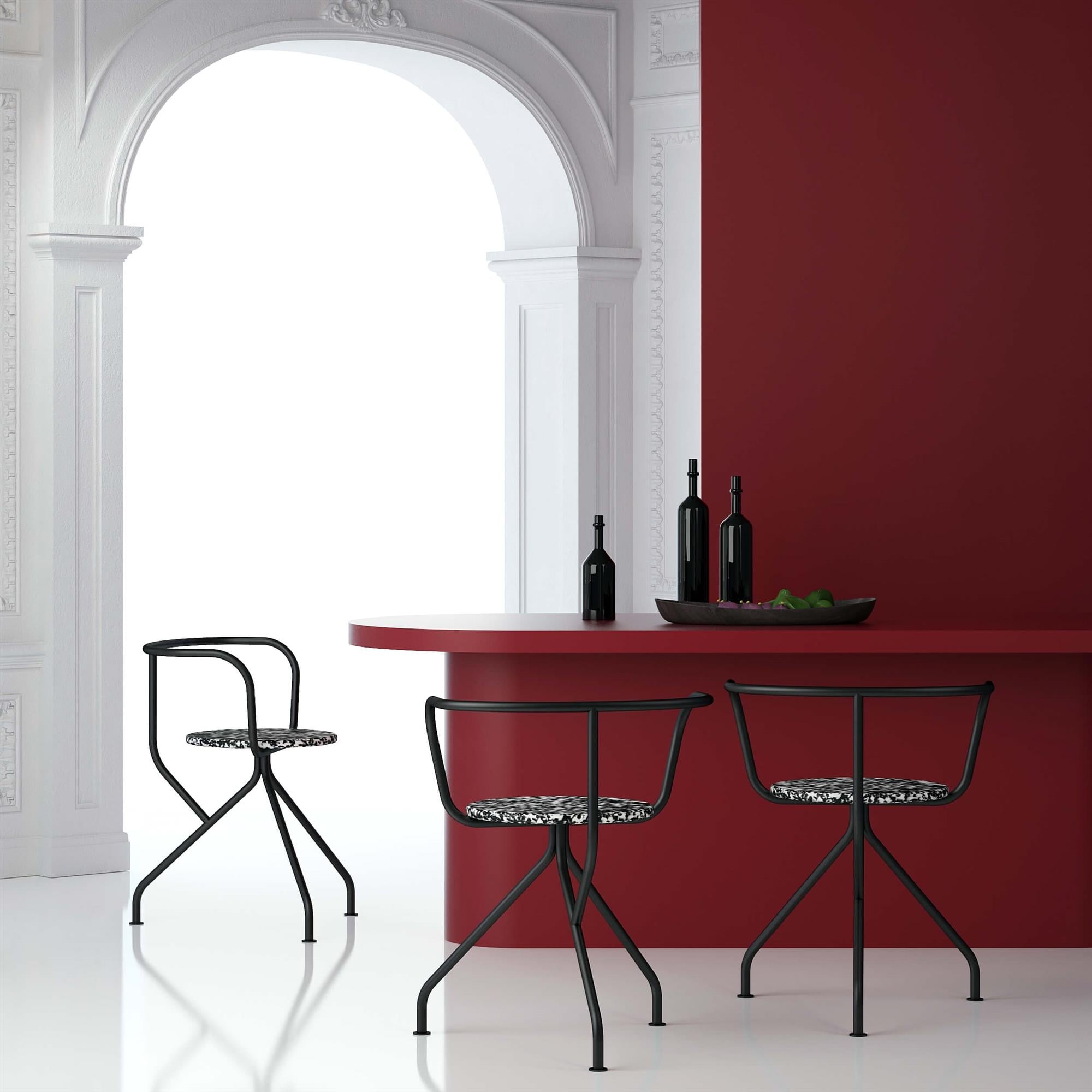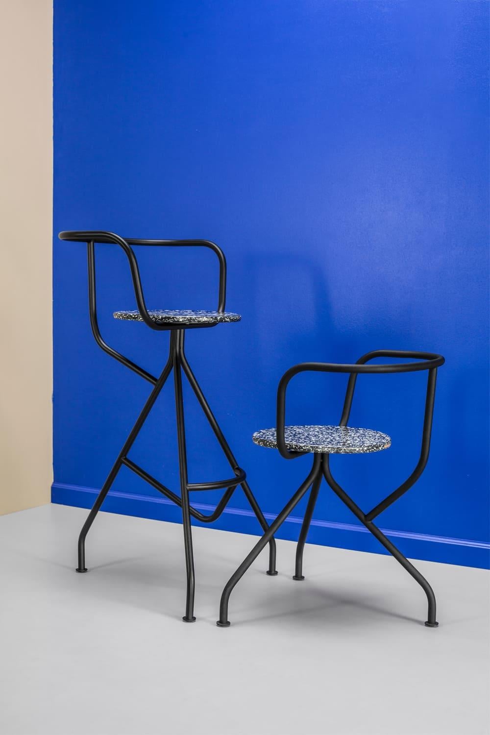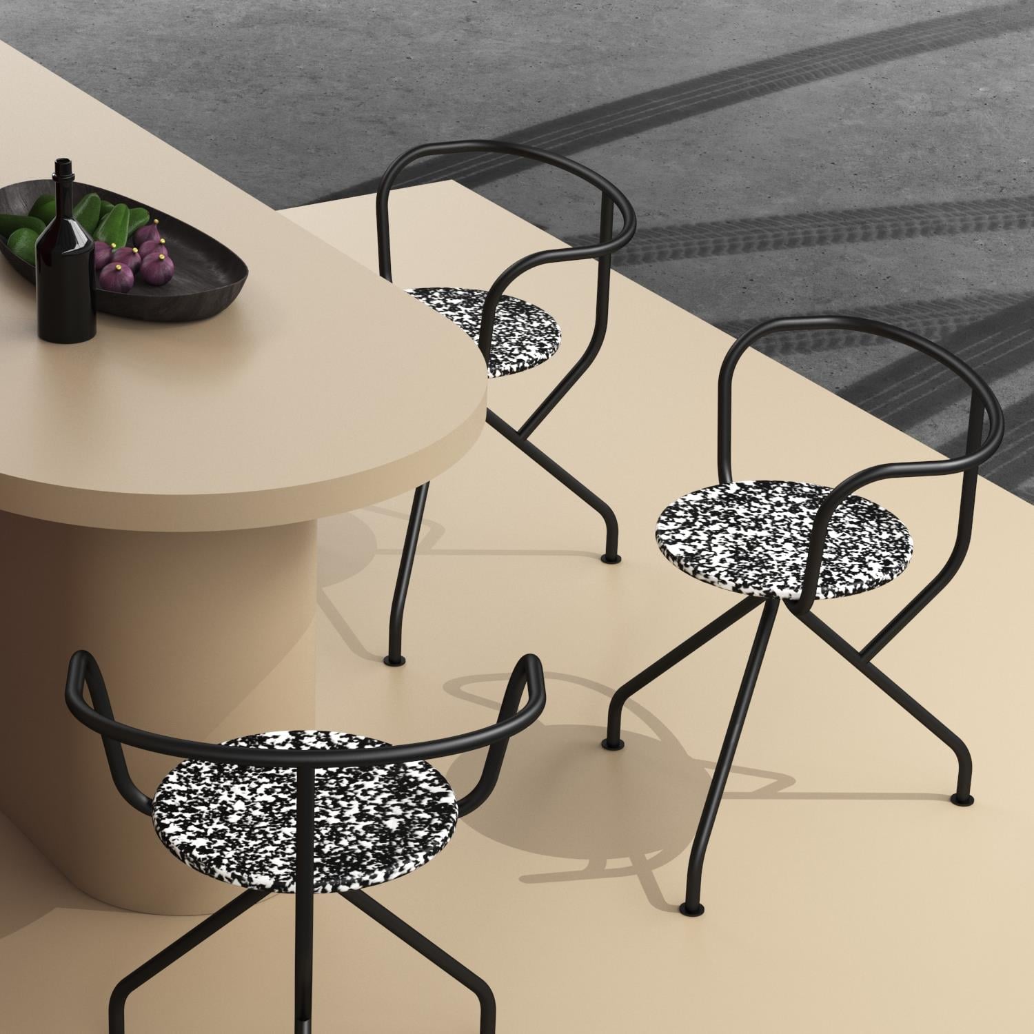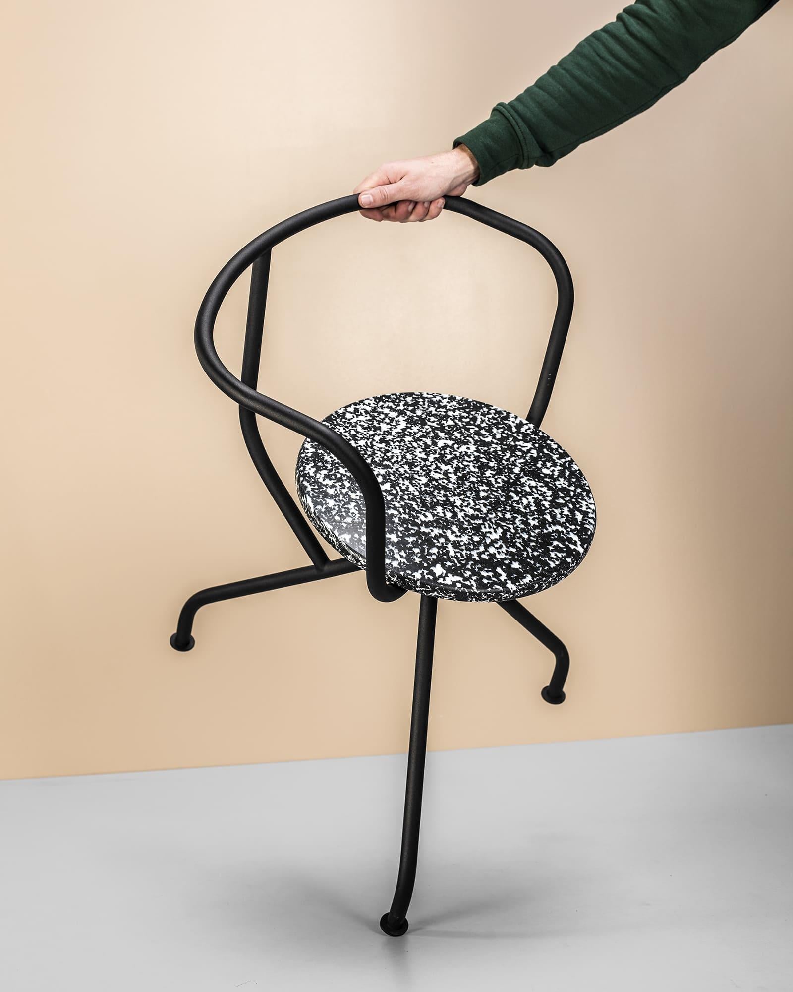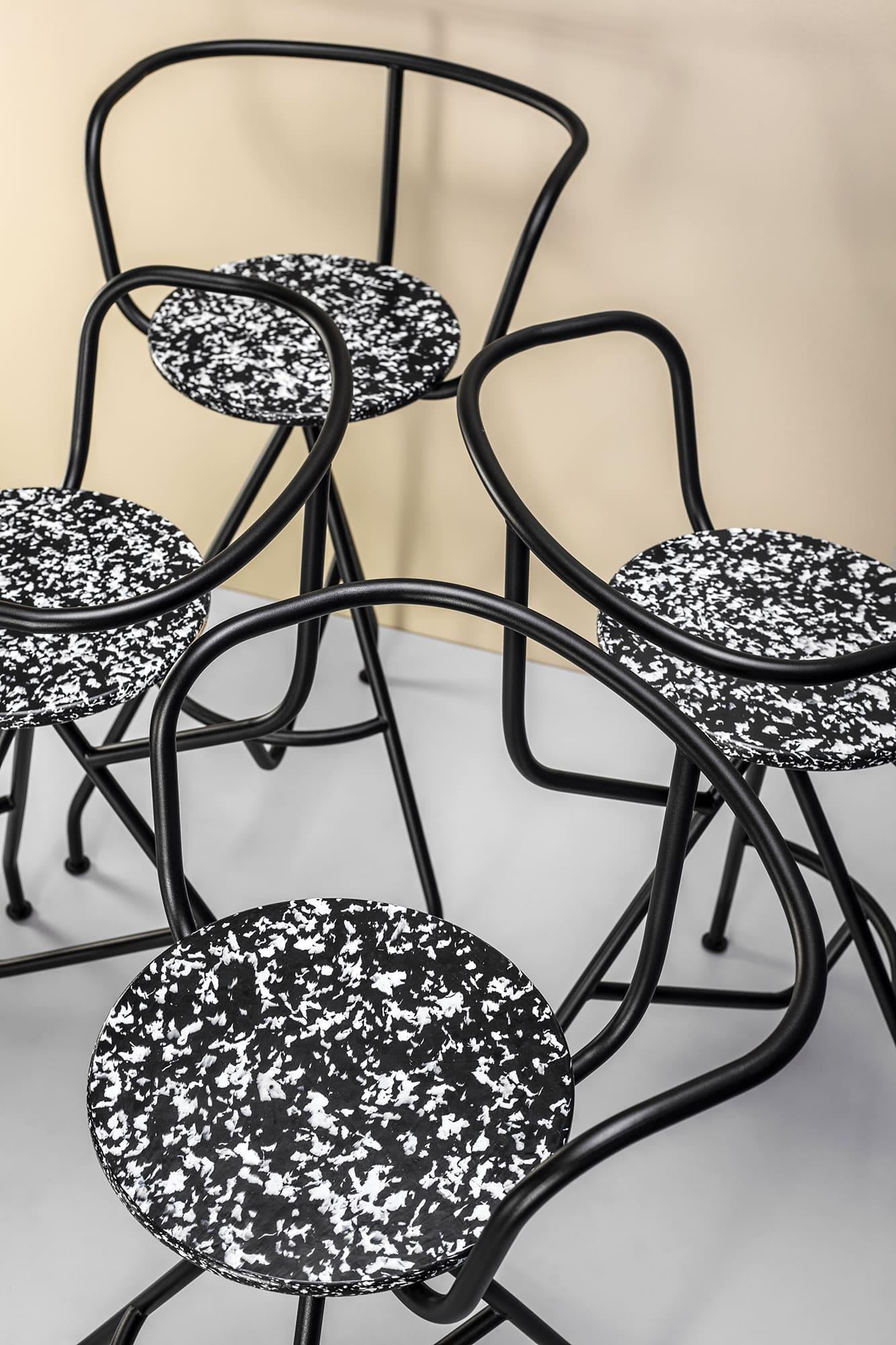 Kohti обладает элегантным силуэтом, с небольшим упором для спины, плавно перетекающим в подлокотники. Изящные линии и плавные соединения каркаса выполнены из стальной трубы с порошковым покрытием. Он адаптируется к различным интерьерам, благодаря своей привлекательной простоте, универсальности, и прочности. Для его создания мы задействовали весь конструкторский багаж и внимательное отношение к деталям, унаследованные от уже реализованных продуктов. Табурет выражает искусство преображения окружающих предметов, благодаря сиденью из переработанного сырья. Приглашая в экологичное будущее, в котором ценятся новые, осмысленные продукты, со вторичным использованием материалов, поддерживая гармонию с окружающим миром. Название (от финского «навстречу») метафорически обыгрывает диалог двух противоположных сторон о чрезмерной производстве. Подводя к мысли, об одновременном встречном движении: пытаться сохранять среду, но и изменяться вместе с ней. Невозможно закупорить мир в неизменном состоянии. Будущее все равно наступит. Тогда сделаем его прекрасным!