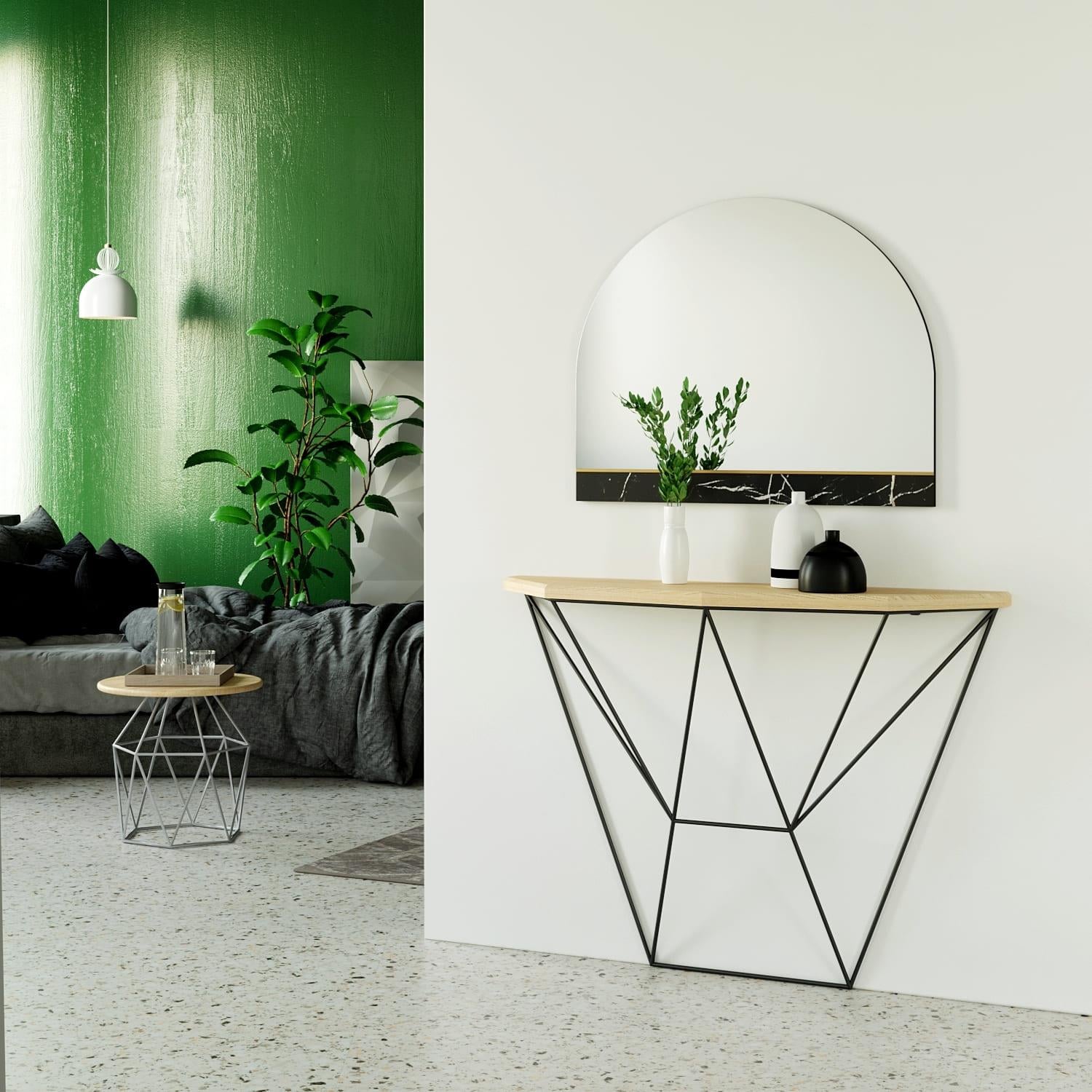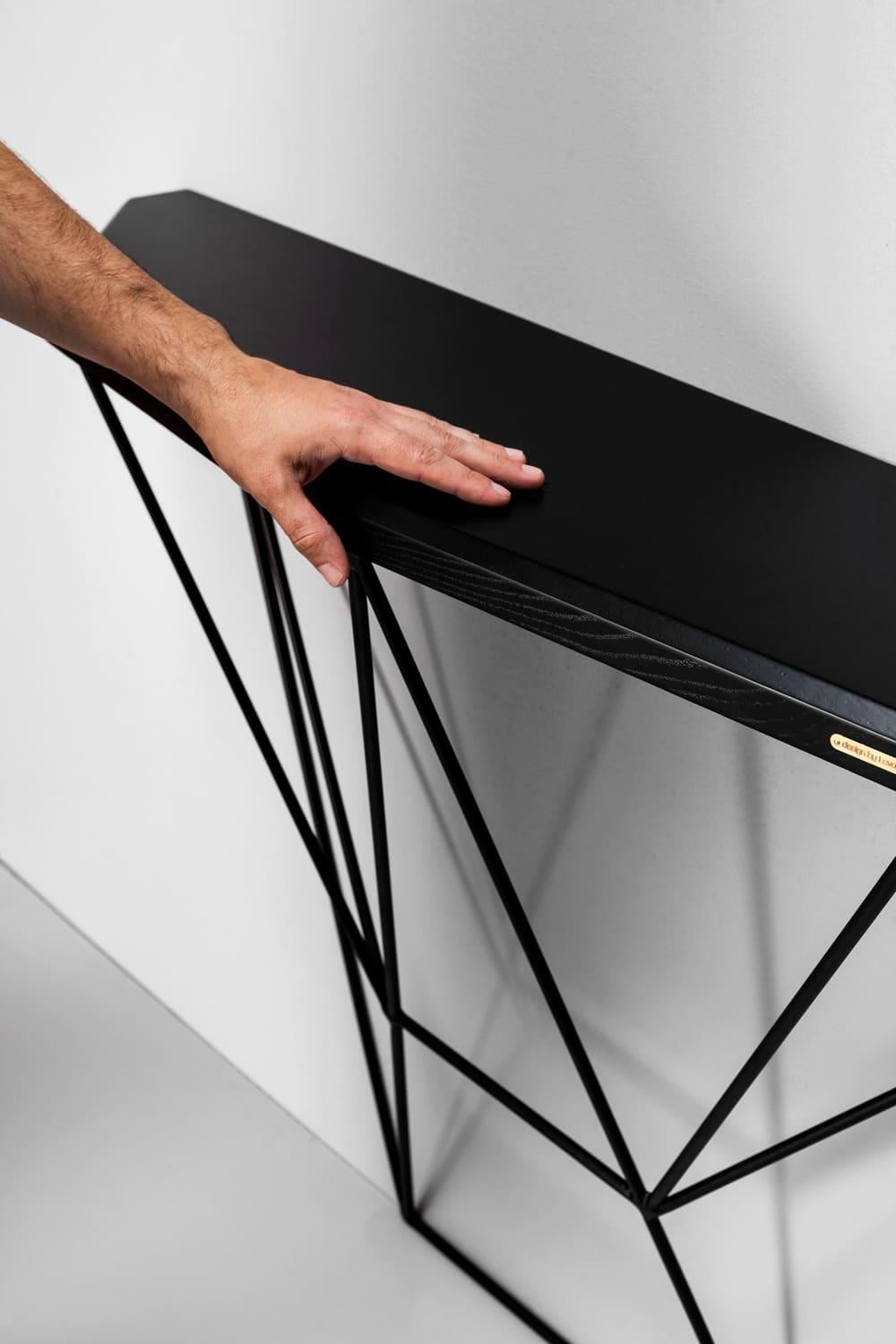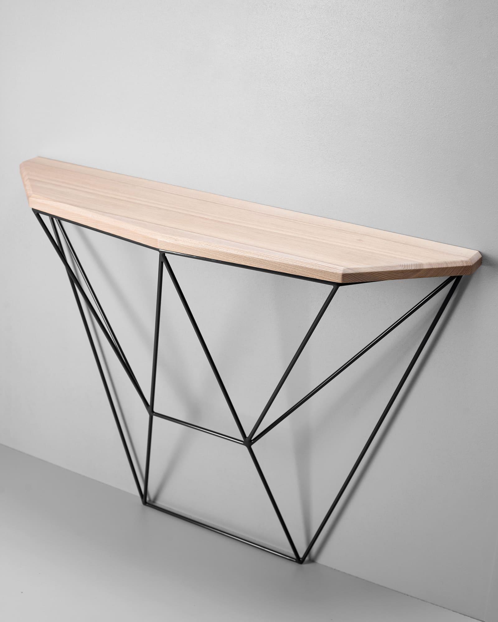 Конструкція консолі розкривається у значенні назви — від франц. lancette "маленький спис". Це загострена фігура, яка виконує декоративну функцію, паралельно, обрамляє і підкреслює силует предмета. Стільниця з натурального дерева також має рубані грані. Їхнє поєднання створює витончений композиційний баланс фактурної деревини та легких ліній металу. Привносячи динаміку в кожен простір. Лінійність і простота це відображення Lancette.